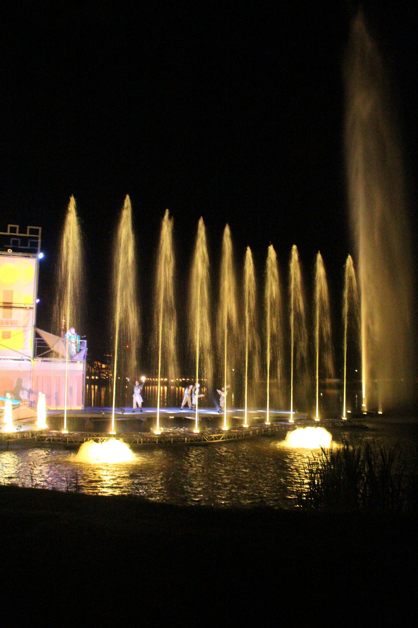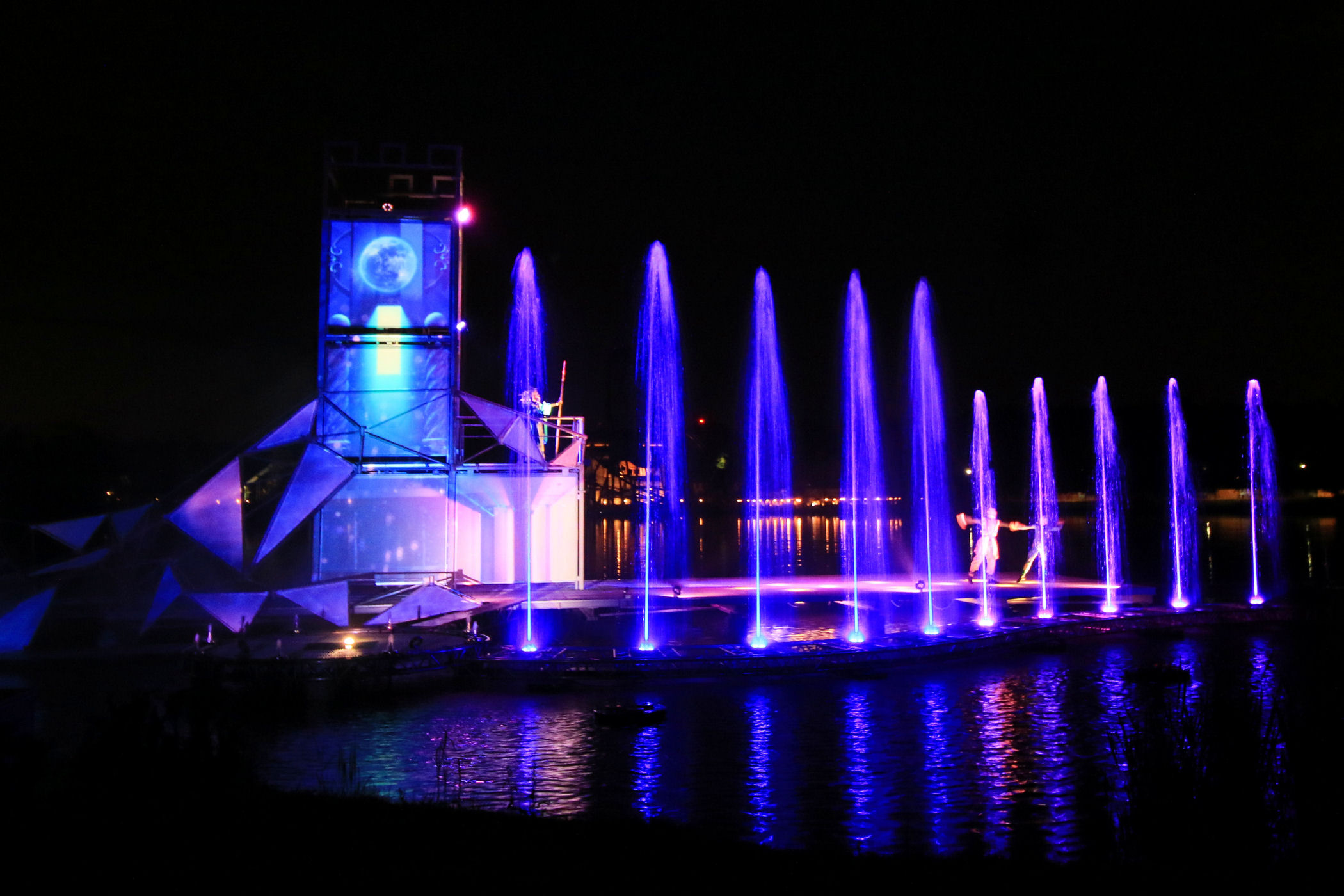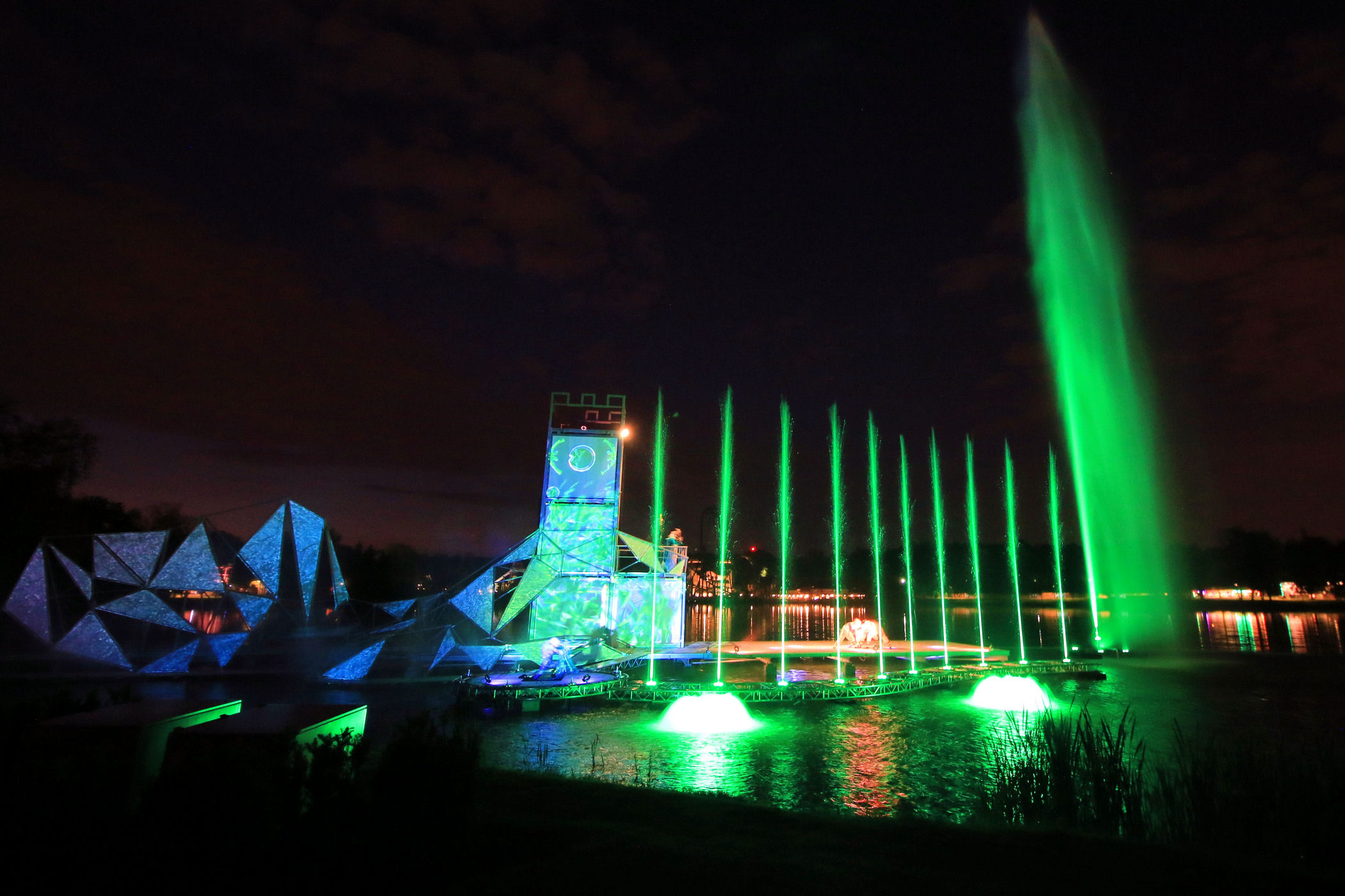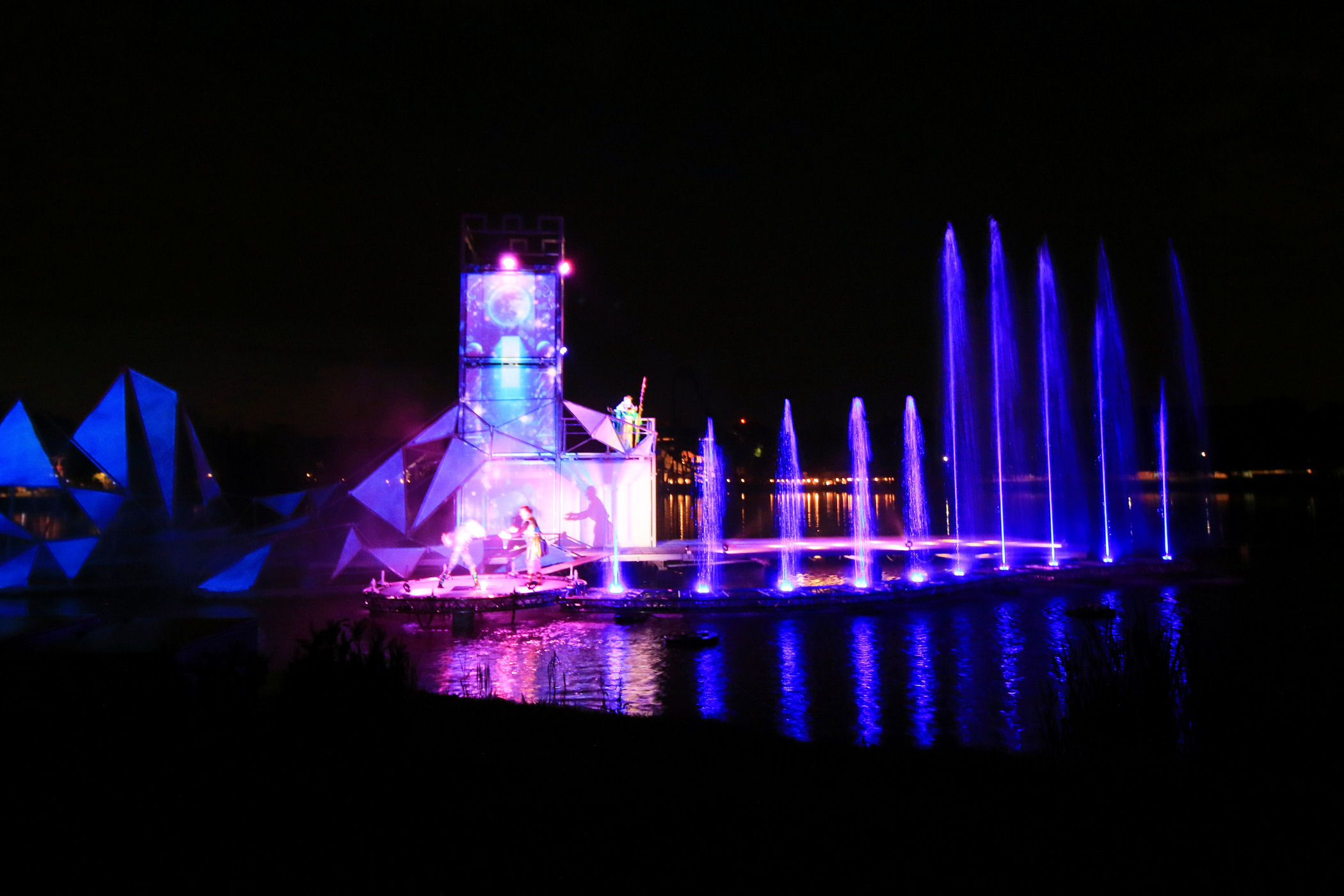 Premierowy show „Legenda o magicznej perle”. To historia Władcy Jeziora, Syreny, dzielnego Rybaka oraz złowrogiego Boruty. Spektakl rozgrywa się na wodzie na specjalnie do tego zbudowanej scenie . Fajne wrażenie dzięki grze świateł, projekcji 3D, tańczącym fontannom i aktorom, które przenoszą nas w krainy legendy.