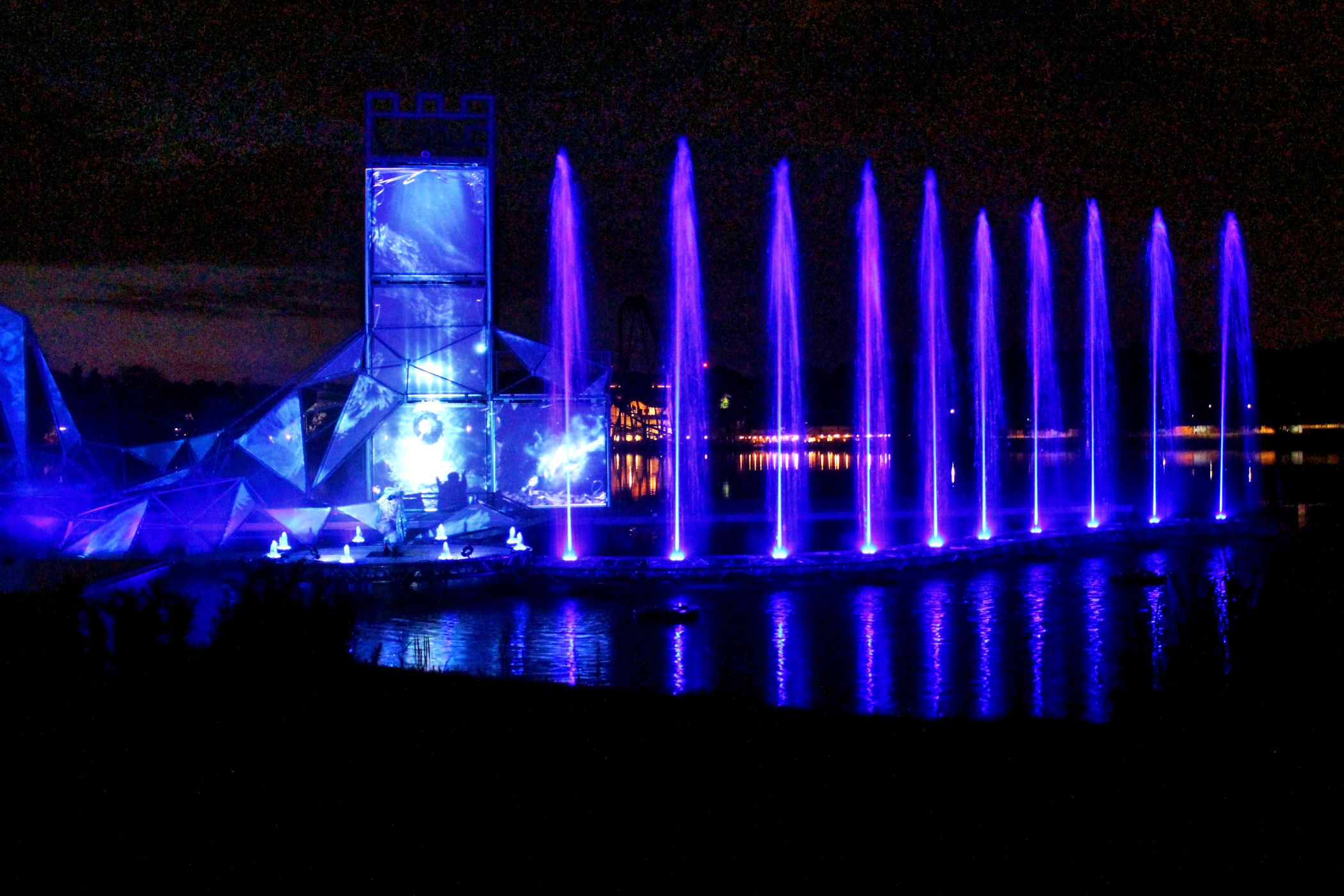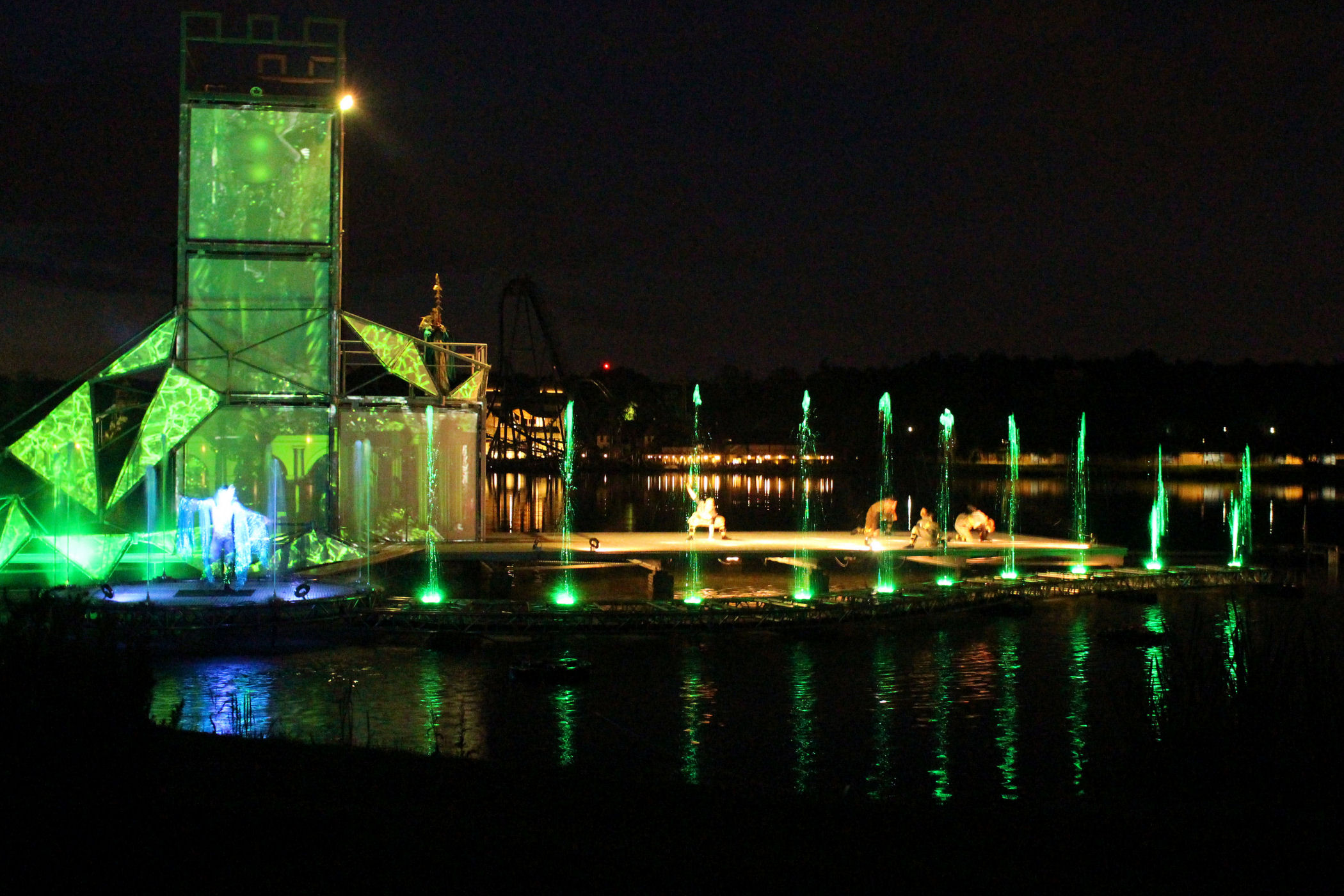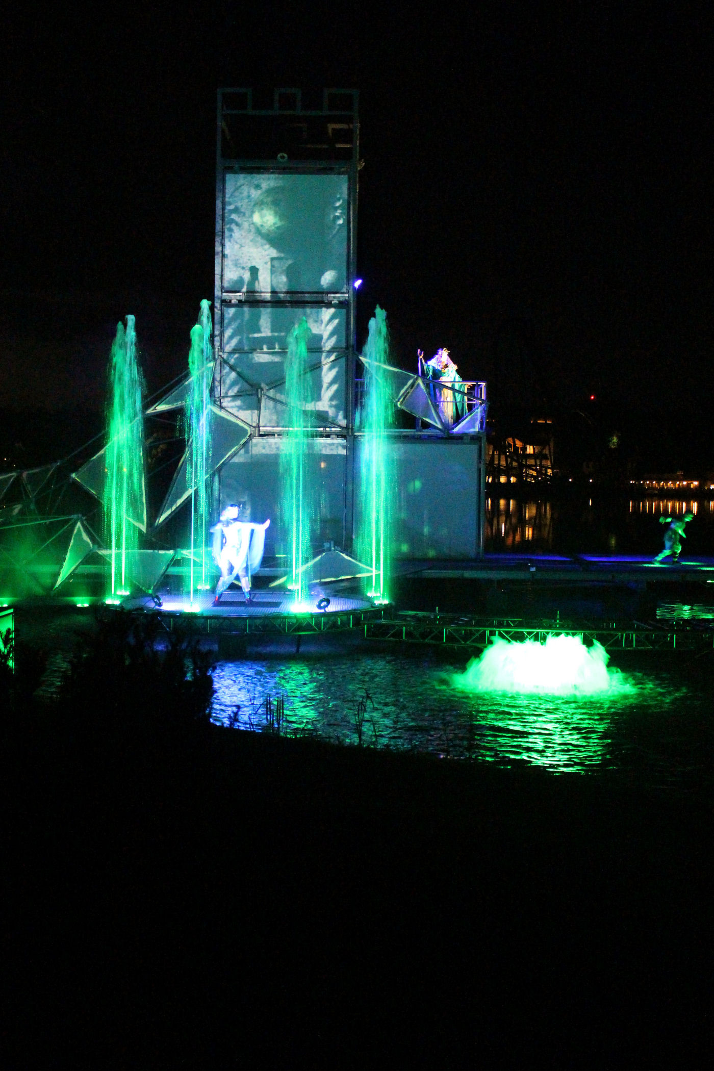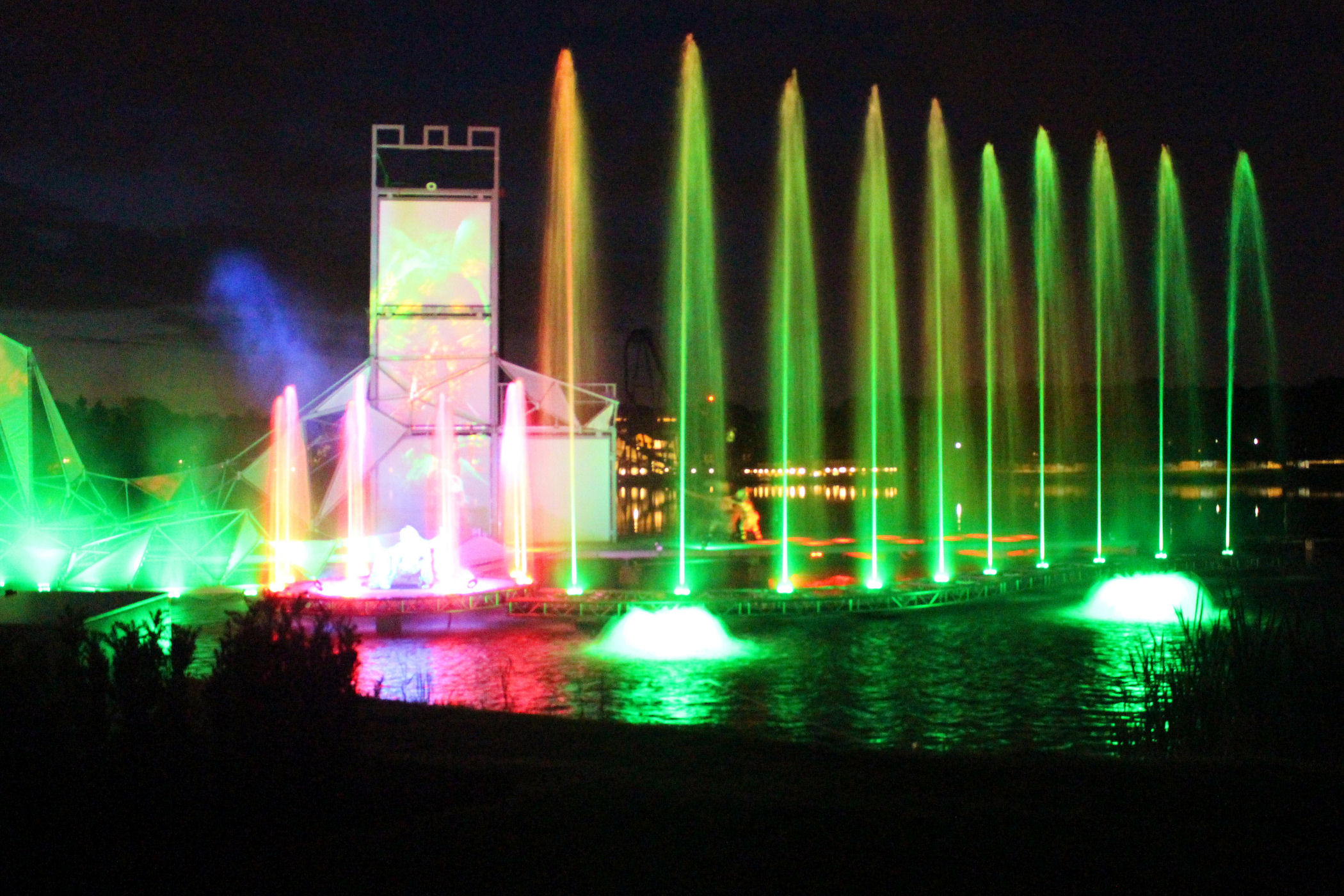 Premierowy show „Legenda o magicznej perle”. To historia Władcy Jeziora, Syreny, dzielnego Rybaka oraz złowrogiego Boruty. Spektakl rozgrywa się na wodzie na specjalnie do tego zbudowanej scenie . Fajne wrażenie dzięki grze świateł, projekcji 3D, tańczącym fontannom i aktorom, które przenoszą nas w krainy legendy.
