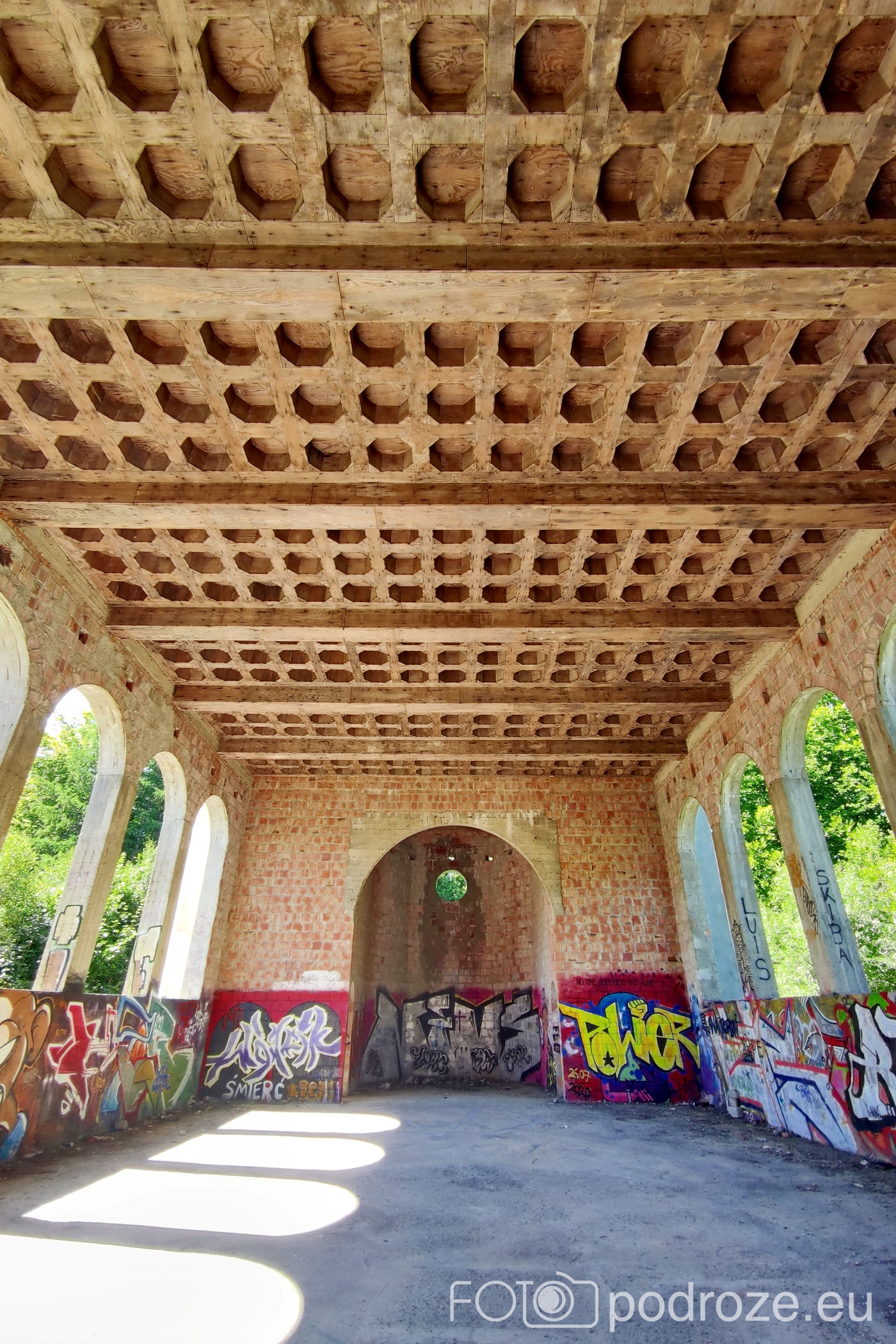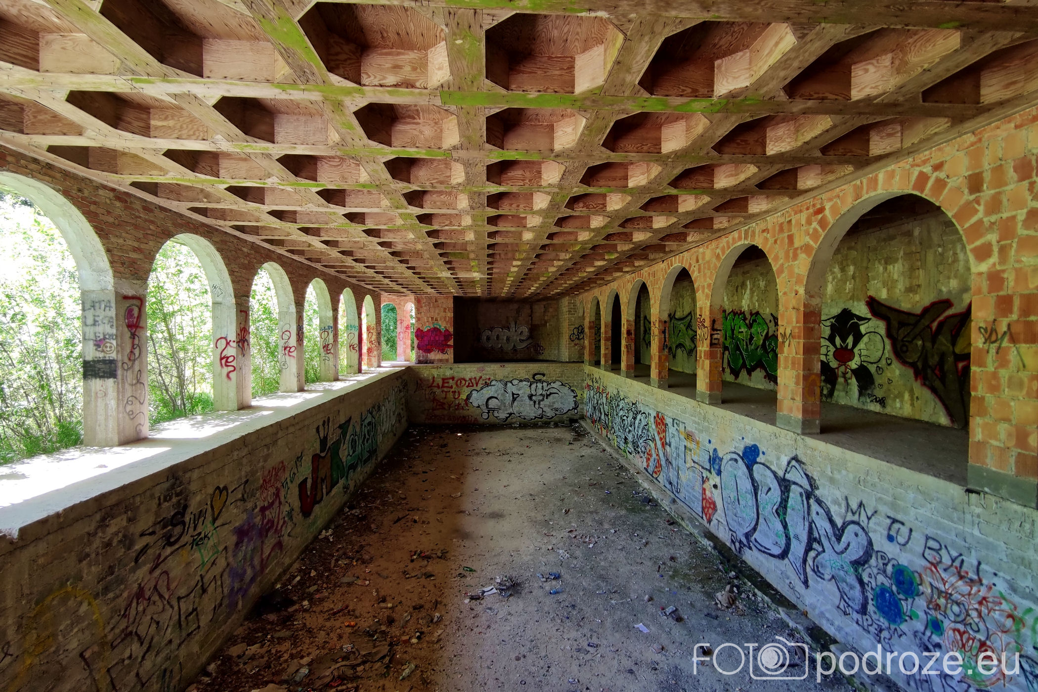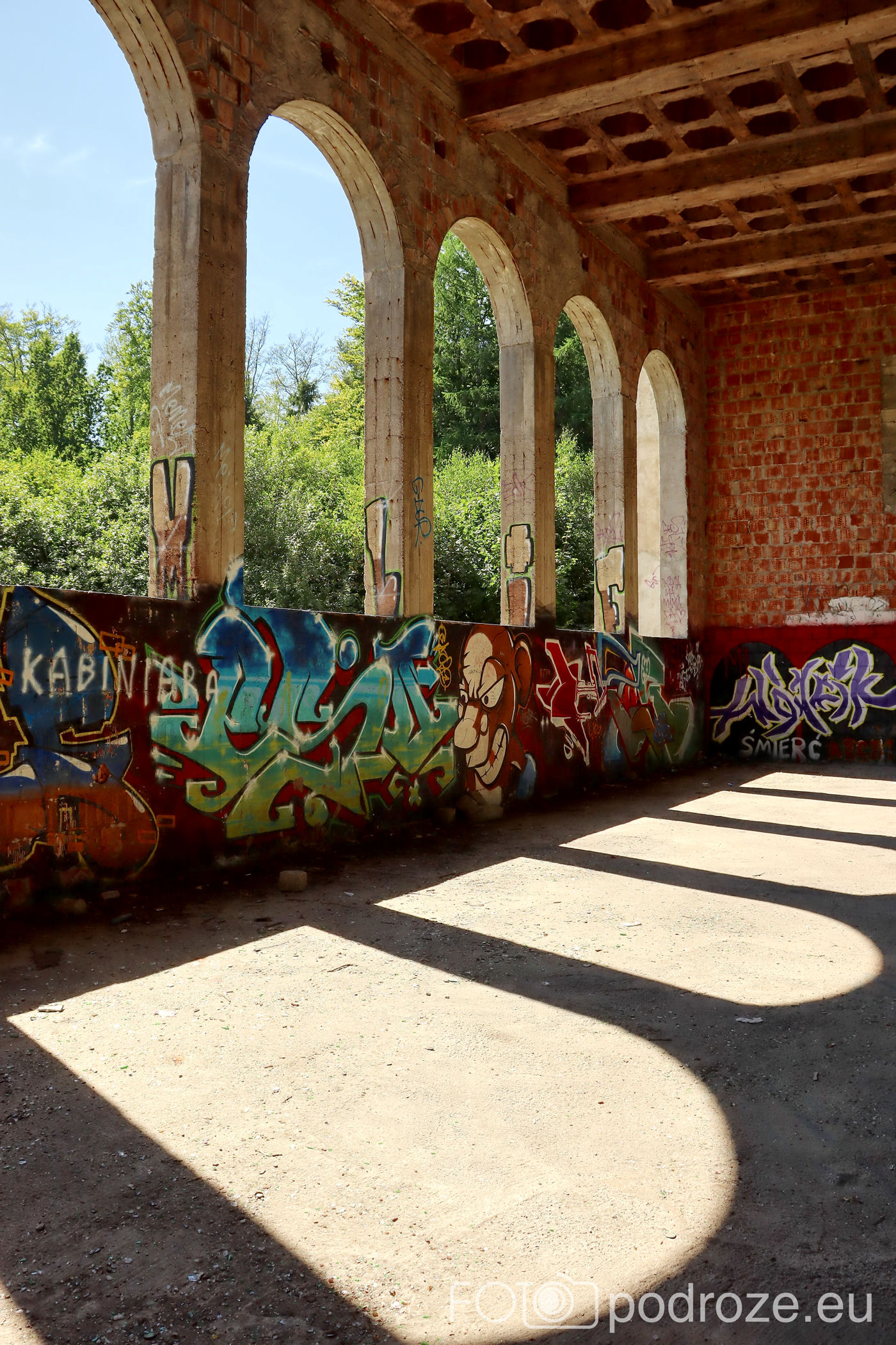 Obecne wnętrza są bardzo zniszczone, ściany pełne graffiti m ale mimo zniszczeń widać tu niezwykłą dbałość o detale.Wewnątrz odnajdujemy ręcznie zdobione pomieszczenia i niesamowite wręcz sklepienia sufitów.