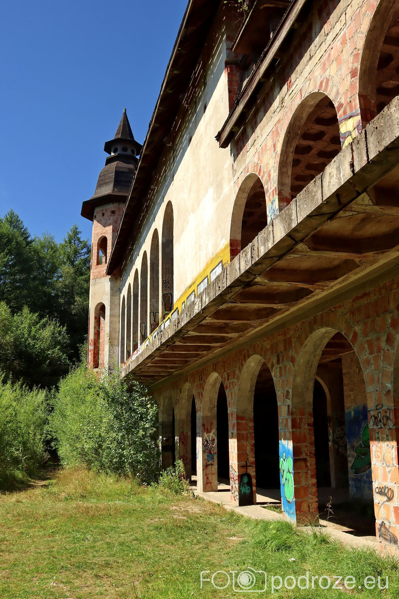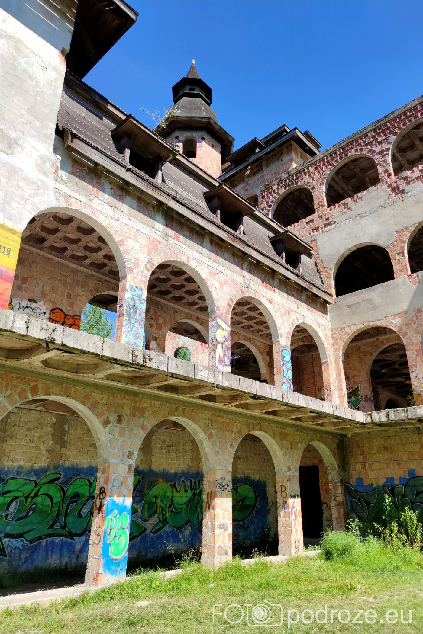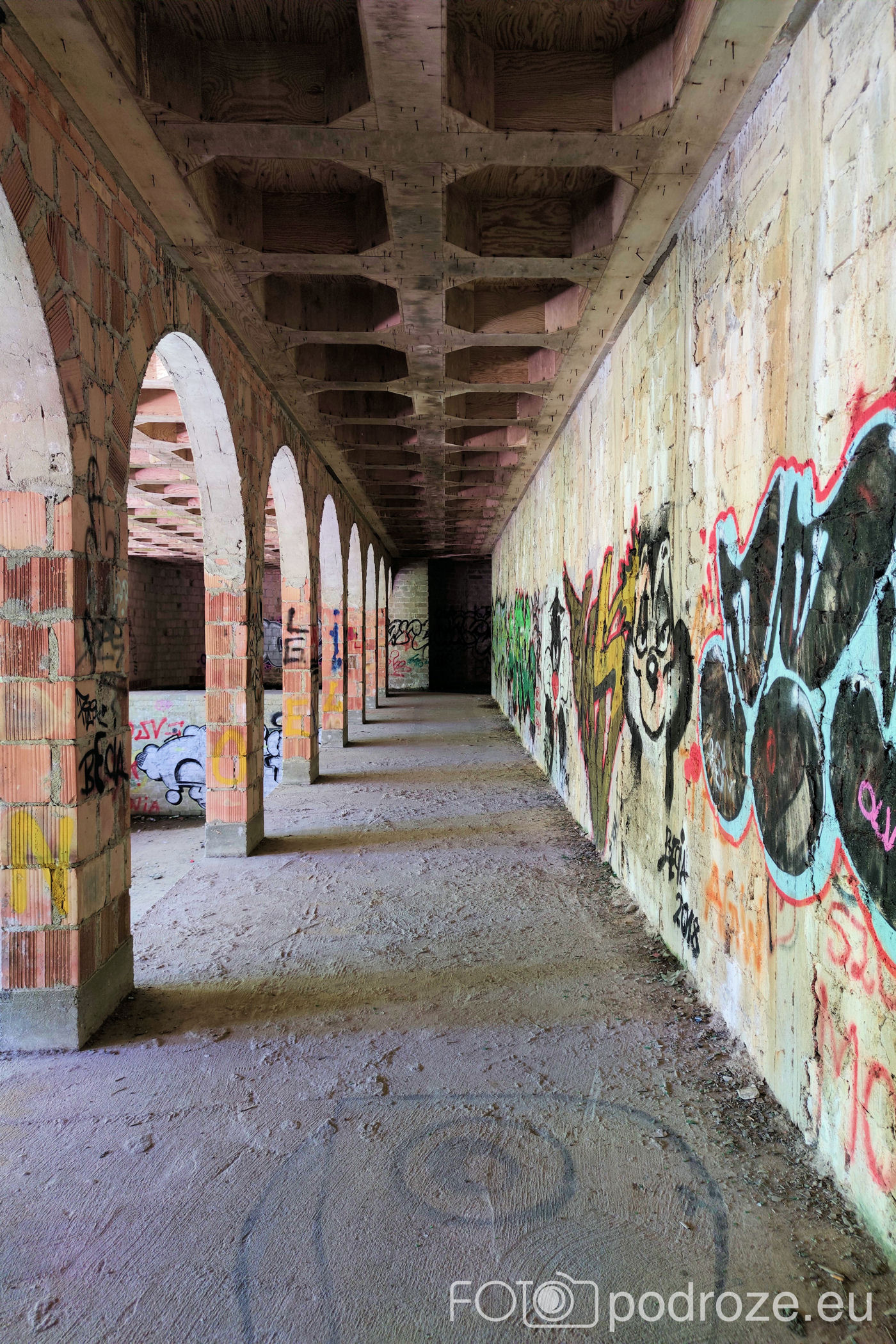 Obecne wnętrza są bardzo zniszczone, ściany pełne graffiti m ale mimo zniszczeń widać tu niezwykłą dbałość o detale.Wewnątrz odnajdujemy ręcznie zdobione pomieszczenia i niesamowite wręcz sklepienia sufitów.