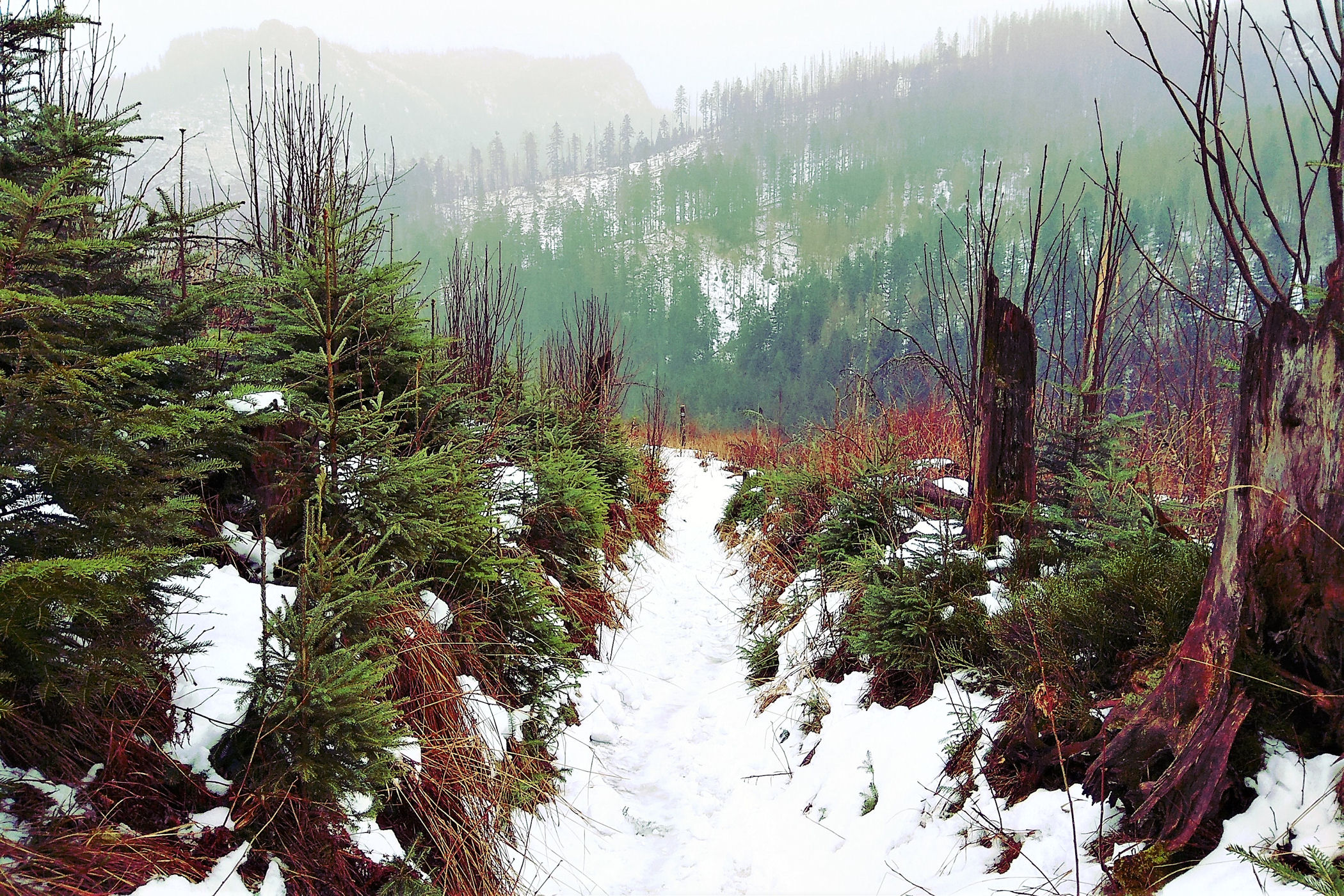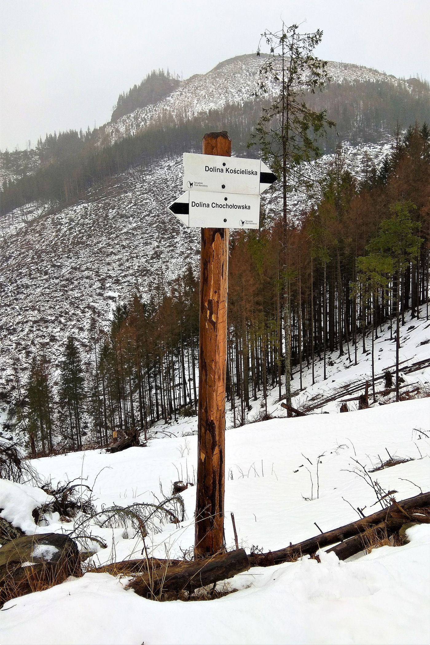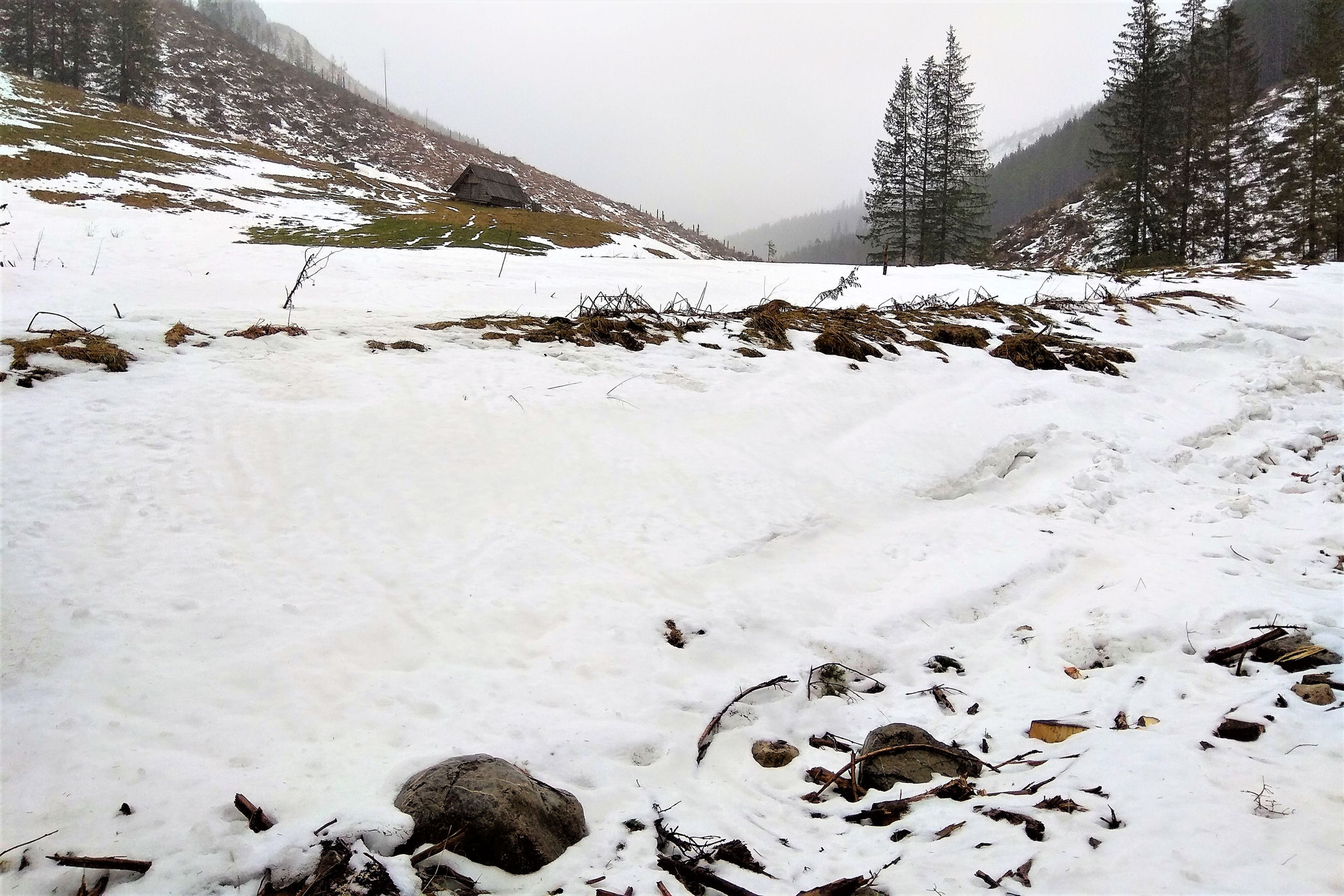 Wigilijna pogoda nas nie rozpieszcza, nagłe ocieplenie, rozmokły śnieg, a do tego cały dzień siąpiący deszcz. Około 11.30 ruszamy z naszego pensjonatu w Kirach w kierunku zachodnim . Pierwszy odcinek szlaku trzeba niestety pokonać ruchliwa drogą, ale już kawałek dalej jesteśmy w lesie i u wlotu Doliny Lejowej . To jedna z najmniej ciekawych dolin tatrzańskich, ale przy dzisiejszej pogodzie jest to w zasadzie bez znaczenia. Na Niżnej Kominiarskiej Polanie robimy sobie mały postój na świąteczne pierniki i herbatkę a następnie drogą Nad Reglami kierujemy się tak jak wczoraj do Doliny Kościeliskiej.