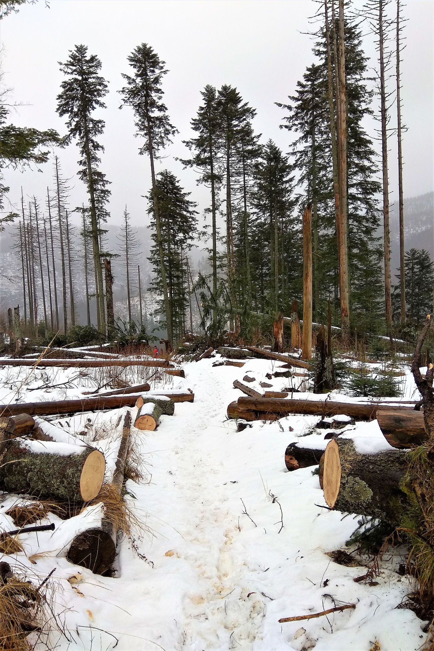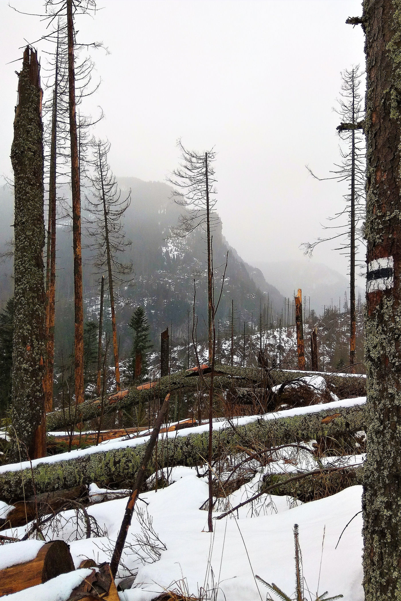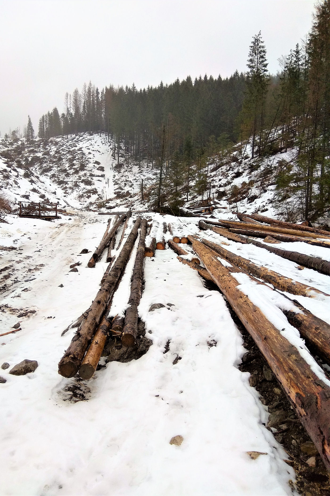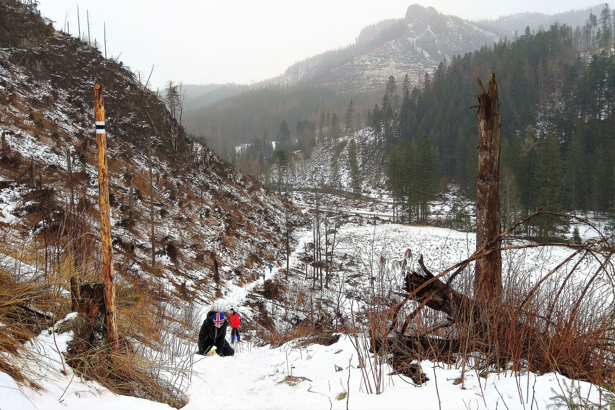 Wigilijna pogoda nas nie rozpieszcza, nagłe ocieplenie, rozmokły śnieg, a do tego cały dzień siąpiący deszcz. Około 11.30 ruszamy z naszego pensjonatu w Kirach w kierunku zachodnim . Pierwszy odcinek szlaku trzeba niestety pokonać ruchliwa drogą, ale już kawałek dalej jesteśmy w lesie i u wlotu Doliny Lejowej . To jedna z najmniej ciekawych dolin tatrzańskich, ale przy dzisiejszej pogodzie jest to w zasadzie bez znaczenia. Na Niżnej Kominiarskiej Polanie robimy sobie mały postój na świąteczne pierniki i herbatkę a następnie drogą Nad Reglami kierujemy się tak jak wczoraj do Doliny Kościeliskiej.