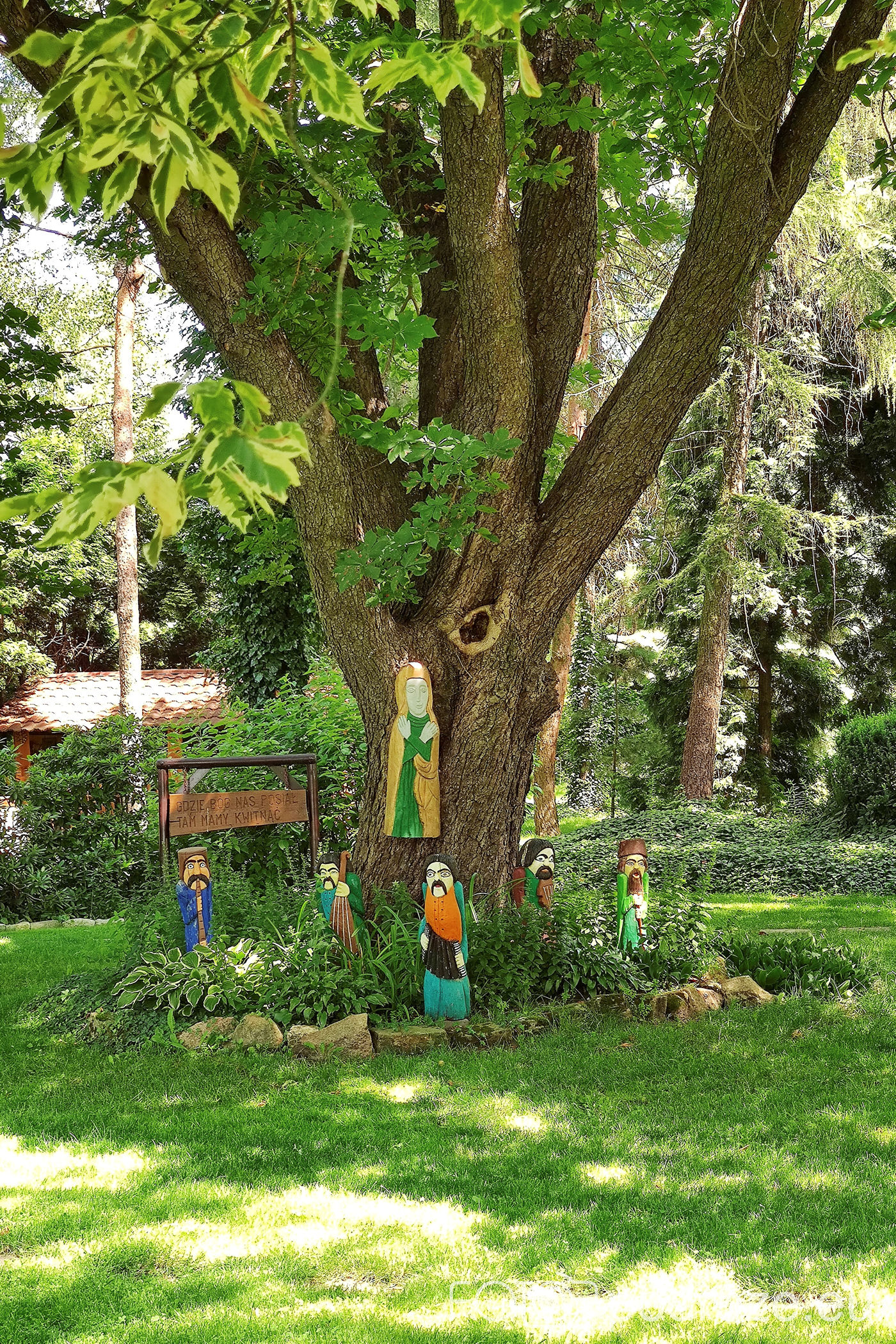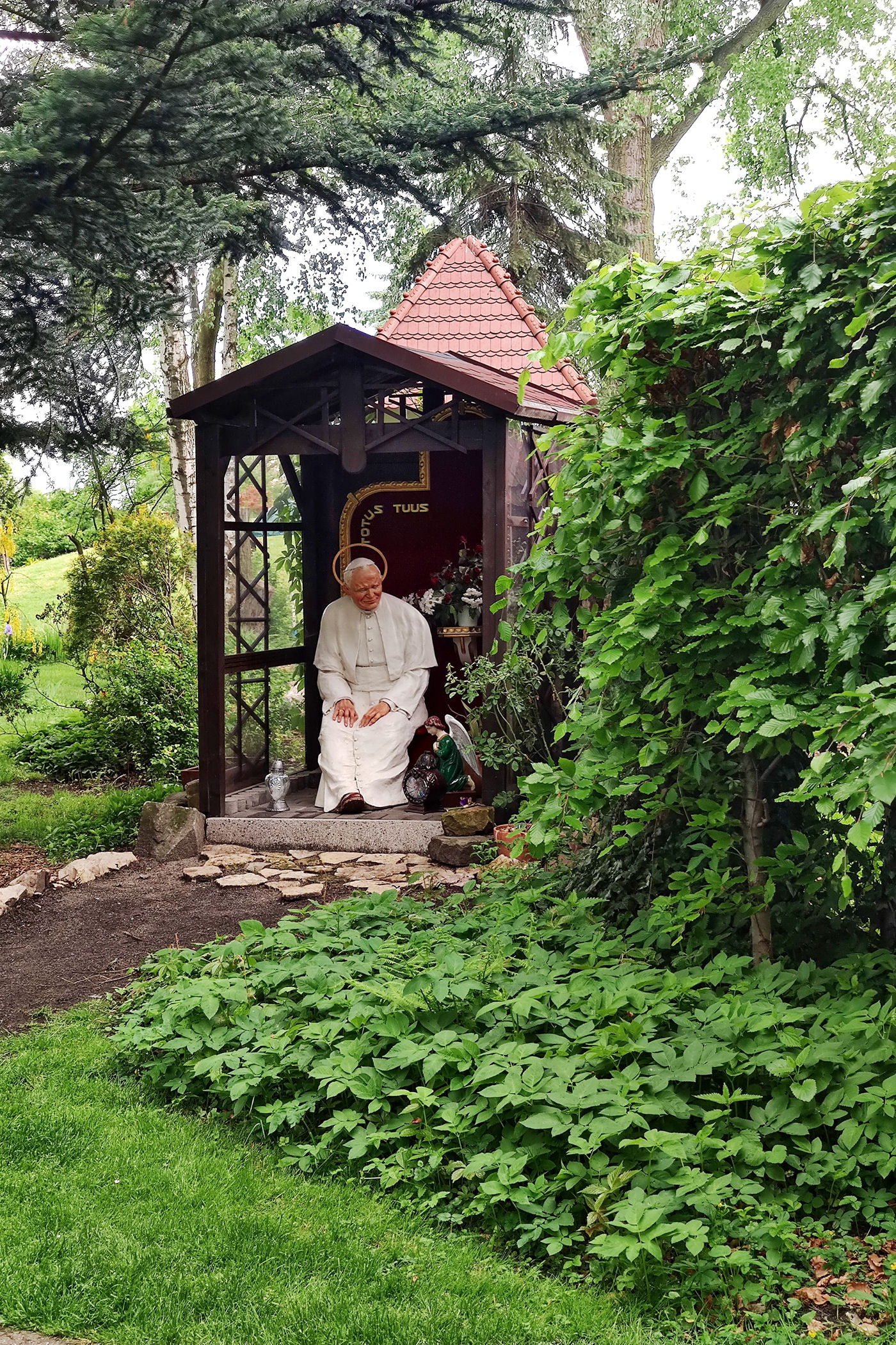 Atrakcją i tym co wyróżnia ten ogród na tle innych jest ogromna ilość rzeźb. Większość z nich to figury świętych, jest tu postać papieża, ale są też ule, kapliczki i inne elementy pięknie wkomponowane w całość założenia .