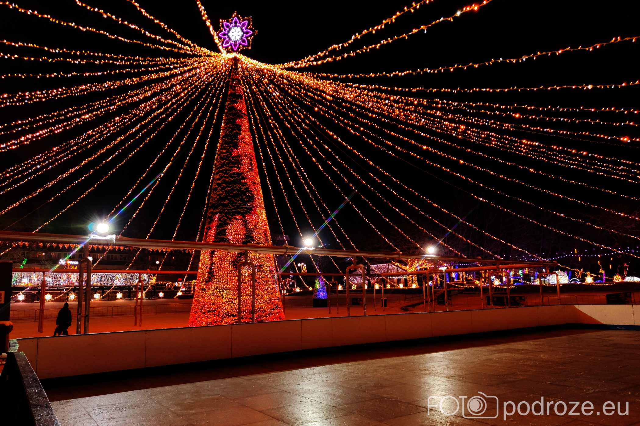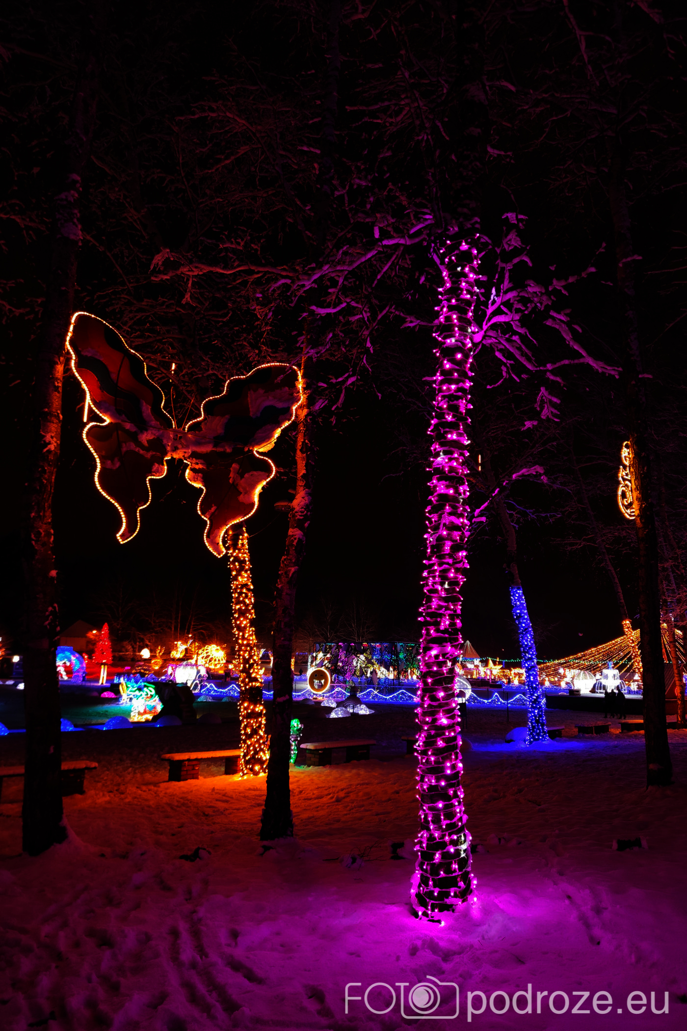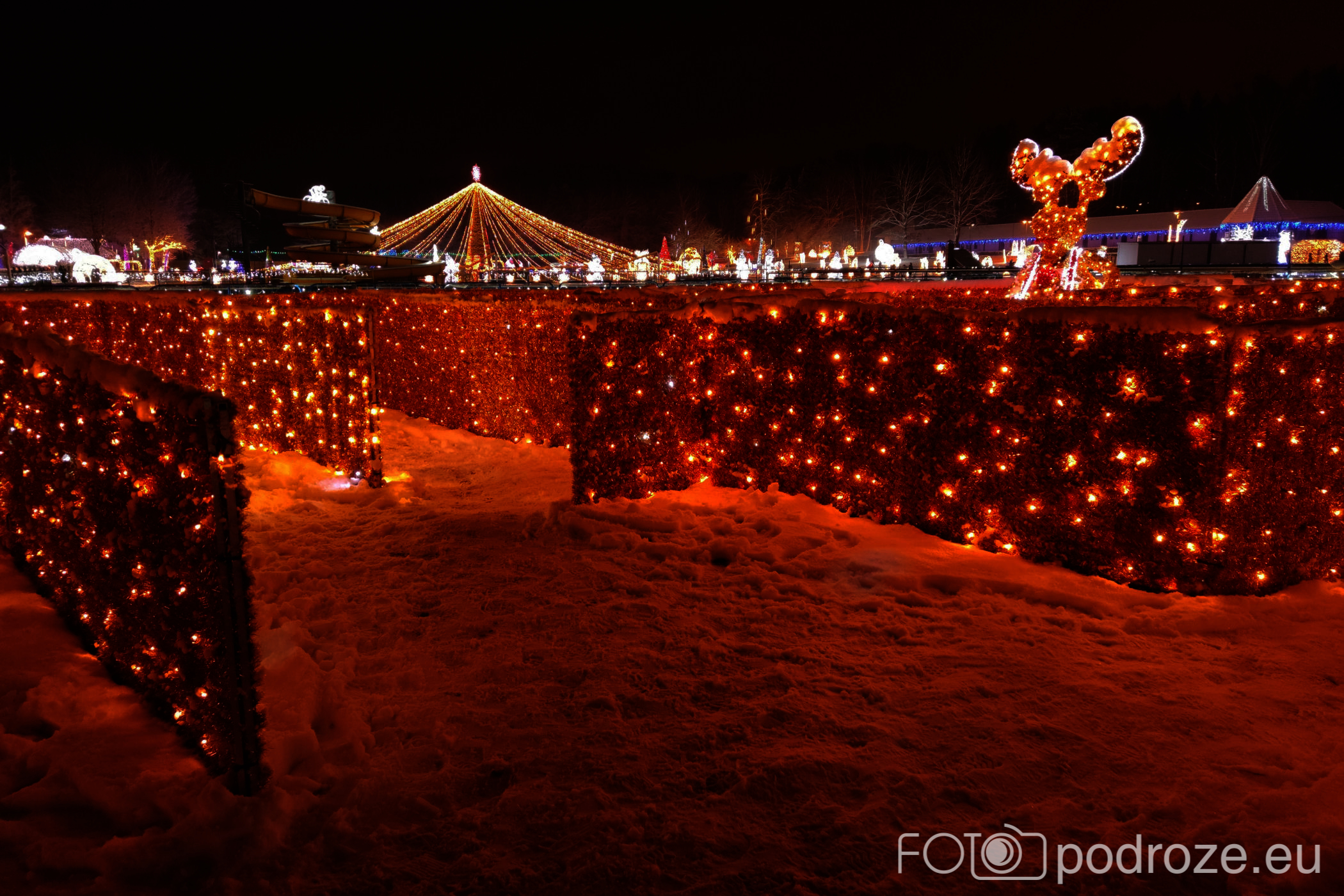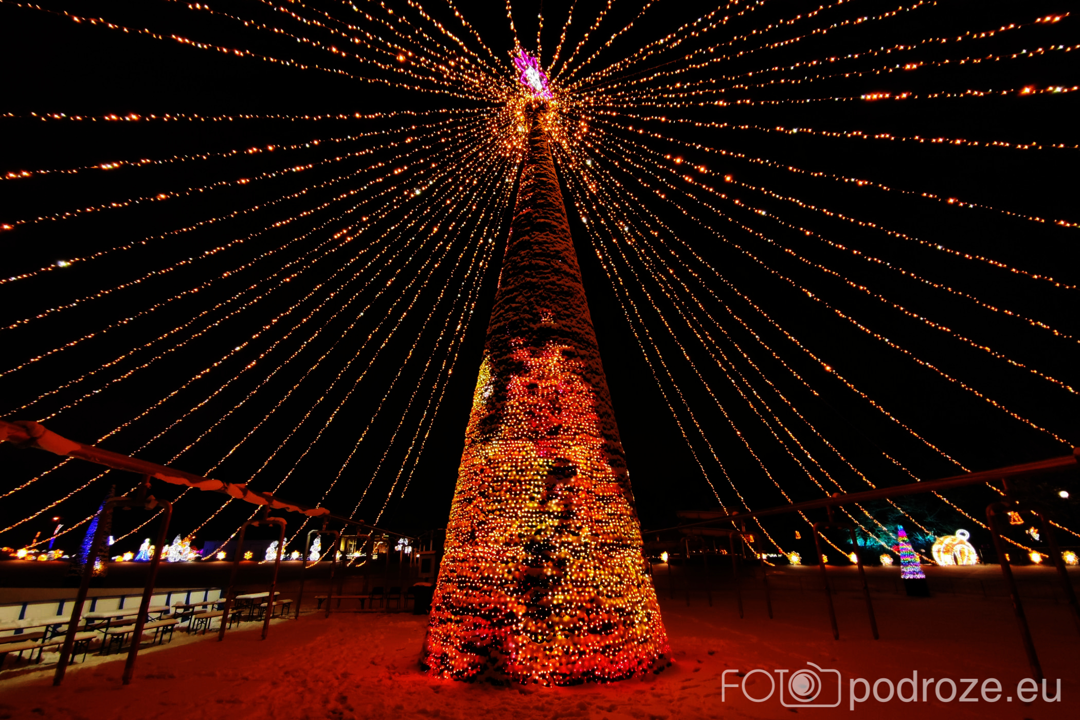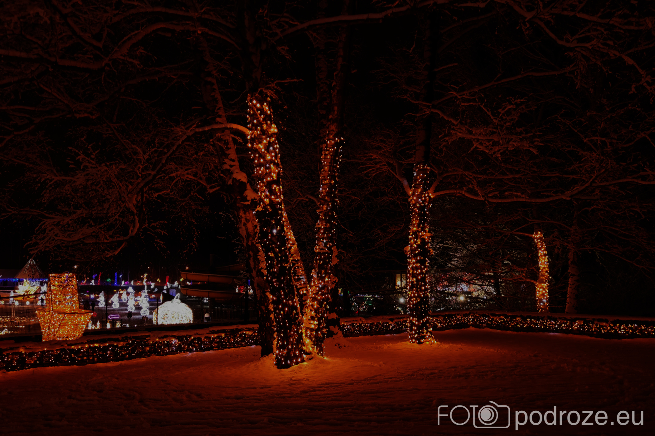 Na środku krainy lodu króluje wielka choinka i jak by zaprzeczając nazwie płonie rozgrzewając atmosferę. Obok lodowisko, ale niestety nieczynne podczas naszej wizyty.