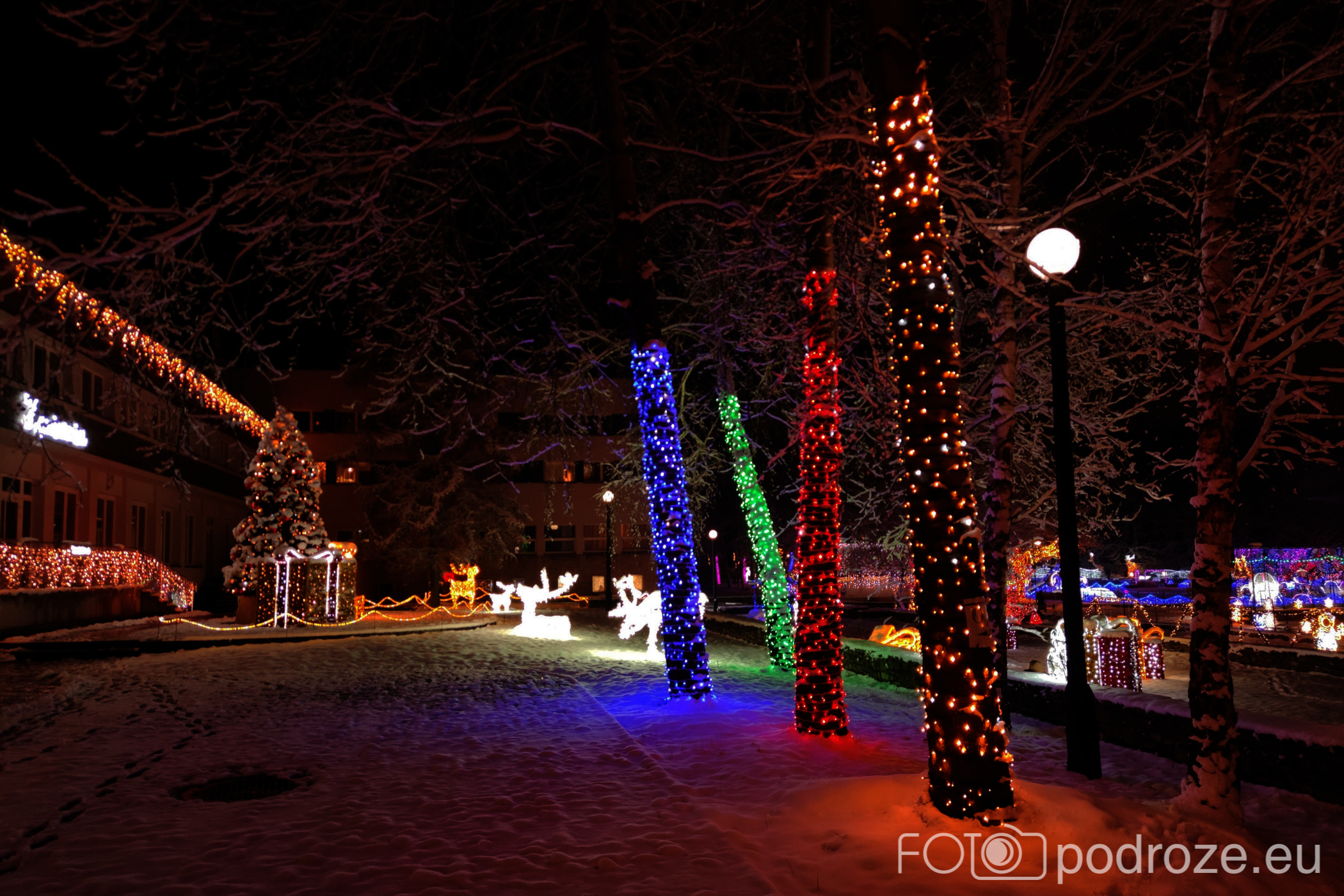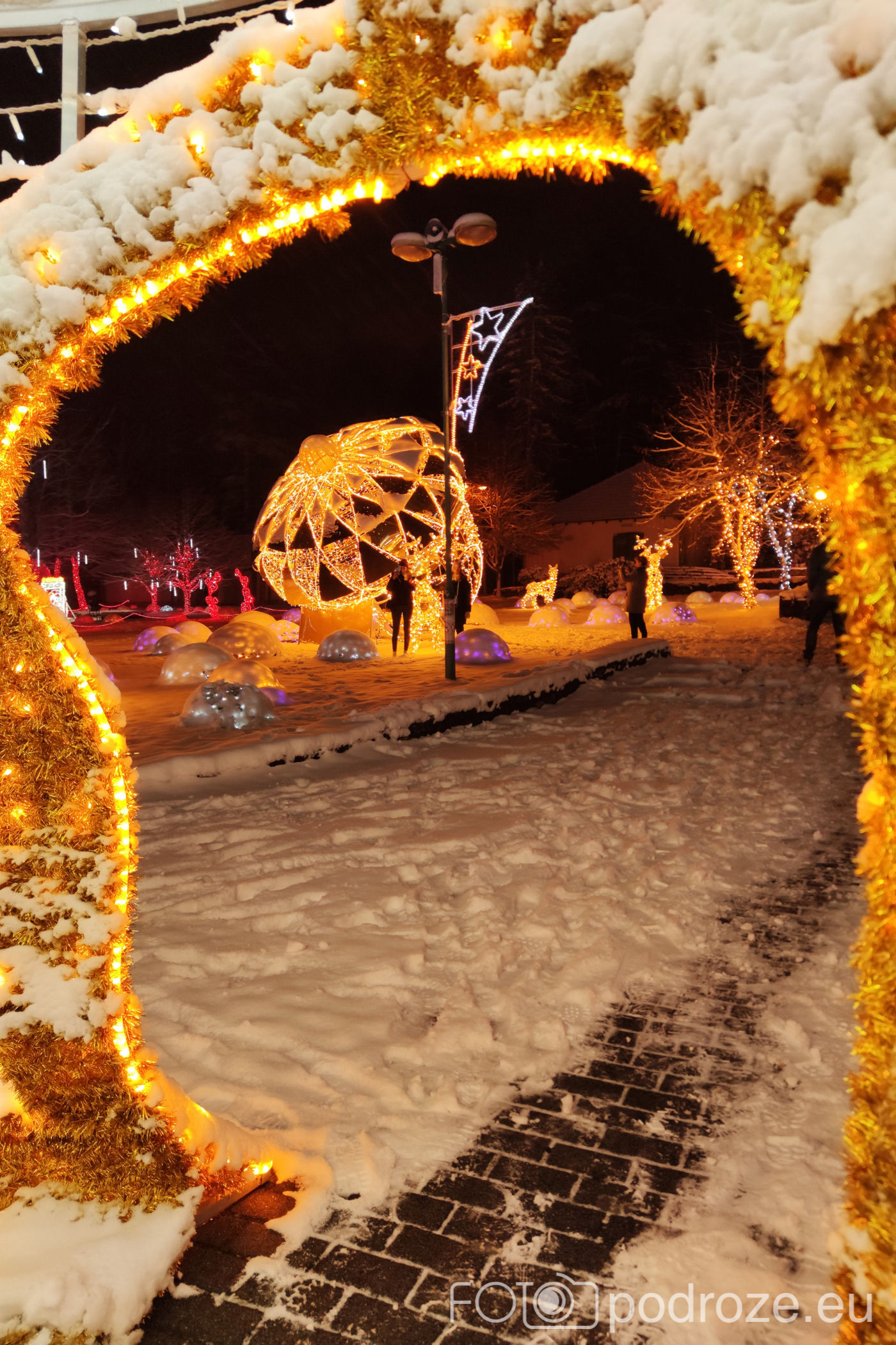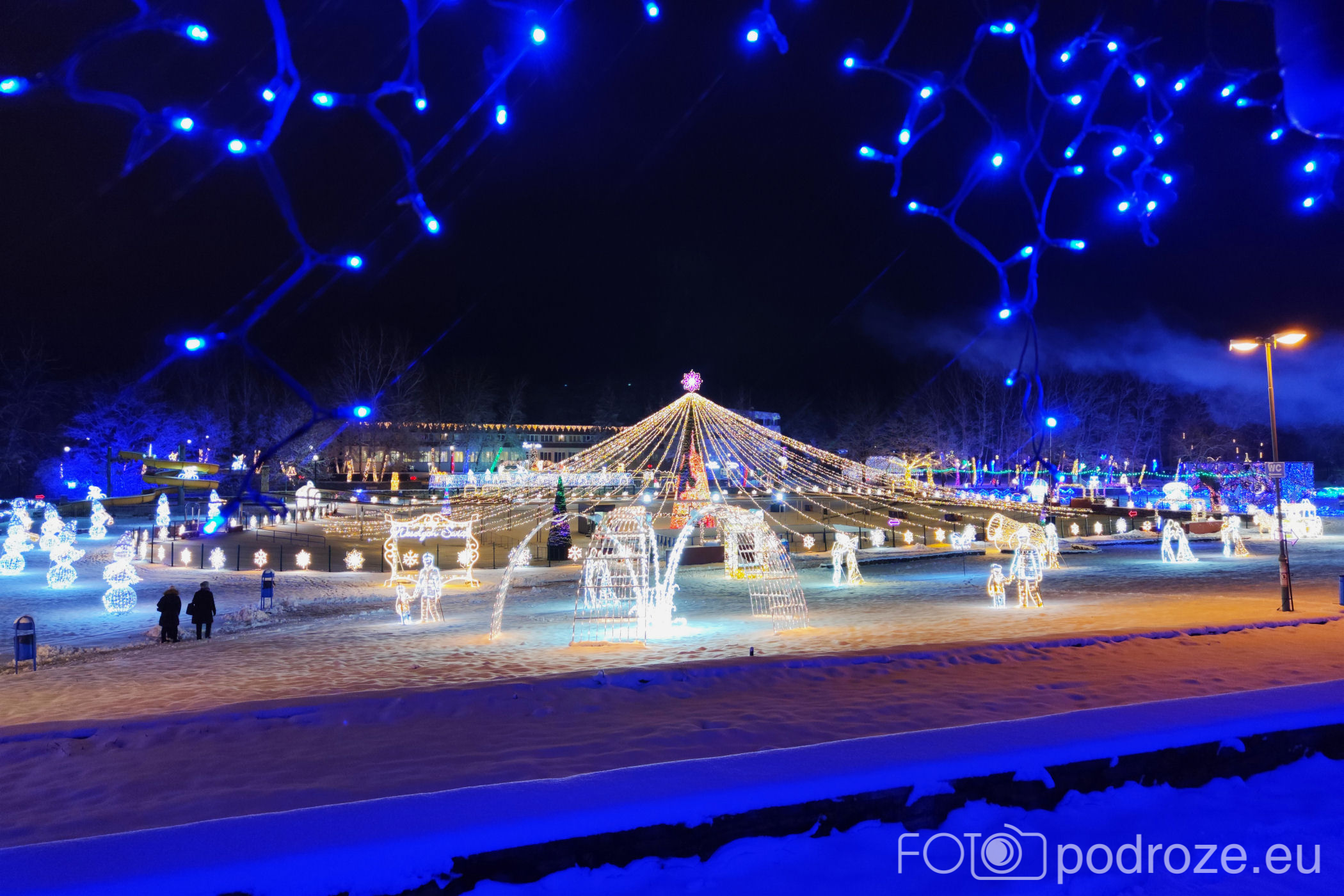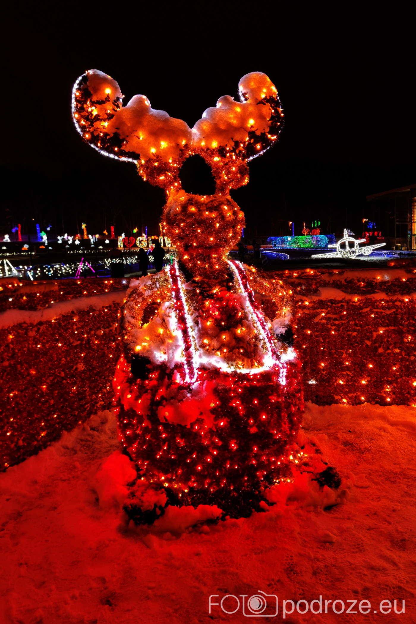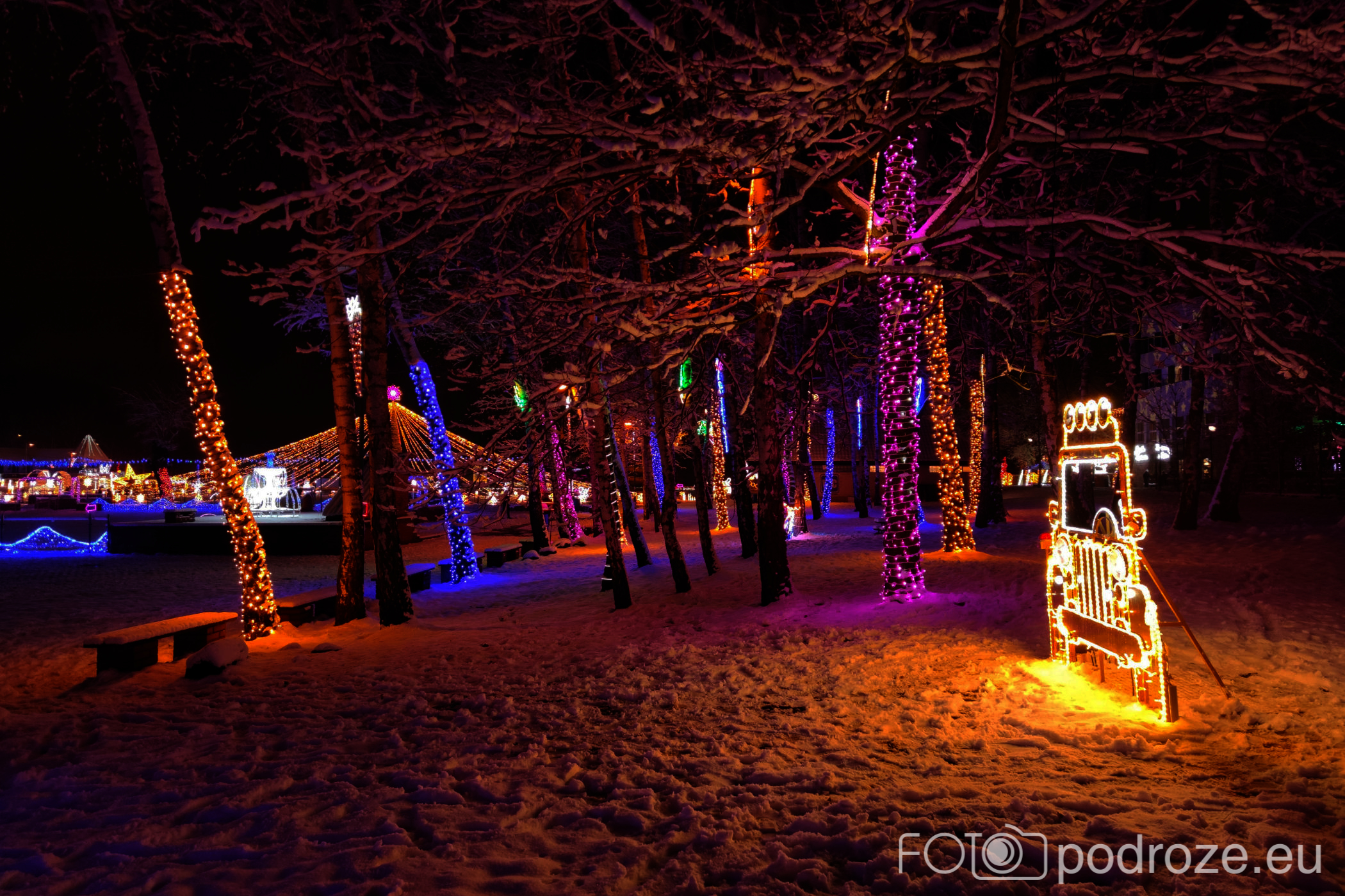 Na środku krainy lodu króluje wielka choinka i jak by zaprzeczając nazwie płonie rozgrzewając atmosferę. Obok lodowisko, ale niestety nieczynne podczas naszej wizyty.