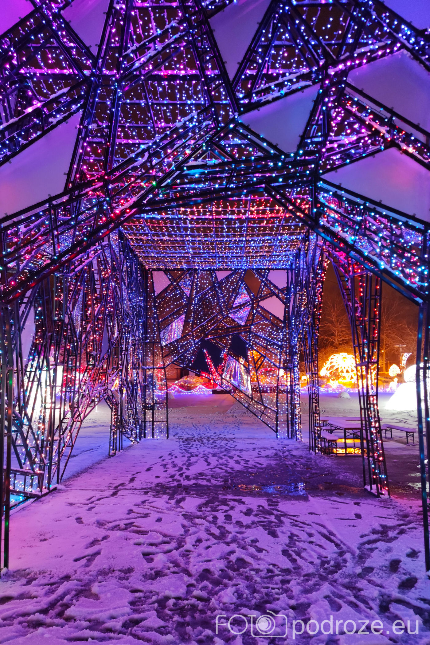 My akurat korzystaliśmy z drugiego wejścia (od strony basenu), numerek 1 znajdziecie po drugiej stronie ogrodów. Tuż za bramkami wejściowymi czekał na nas świetlny tunel. Fantastyczna iluminacja zmieniająca kolory wprowadziła nas w magiczny świat.