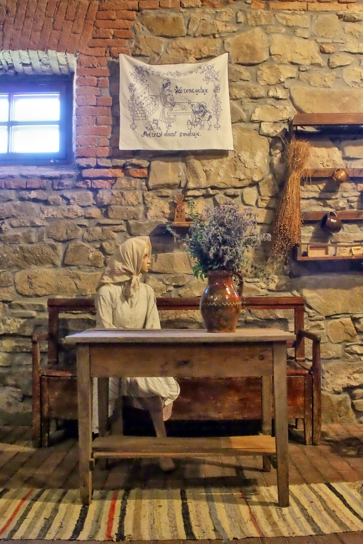 Drugi budynek obok dworku to zachowana do dzisiaj oficyna dworska, która służy obecnie celom wystawowym i od 2011 roku wraz z kasztelem funkcjonuje jako Ośrodek Konferencyjno-Wystawienniczy “Kasztel w Szymbarku”. Podczas naszego zwiedzania były tu odtworzone wnętrza dworu i chałup oraz opisane na tablicach ciekawe przepisy kulinarne.