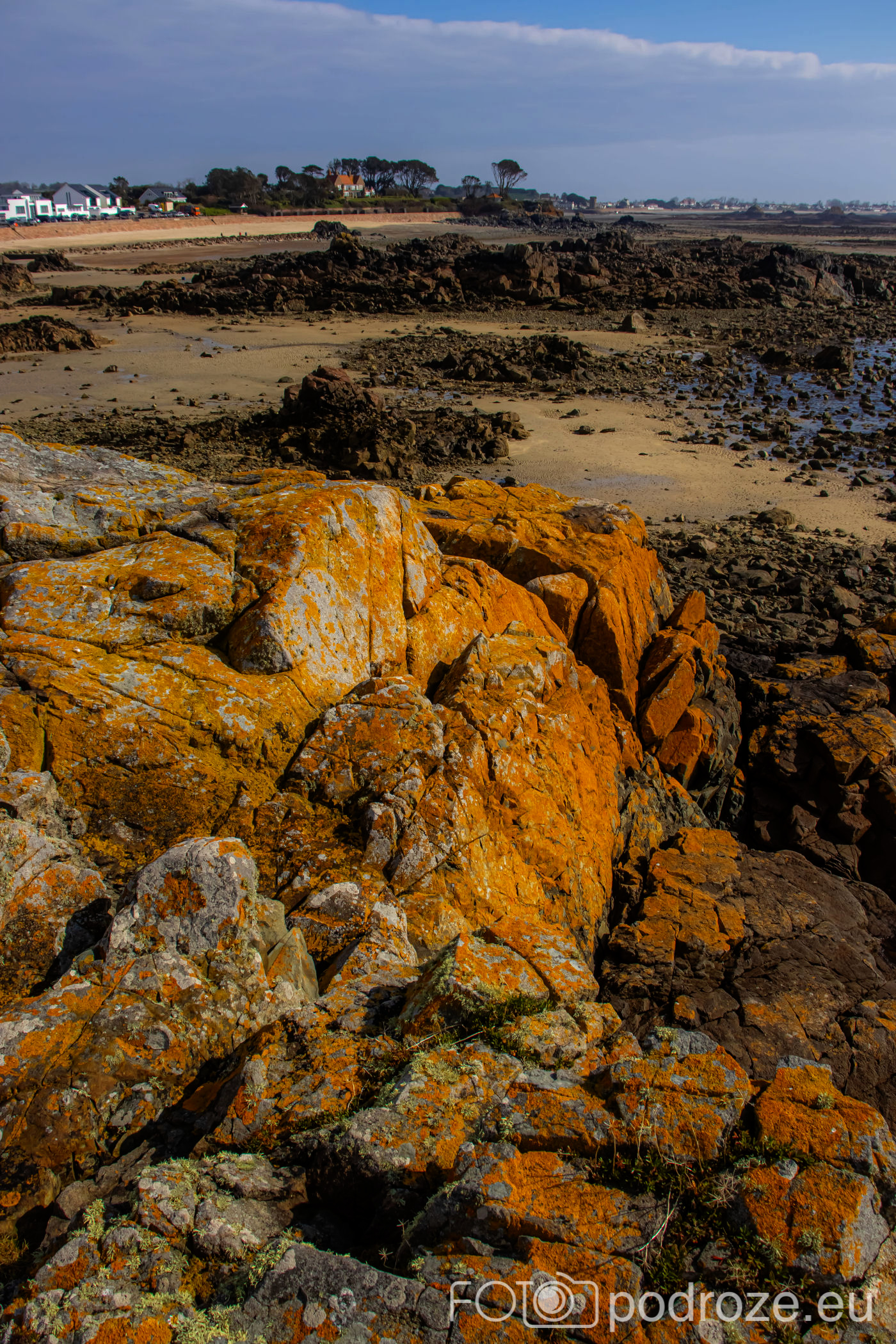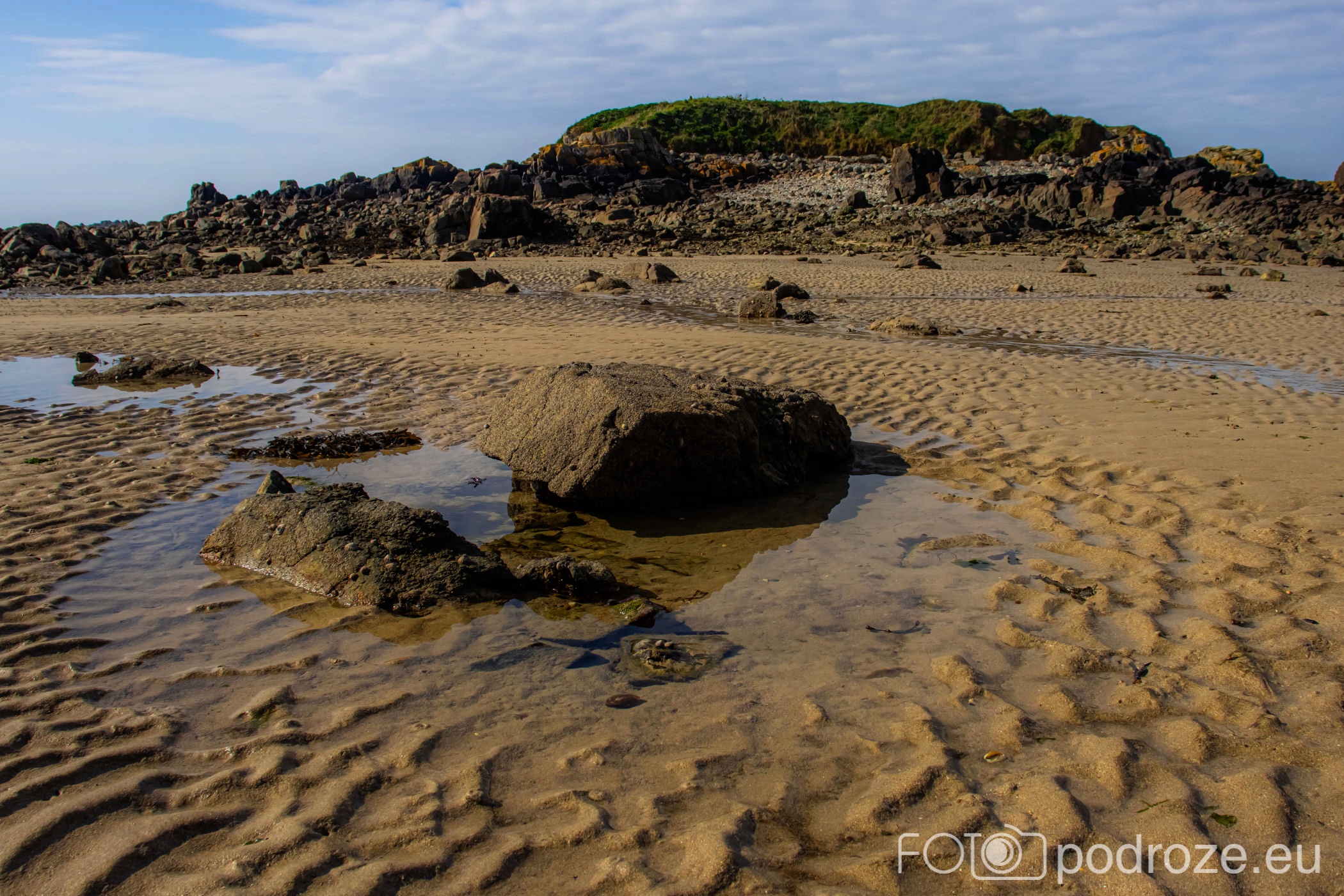 My nie mamy czasu na spacer wzdłuż całego wybrzeża, zatrzymujemy się więc tylko w miejscu w którym przy odpływie można dojść na zieloną wysepkę. Okolica jest tu sympatyczna, wzdłuż wybrzeża ciągną się domki jednorodzinne. Nie widać jednak bogactwa i przepychu jakiego byśmy się spodziewali na tak bogatej wyspie i w pierwszej linii brzegowej.