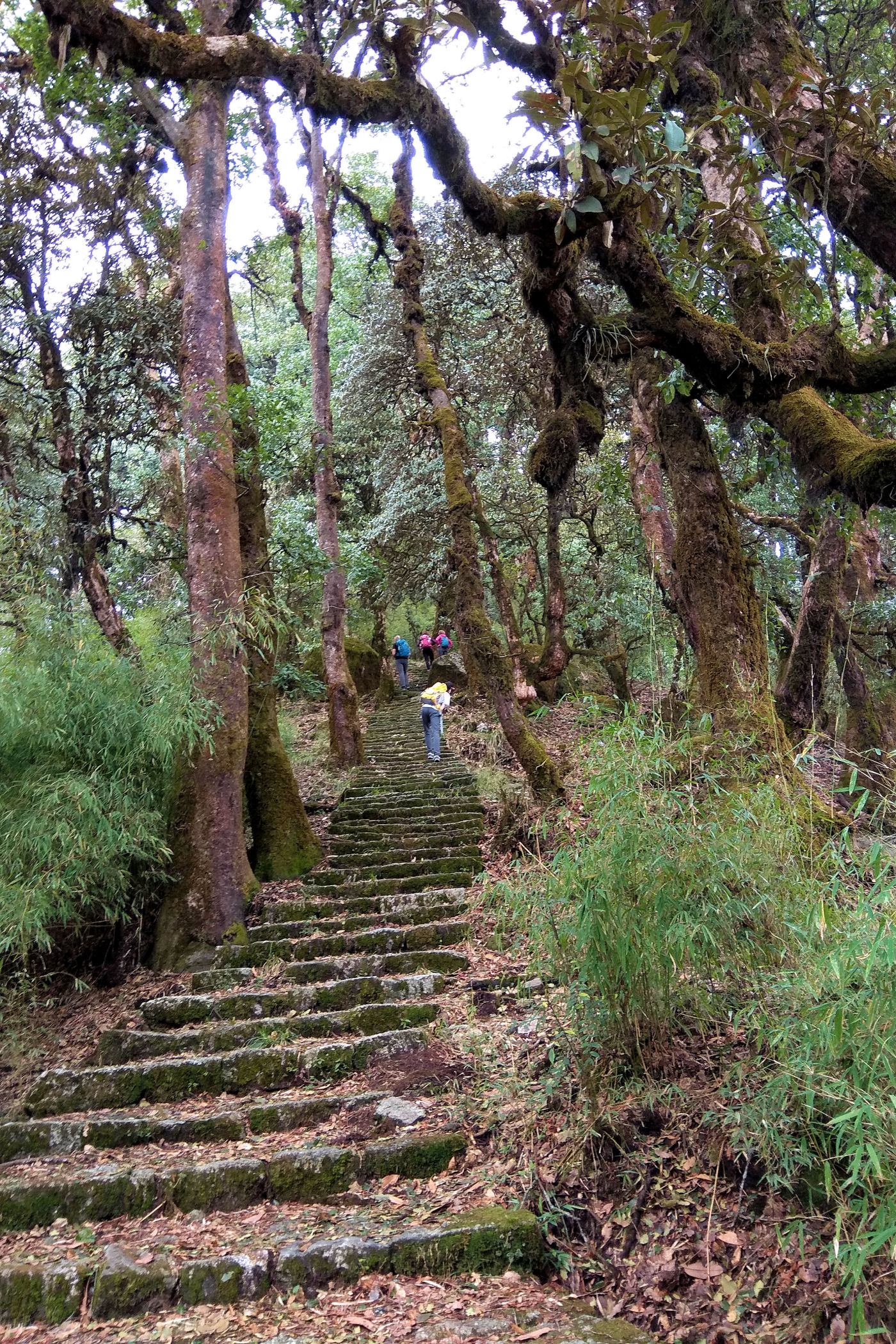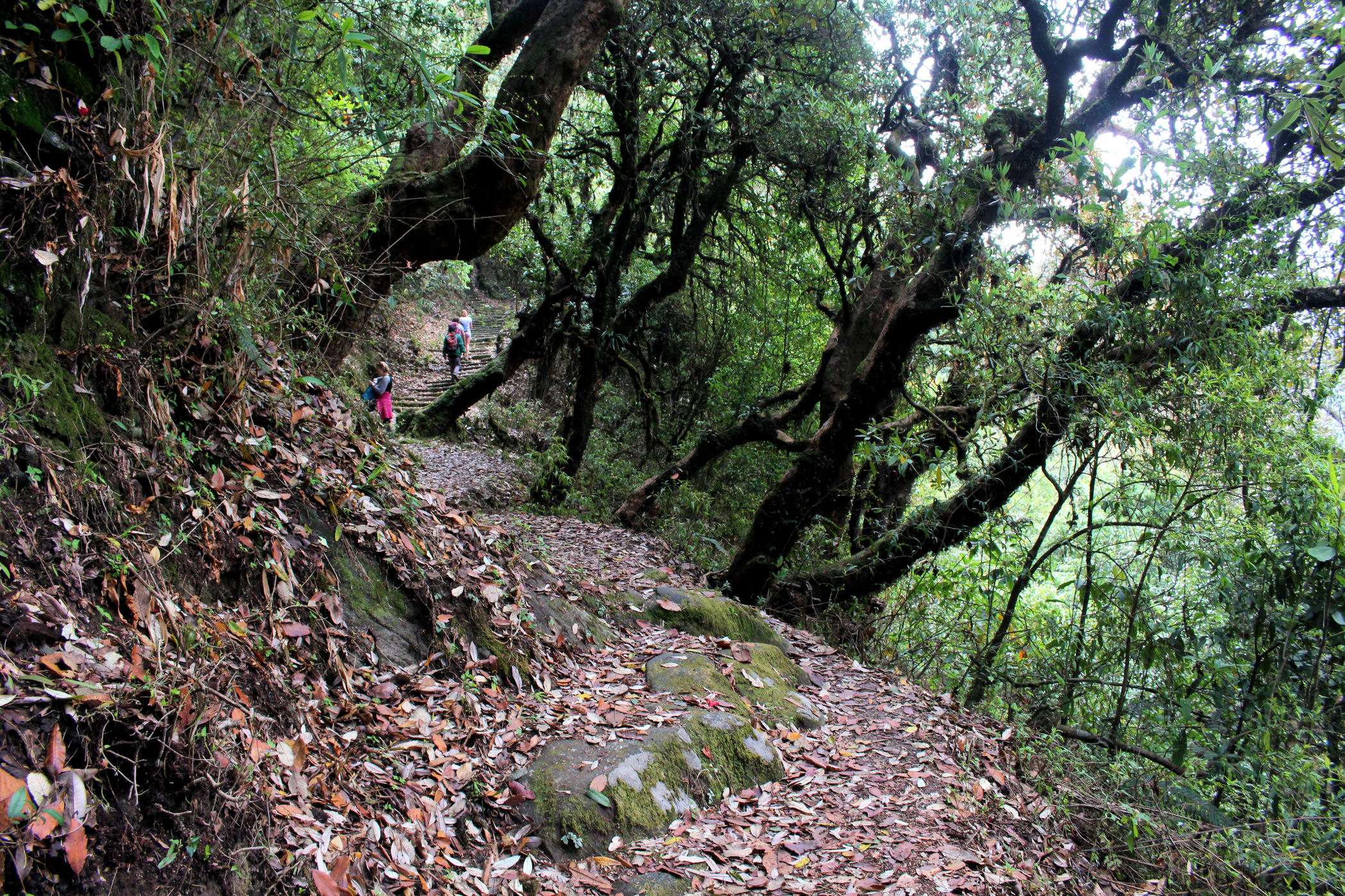 My dotarliśmy tu z zasadzie przypadkowo , został nam jeden dzień do zagospodarowania w Katmandu, zaproponowałam więc wynajęcie busa i w składzie 6-osobowym po przejeździe najgorszą drogą świata ( z powodu nawierzchni, albo raczej jej braku ) , zameldowaliśmy się u bram parku, a dalej z przewodnikiem ( bo takie panują w nim zasady ) – ruszyliśmy na najwyższy szczyt.