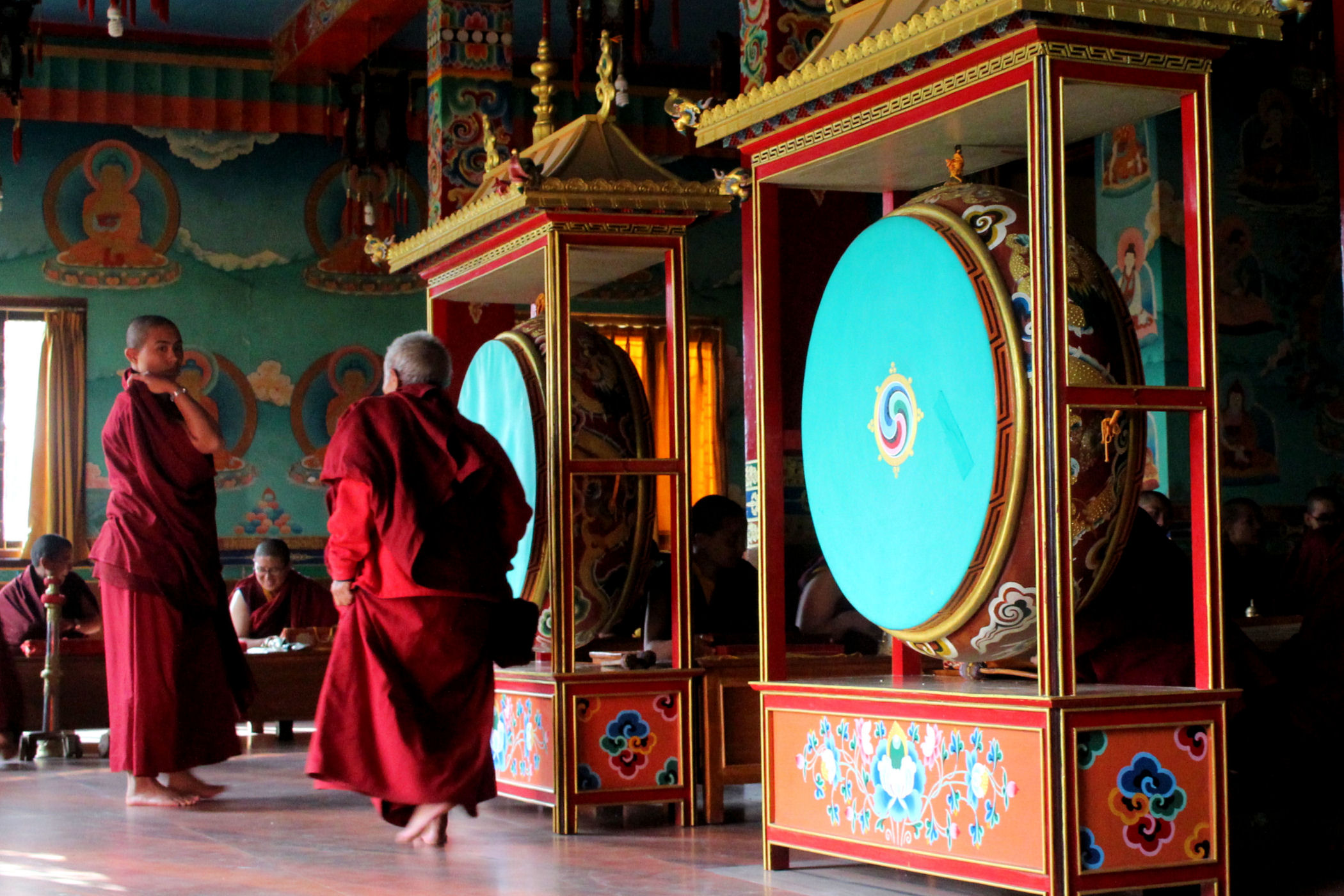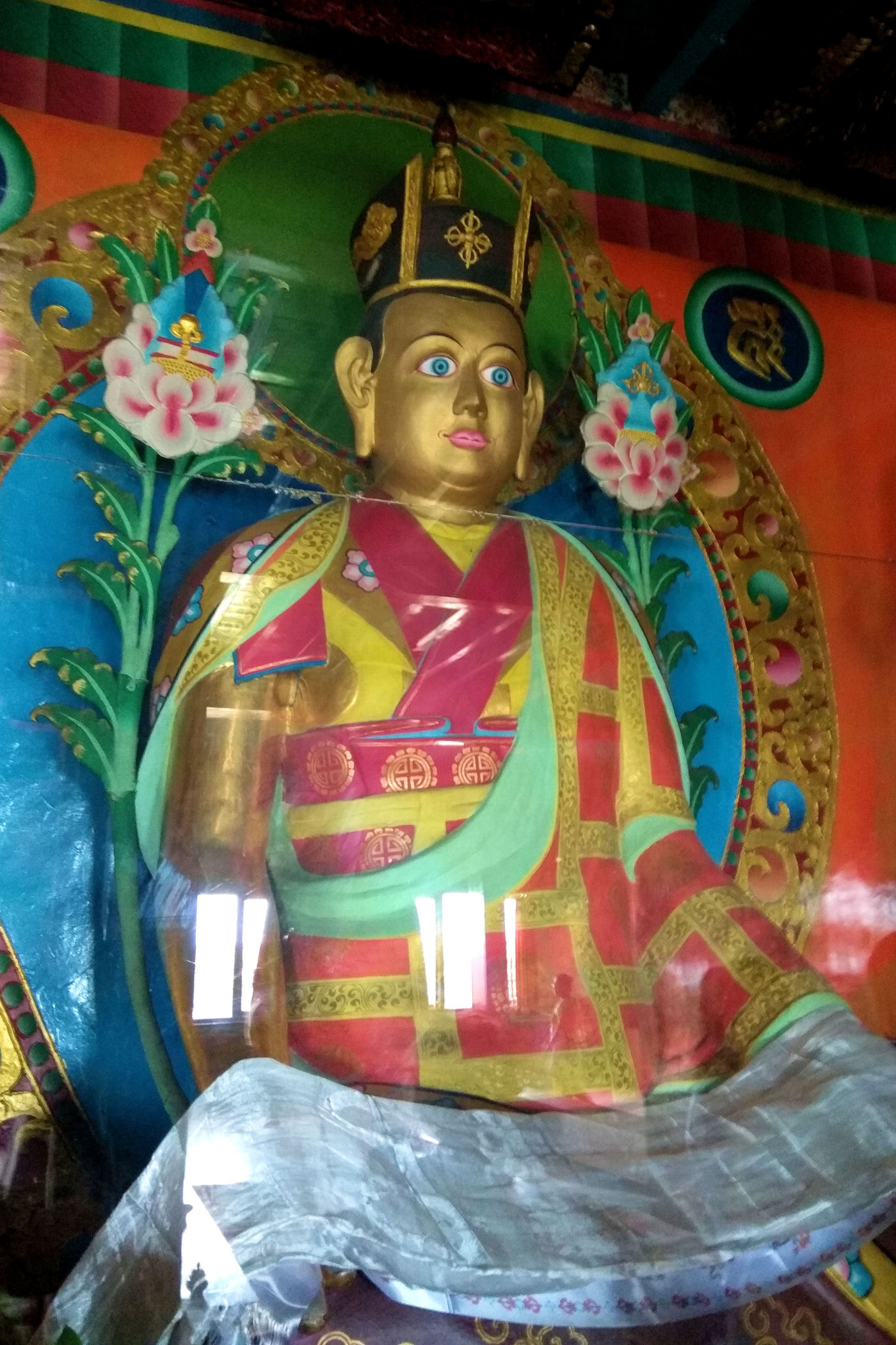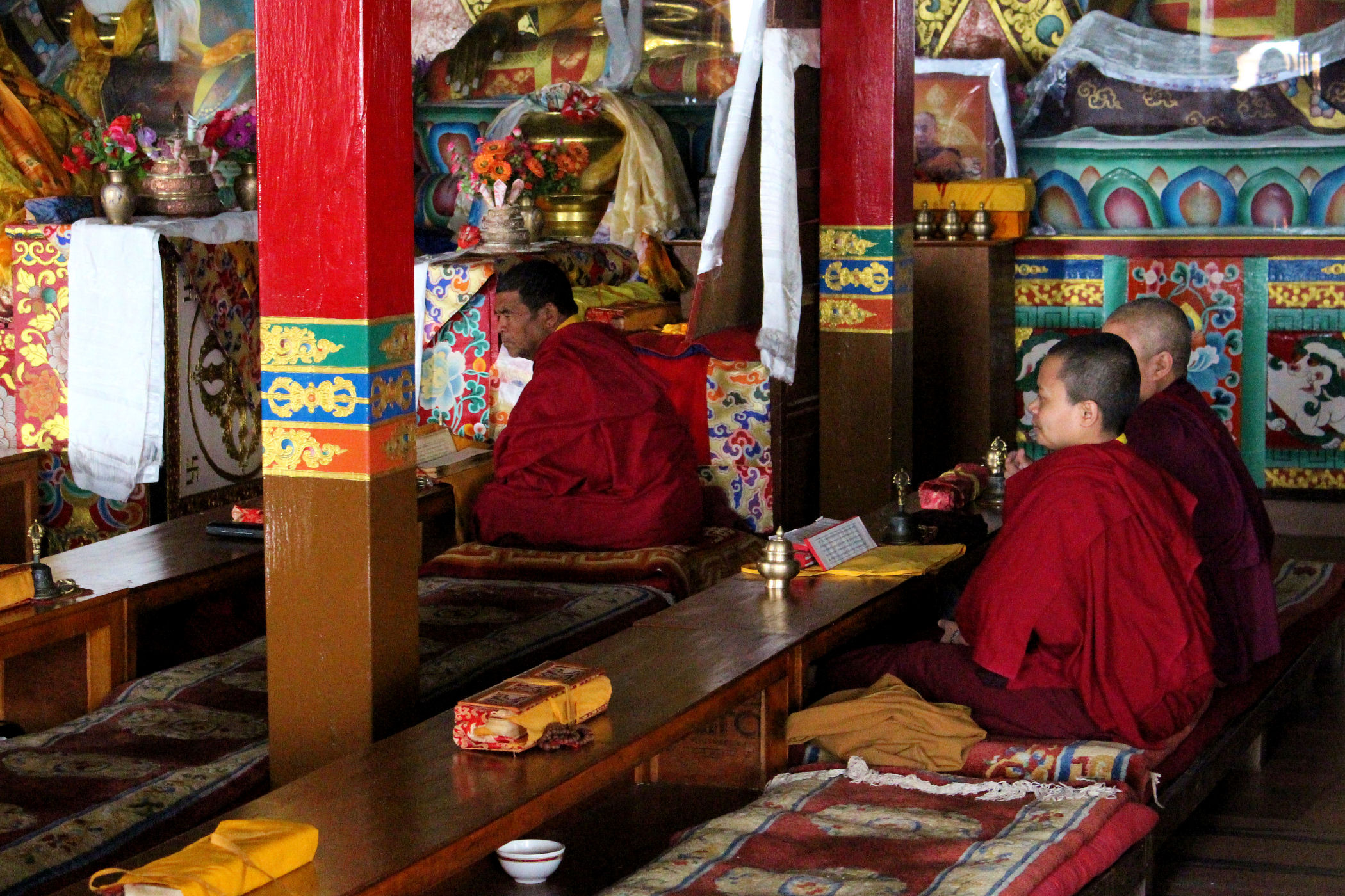 1,5 godziny później docieramy do Klasztoru Buddyjskiego – Nagi Gumba. Zaczyna padać – z przyjemnością korzystamy więc z zaproszenia na podwieczorek serwowany przez mniszki ( bo to klasztor żeński ) . Wypoczęci , po pysznej herbacie i ciastkach ( pozostawiając pieniążki w ramach wdzięczności ) kierujemy się jeszcze do świątyni na modły. Pokój Puja to pomieszczenie modlitwy i medytacji, tu odbywają się codzienne pudże – medytacje trwające przez 1 godzinę i 15 minut o 4:30 i 16:30. Nie zostajemy jednak na całych modłach – czas na powrót.