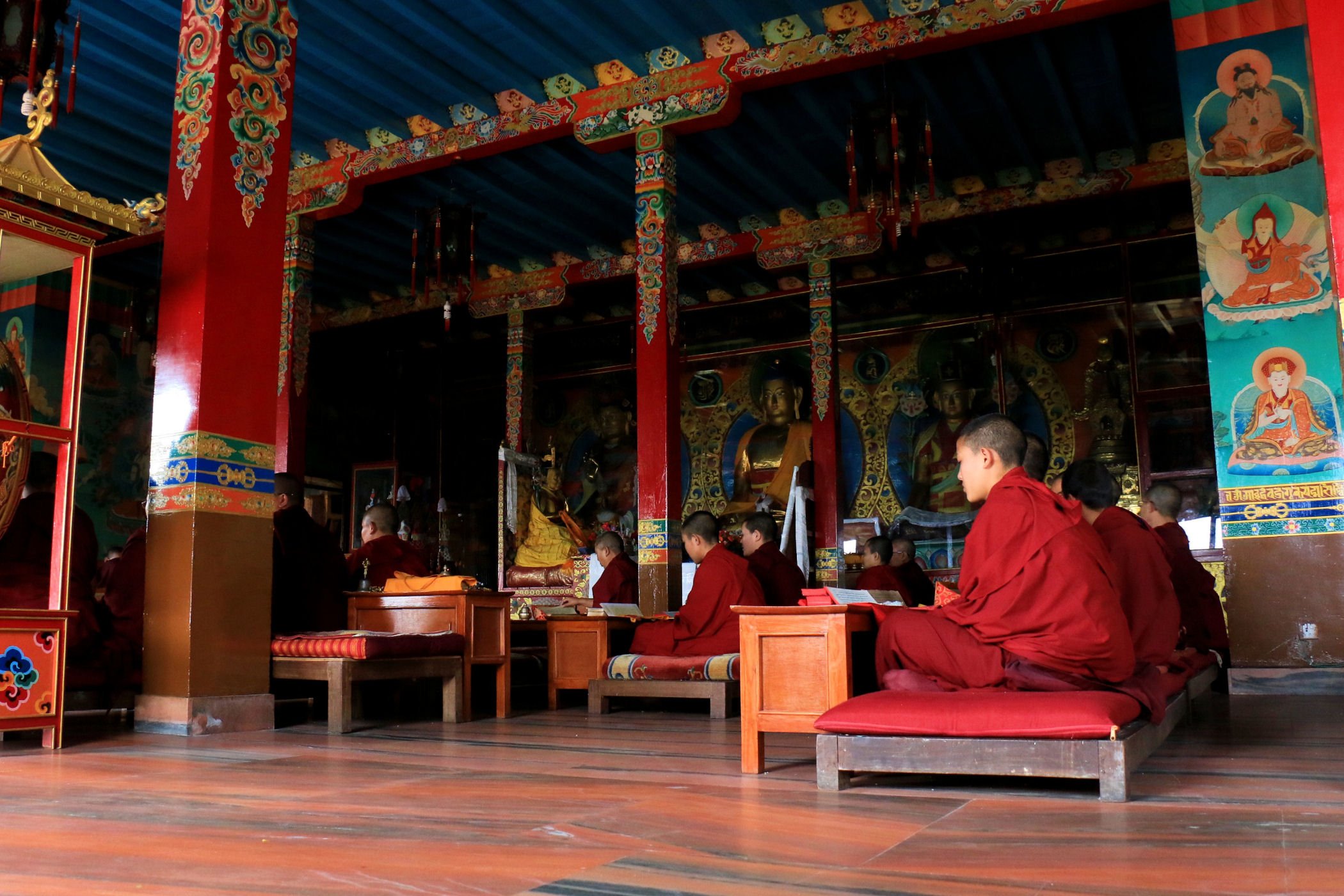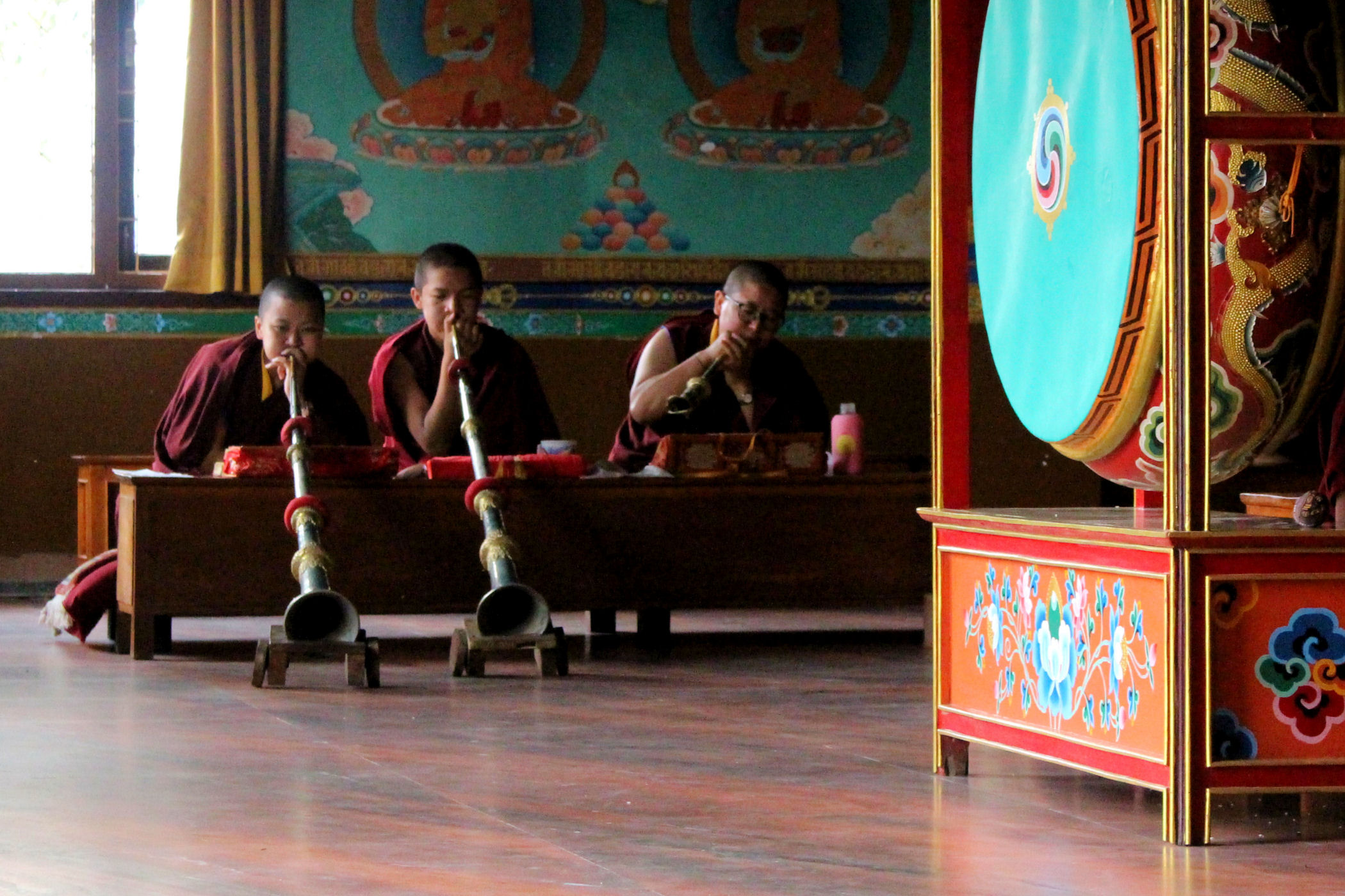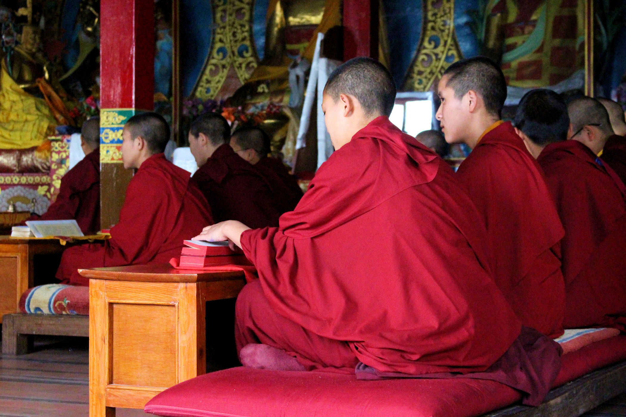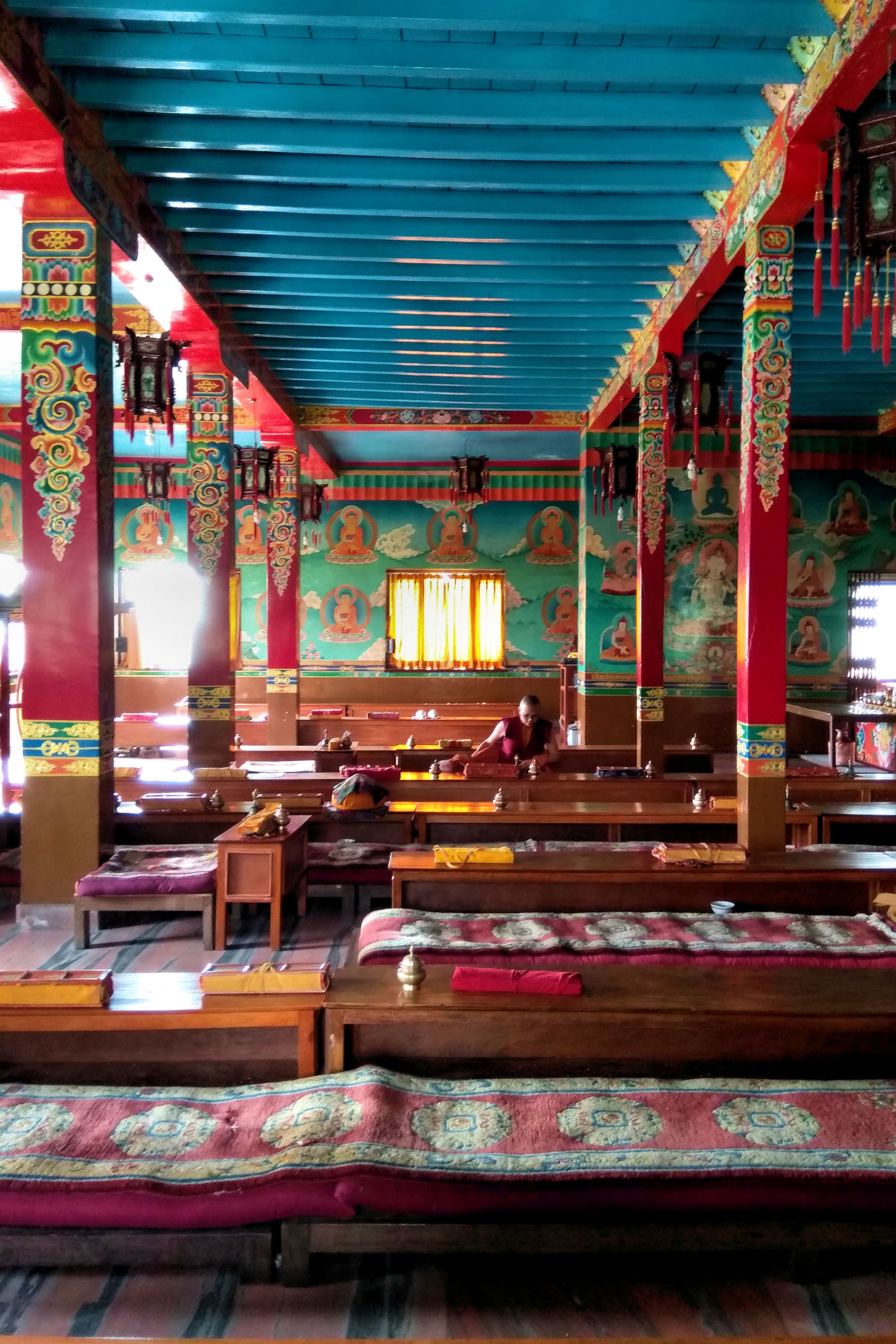 1,5 godziny później docieramy do Klasztoru Buddyjskiego – Nagi Gumba. Zaczyna padać – z przyjemnością korzystamy więc z zaproszenia na podwieczorek serwowany przez mniszki ( bo to klasztor żeński ) . Wypoczęci , po pysznej herbacie i ciastkach ( pozostawiając pieniążki w ramach wdzięczności ) kierujemy się jeszcze do świątyni na modły. Pokój Puja to pomieszczenie modlitwy i medytacji, tu odbywają się codzienne pudże – medytacje trwające przez 1 godzinę i 15 minut o 4:30 i 16:30. Nie zostajemy jednak na całych modłach – czas na powrót.
