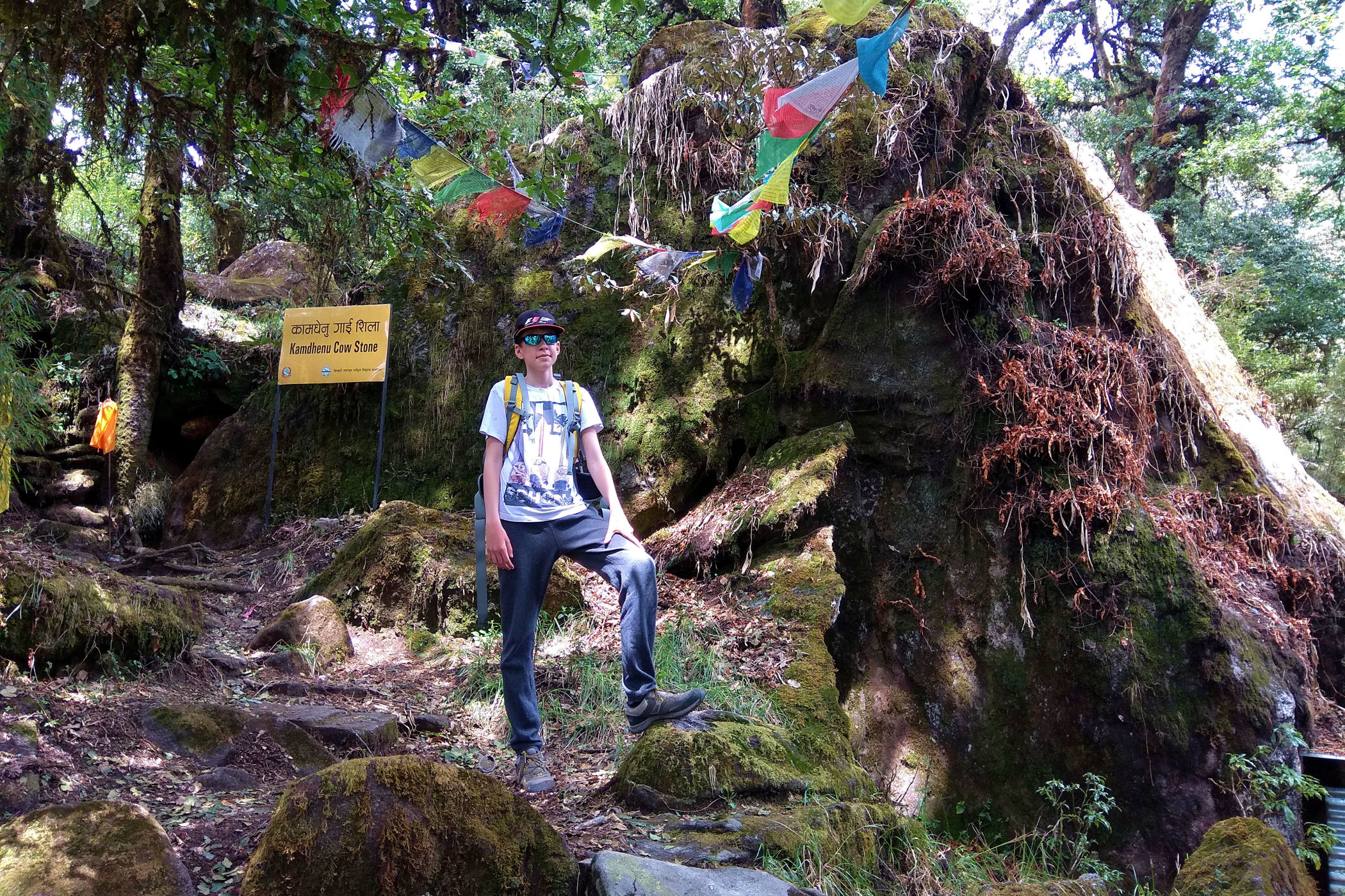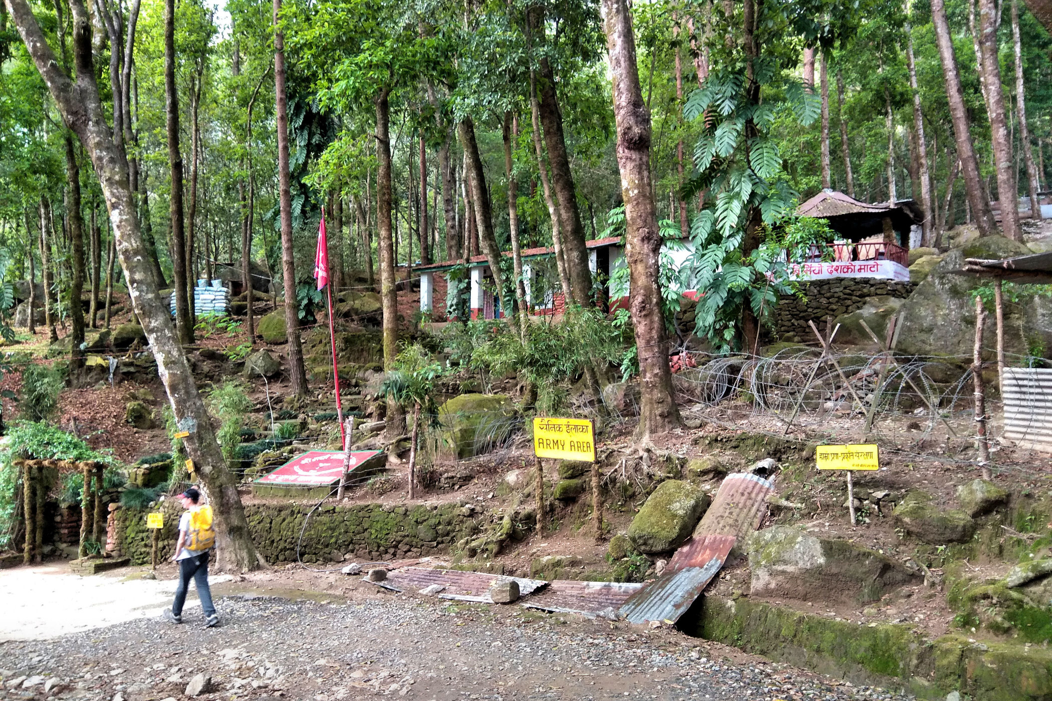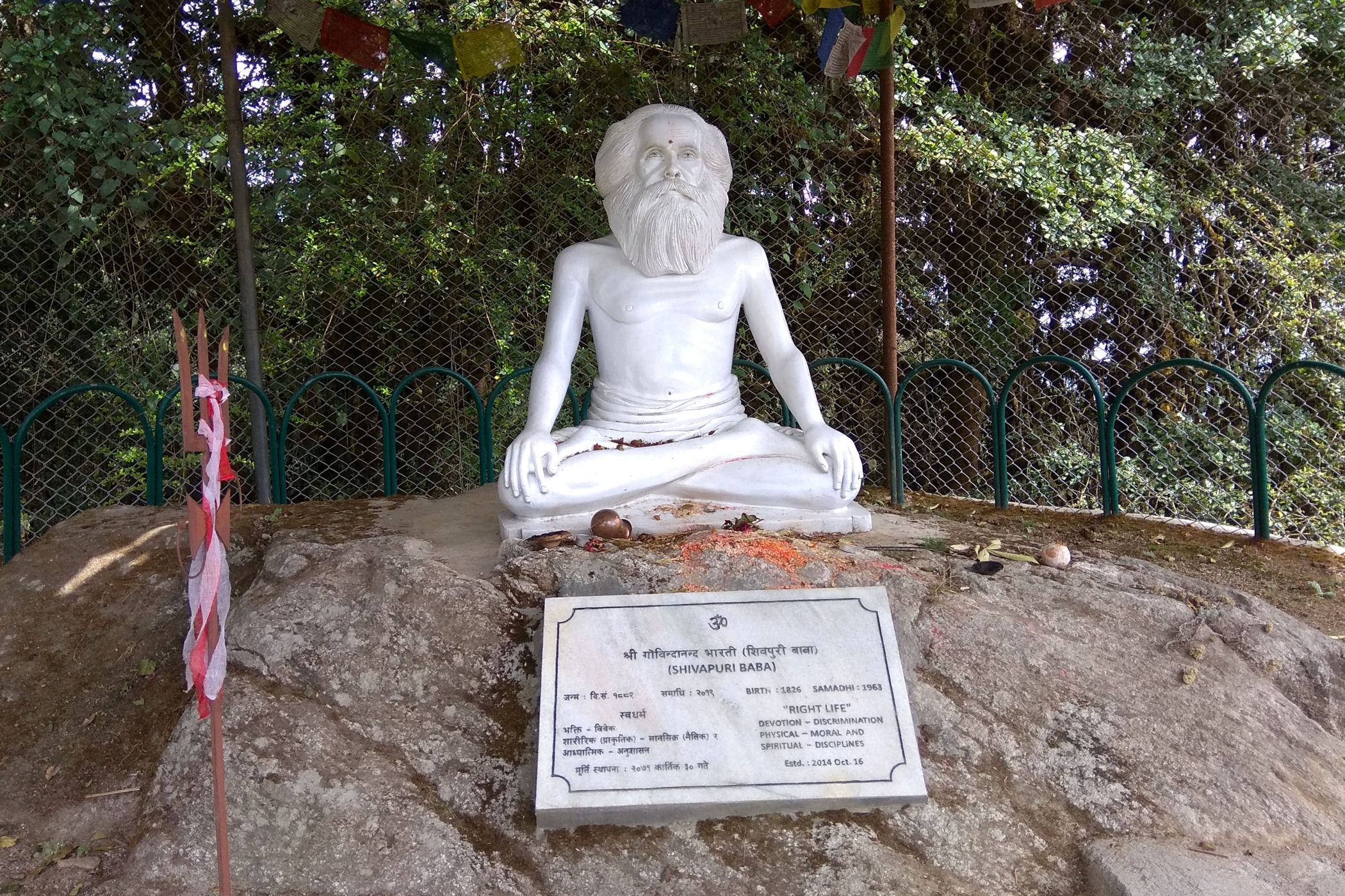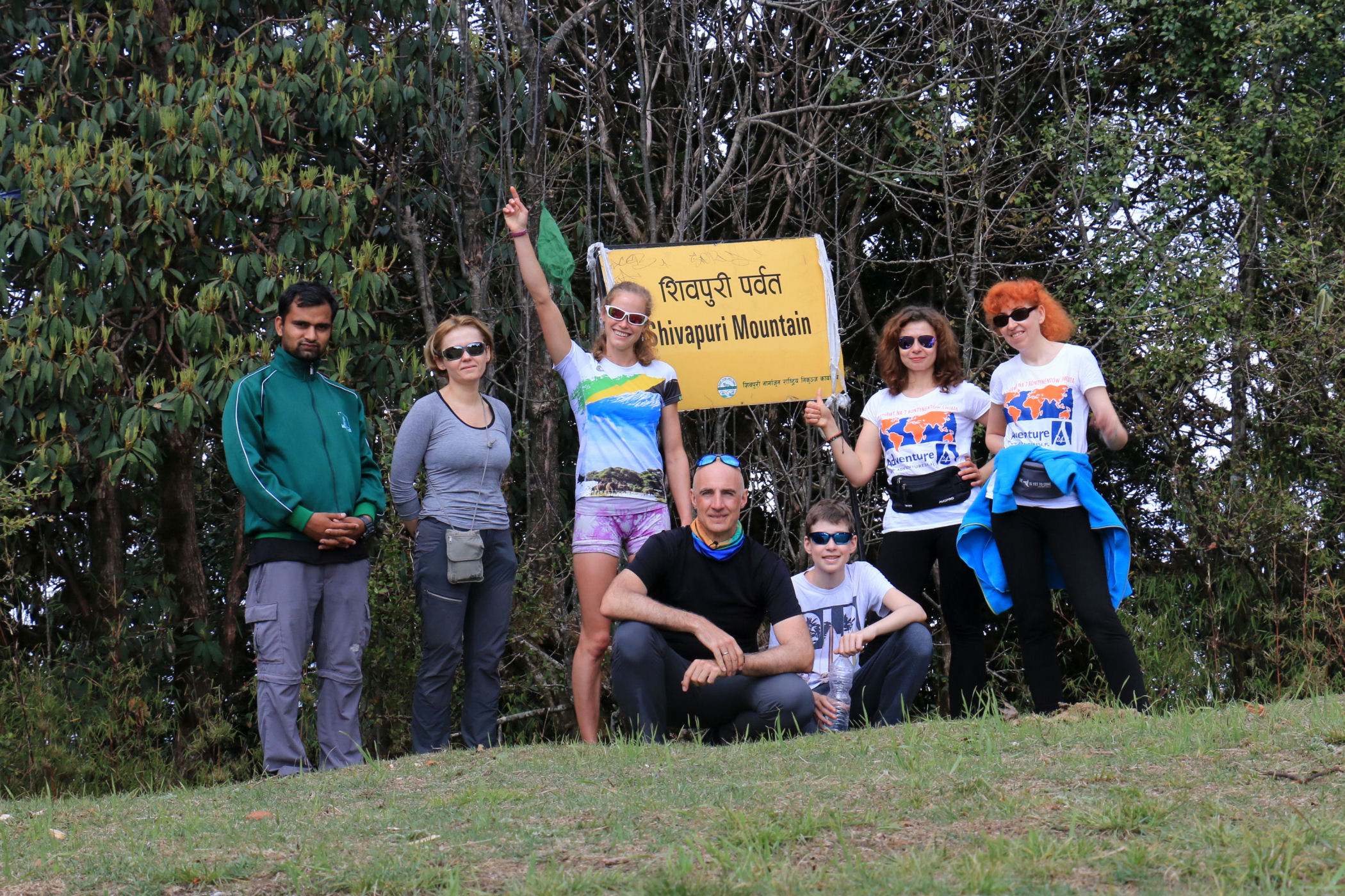 Po prawie 3,5 godzinnej mozolnej wspinaczce docieramy na szczyt. Ten jest mocno rozczarowujący, bo drzewa zasłaniają widoki z każdej strony. To jednak bardzo ważne , wręcz święte miejsce dla wyznawców hinduizmu. Na szczycie bowiem przez 25 lat przebywał sam Śivapuri Baba (stąd nazwa szczytu i całego parku) urodzony w 1826 roku. Shivapuri Baba był hinduskim świętym, pustelnikiem i podróżnikiem, który nauczał starożytnego systemu życia. Według wierzeń i podań miejscowych żył 137 lat. Shivapuri jest opisane jako „pomyślne miejsce Pana Śiwy wypełnione Shivalingamami”.