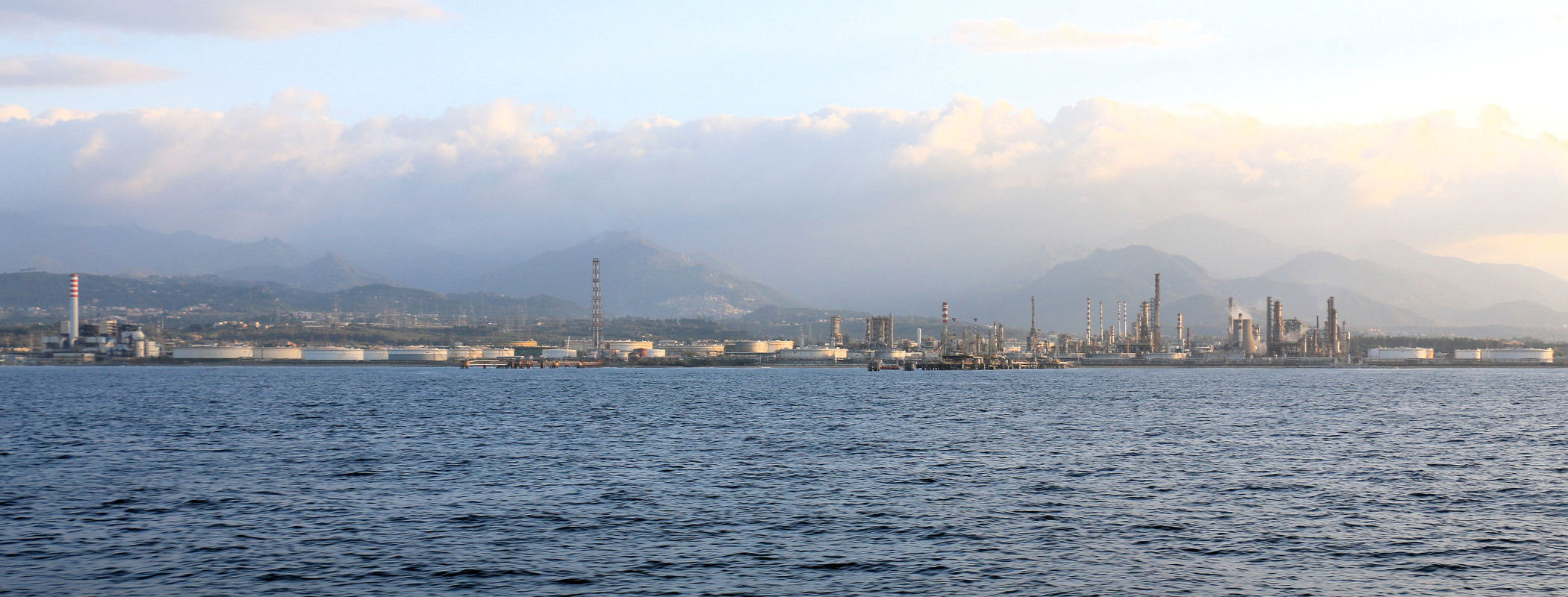 Rafineria San Filippo del Mela to ogromny przemysłowy obiekt. Ciągnie się wzdłuż północnego wybrzeża (na zachód od miasta) i nie sposób jej nie zauważyć. Wpisała się niejako w panoramę zatoki .Wysokie kominy na tle jeszcze wyższych gór wyglądają dość ciekawie.