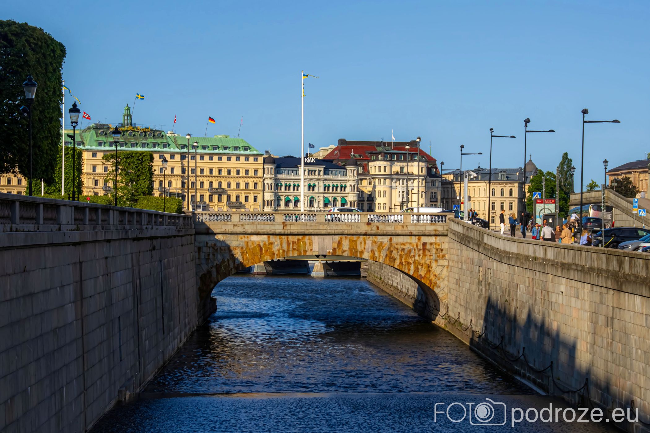 - Skeppsbron – most przy południowym nabrzeżu, częściej traktowany jako deptak nad wodą.