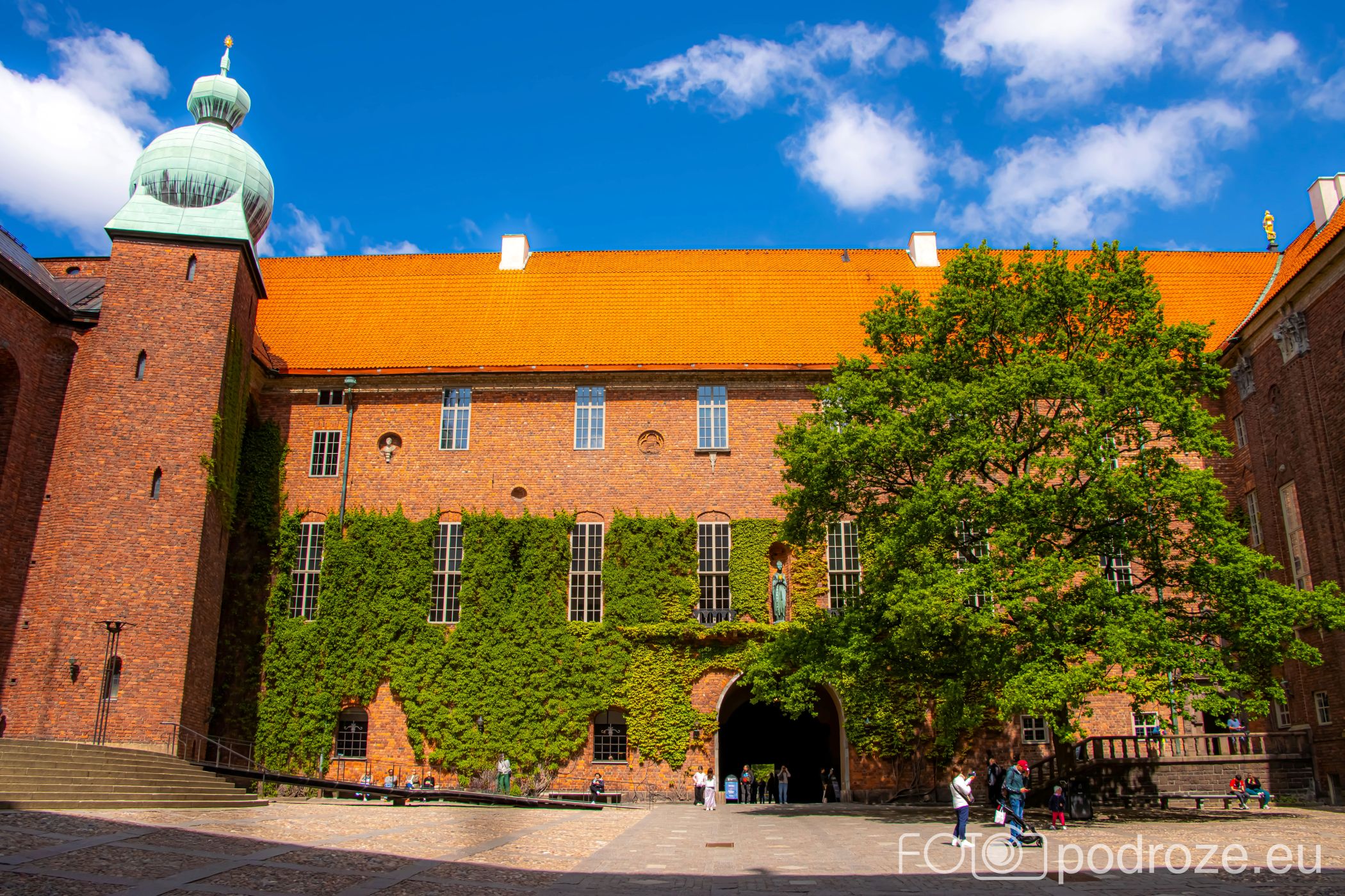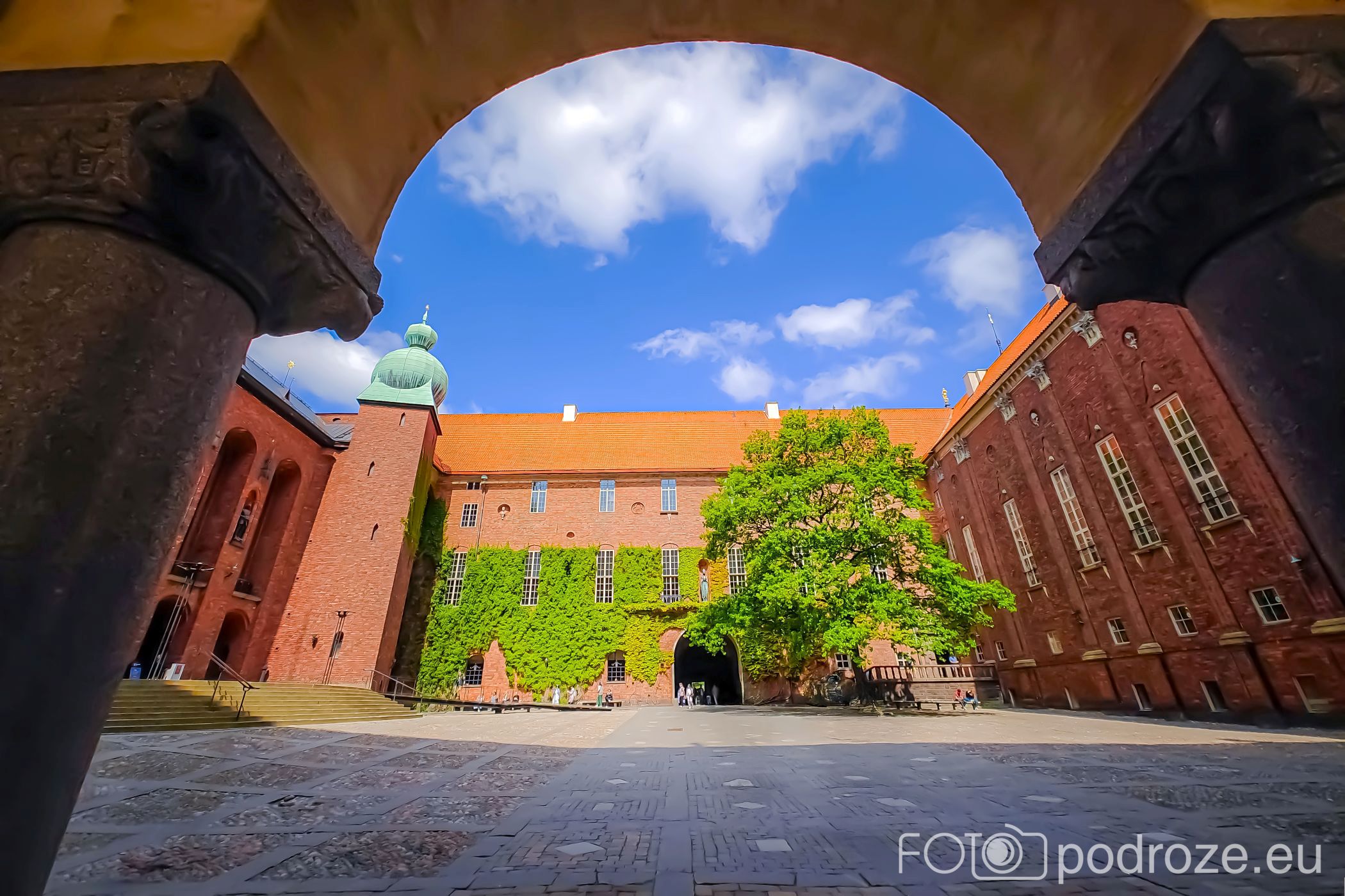 Dziedziniec wewnętrzny zaprojektowany był przez Ragnar Östberg otoczony ceglaną zabudową i eleganckimi arkadami, dziedziniec przypomina włoskie place miejskie. Surowość czerwonej cegły kontrastuje tu z detalami architektonicznymi, tworząc jednocześnie monumentalną i przyjazną przestrzeń. To miejsce pełni funkcję reprezentacyjną, odbywają się tu różnego rodzaju wydarzenia, uroczystości oraz spotkania. Jednocześnie jest to przestrzeń dostępna dla zwiedzających, którzy mogą spokojnie zatrzymać się, odpocząć i podziwiać architekturę budynku z bliska.