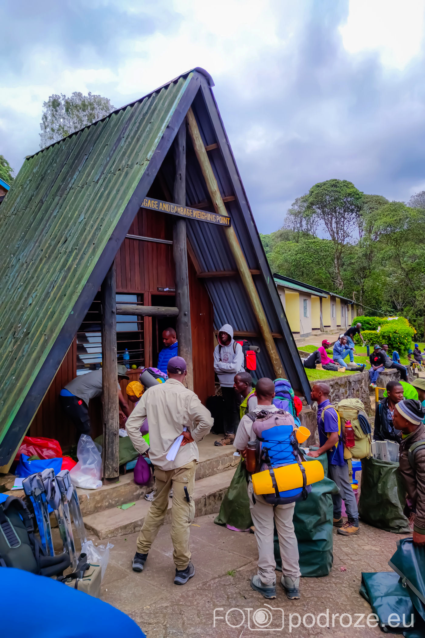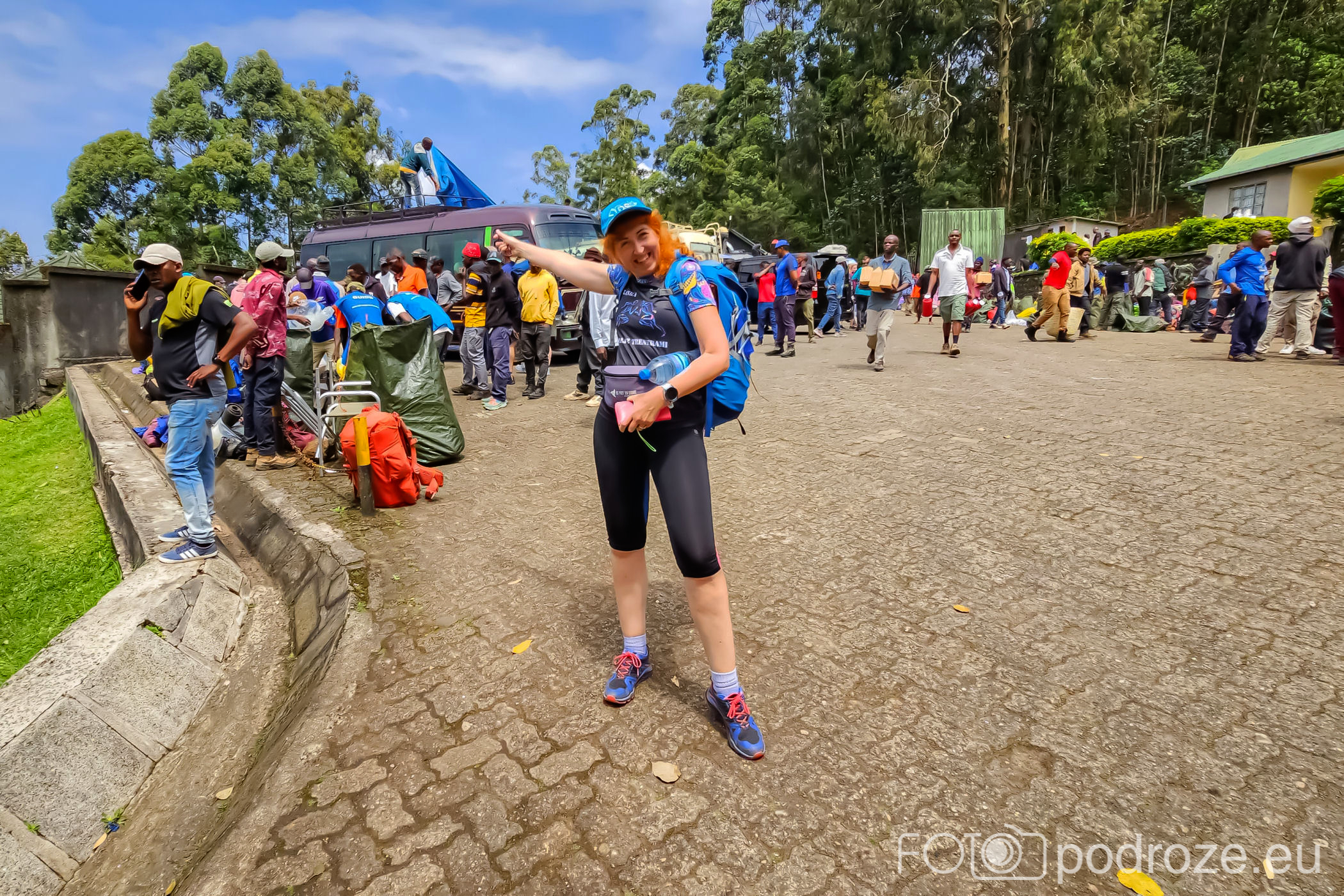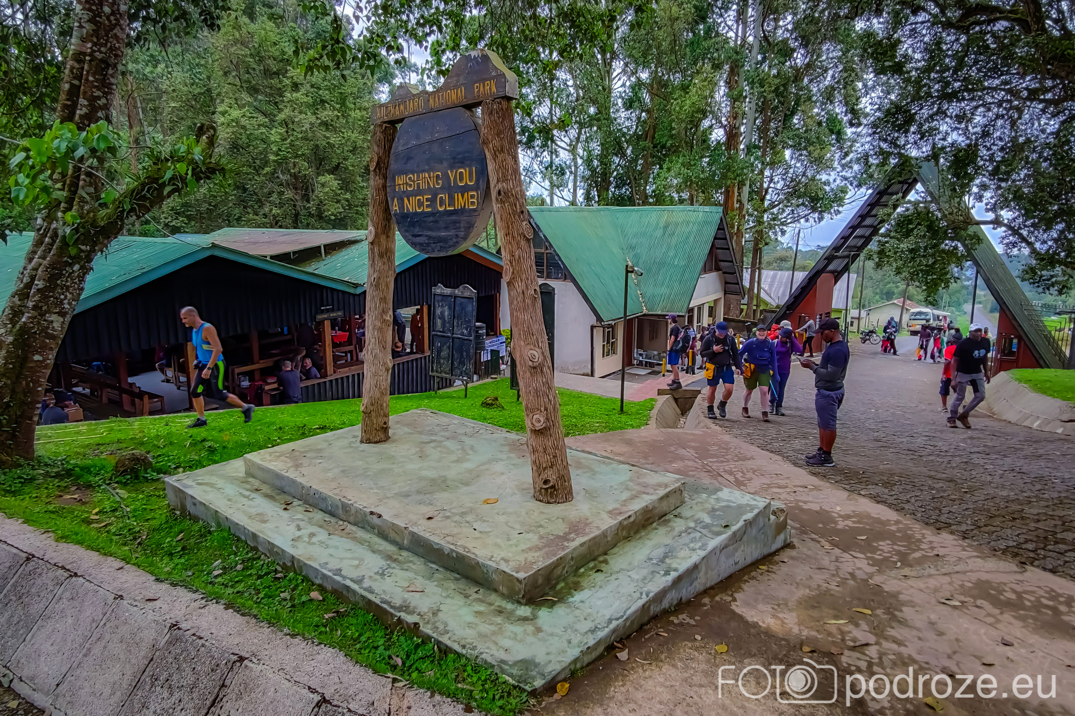 Do Machame Gate, czyli bramy Parku Narodowego Kilimandżaro jedziemy już teraz około 45 minut. Za charakterystyczną drewnianą bramą duży parking, na nim kilkanaście załadowanych busów i setki oczekujących na swoje grupy porterów i przewodników.