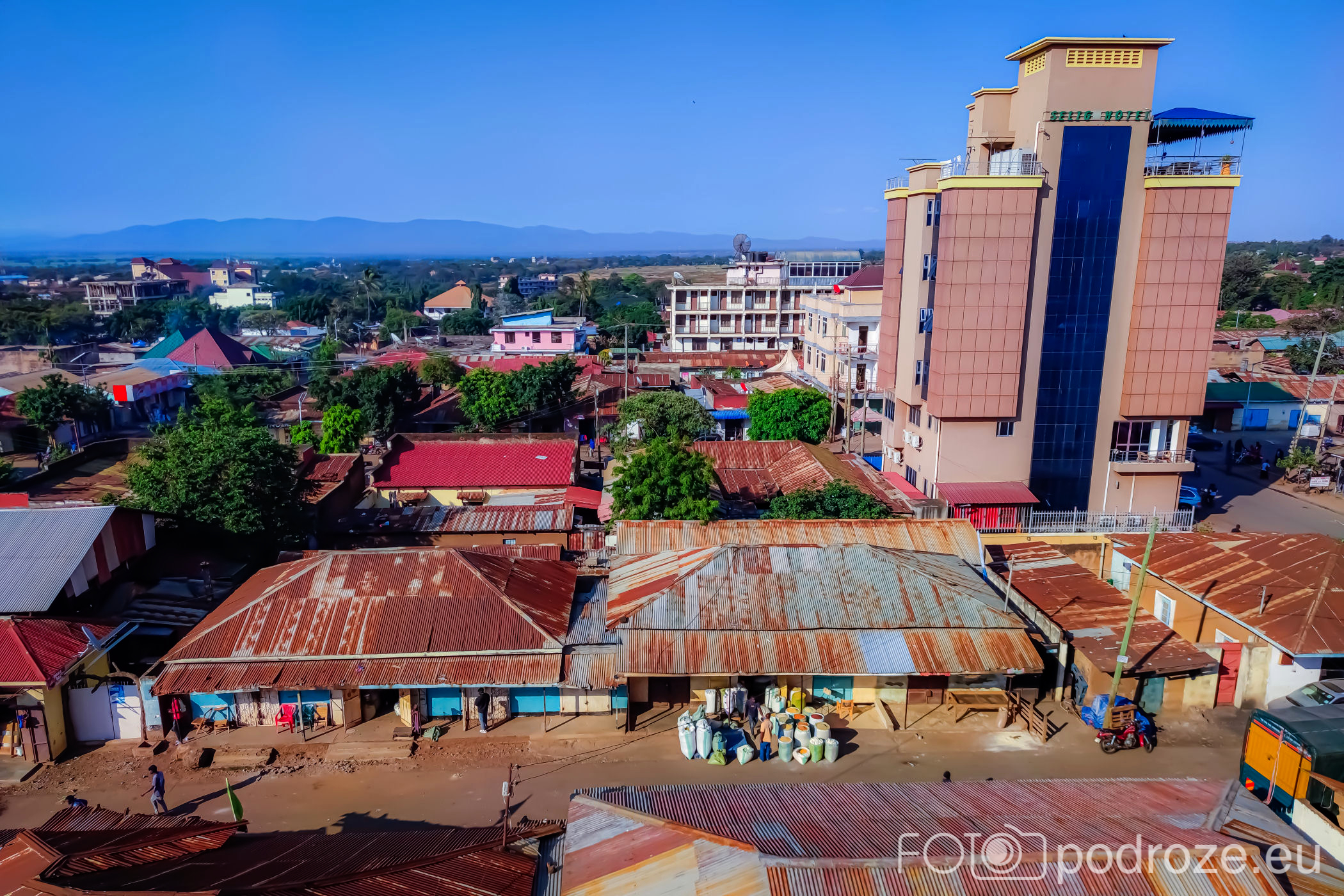 Za nami pierwsza noc w Tanzanii. Noc w eleganckim, czystym hotelu z łóżkiem i ciepłym prysznicem trudno uznać za „wyzwanie”. I tylko widoki za oknem przypominają gdzie jesteśmy. Noc skończyła się co prawda szybko, czyli koło 5 rano, bo najbliższy meczet wezwał na modły tak głośno, że nawet stopery w uszach nie pomogły. Godzinę później już szliśmy na śniadanie więc nie było tak źle.