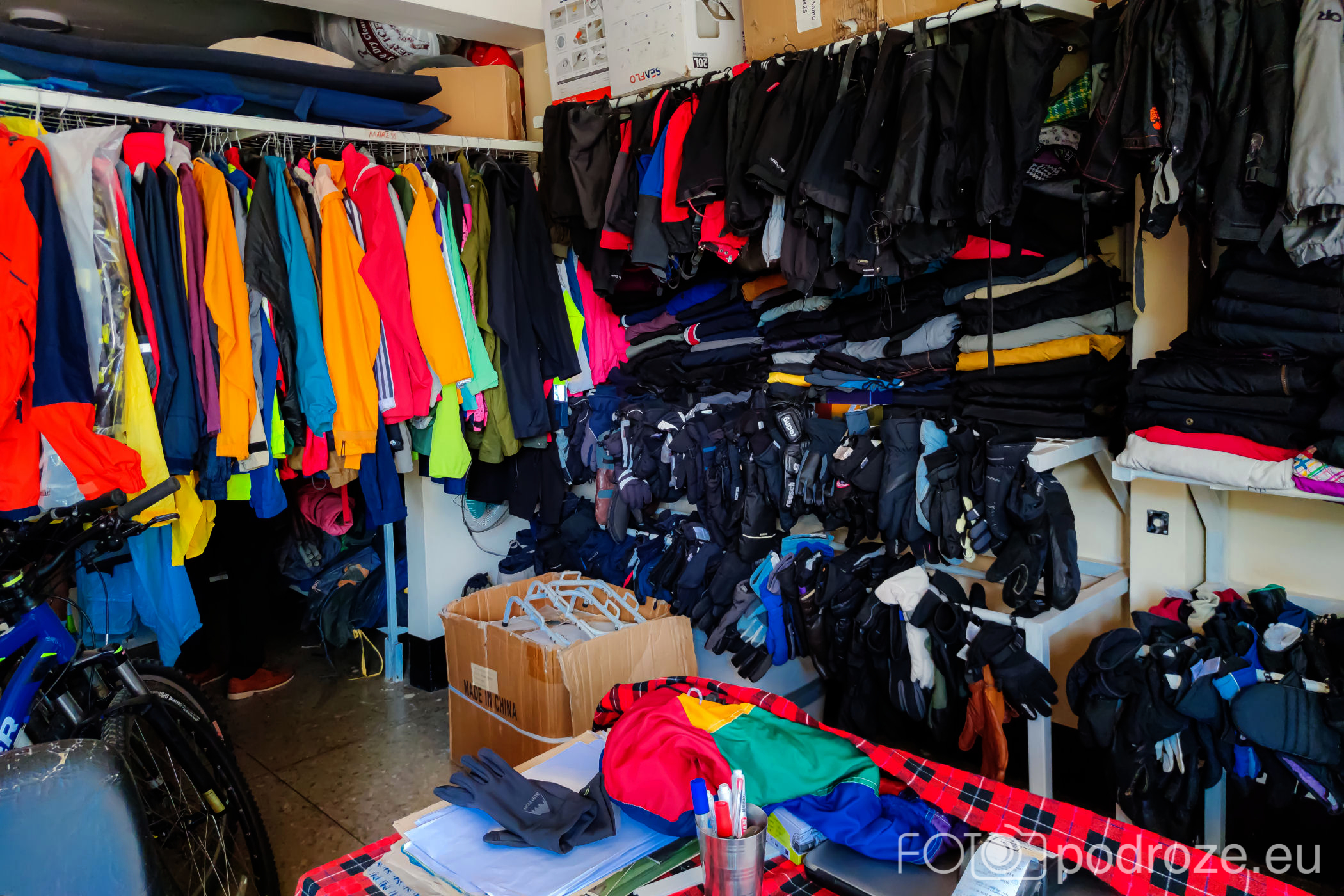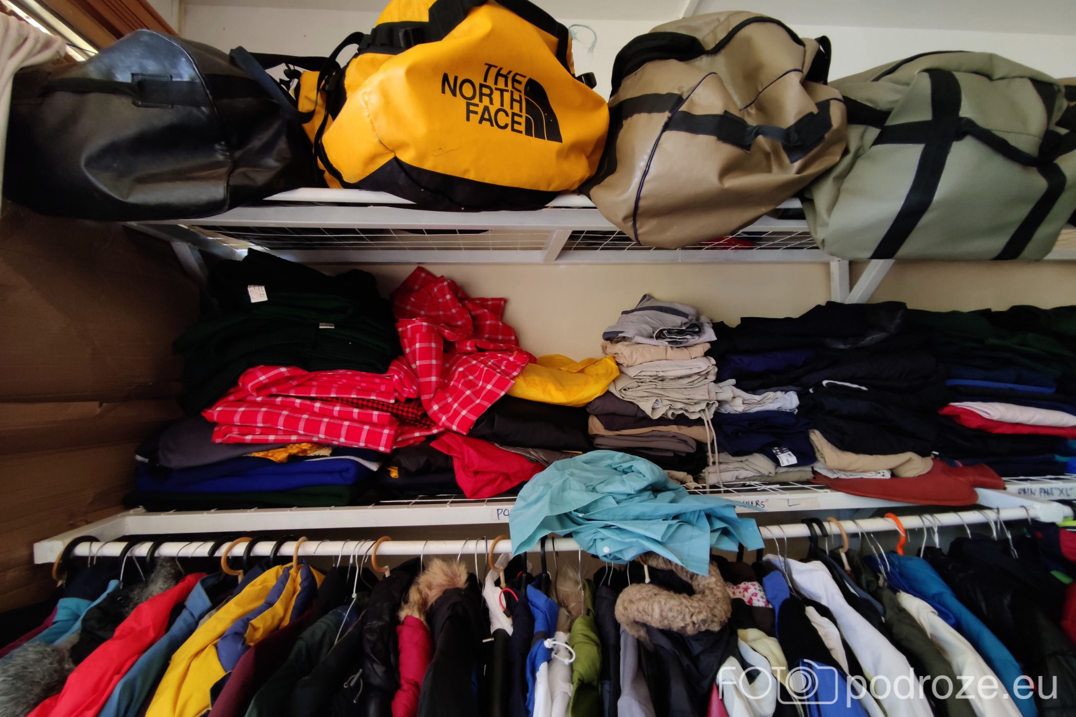 Teraz wypożyczalnia … Wczoraj po przylocie okazało się, że niestety 5 osób zostało bez swoich bagaży, bo zwyczajnie nie doleciały. My nauczeni złym doświadczeniem wcisnęliśmy do naszych podręcznych plecaków najcieplejsze rzeczy i śpiwory, ale pozostali niestety tego nie zrobili. Organizacja wypraw na Kilimandżaro jest tu już jednak dopracowana do perfekcji i kiedy zdarzy się taka pechowa okoliczność, są tu ogromne wypożyczalnie sprzętu i ubrań. Za kwotę maksymalnie 100$ można pożyczyć dokładnie wszystko, bez czego zdobycie szczytu byłoby niemożliwe. Zachodzę do środka tylko na moment, żeby zrobić dla Was te kilka zdjęć jako ciekawostkę. Potem już na zewnątrz czekamy na naszą 5 pechowców.