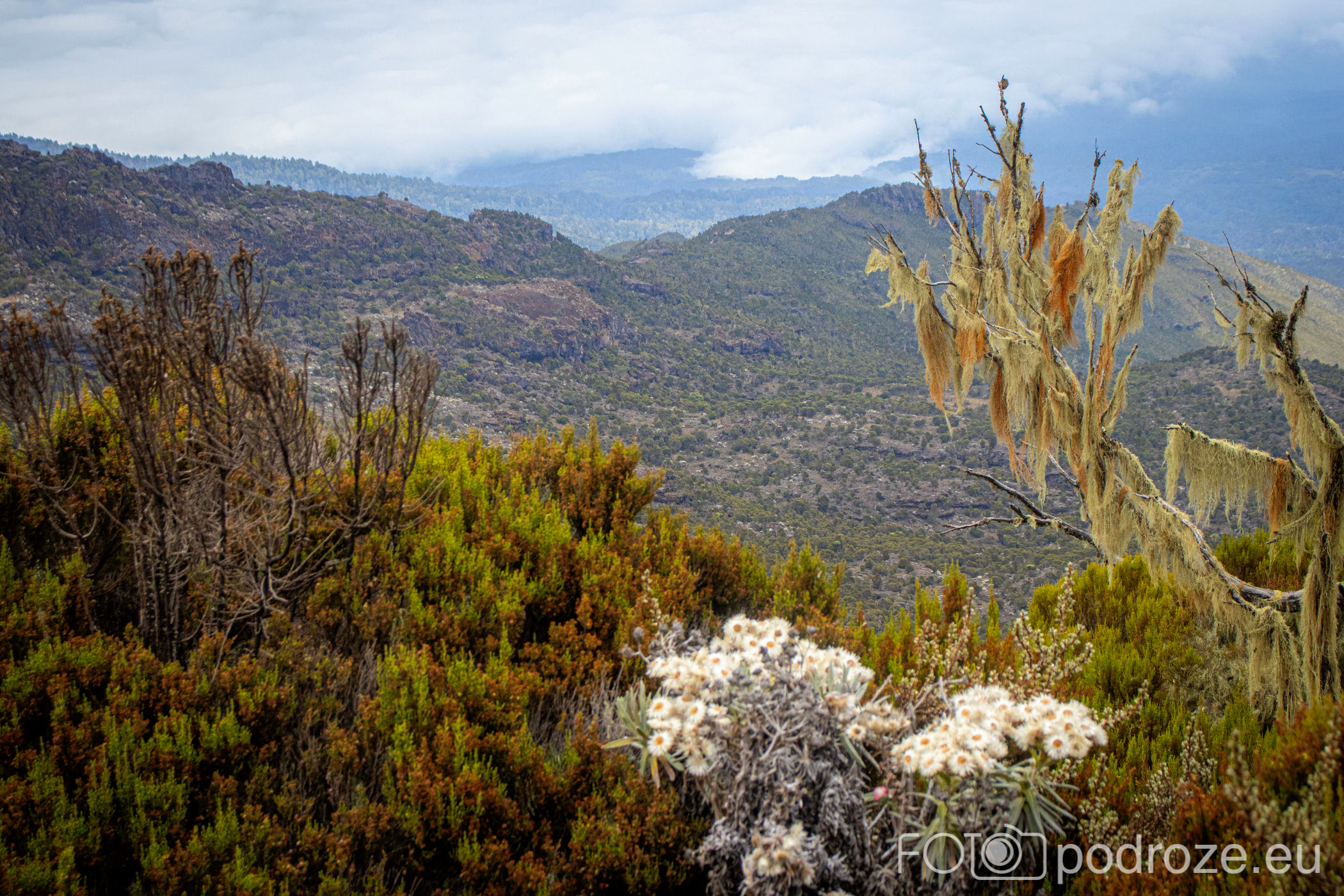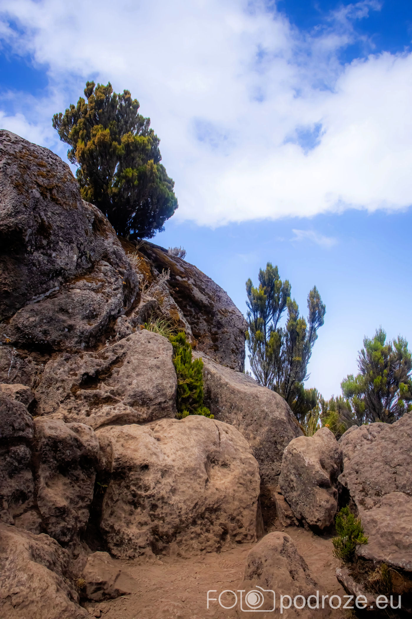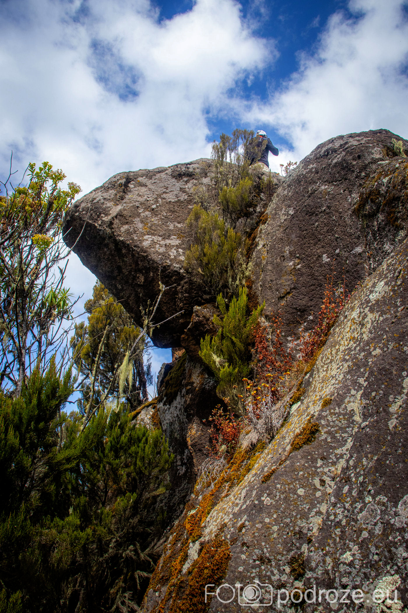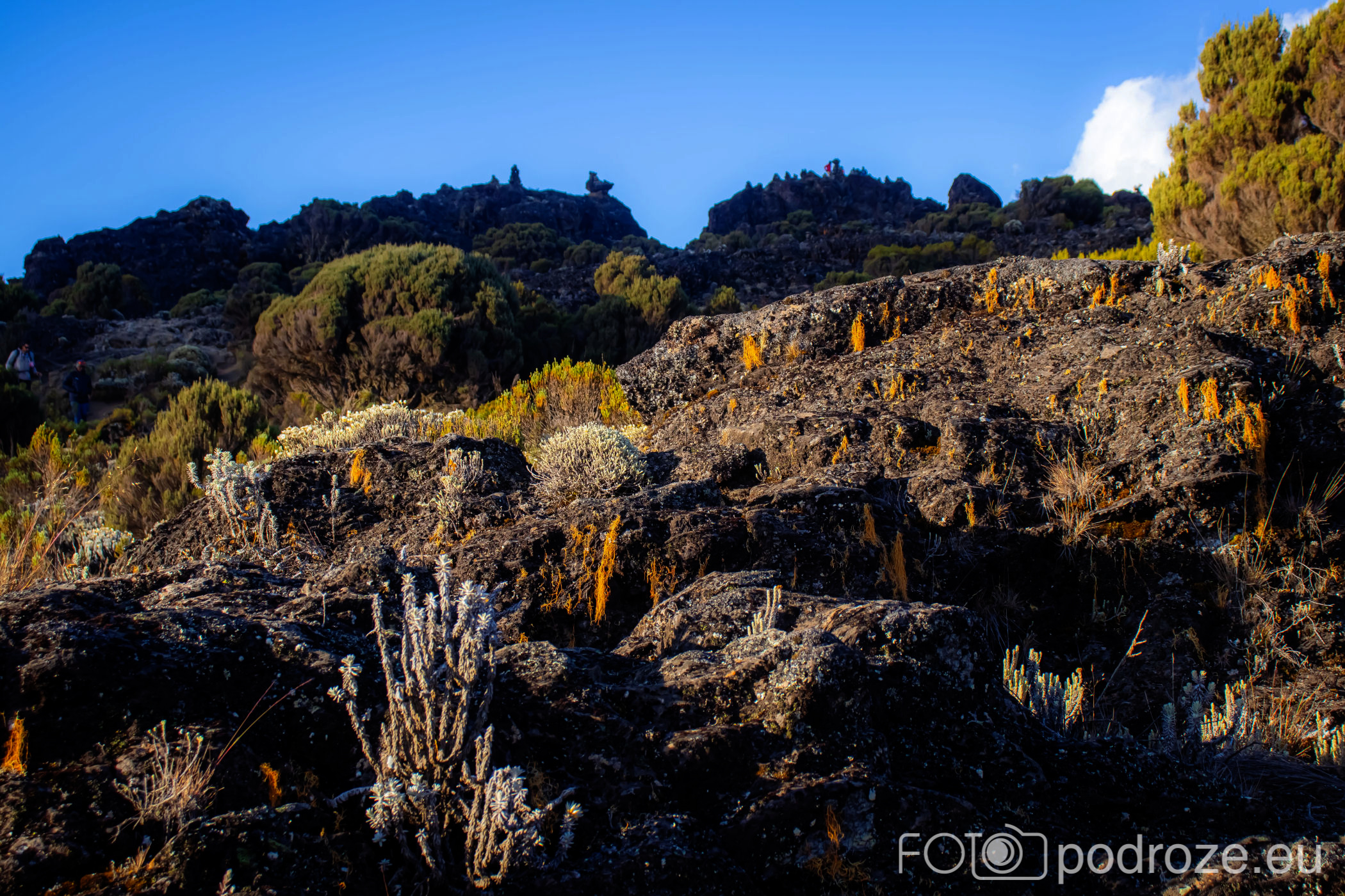 Przed nami kolejne skałki i widoki, dzisiejsza trasa widokowo nas rozpieszcza. Wokół mnóstwo ciekawej roślinności jakiej nie widzieliśmy nigdzie indziej. Pewne gatunki są tu faktycznie endemiczne i występują tylko w obrębie Kilimandżaro.
