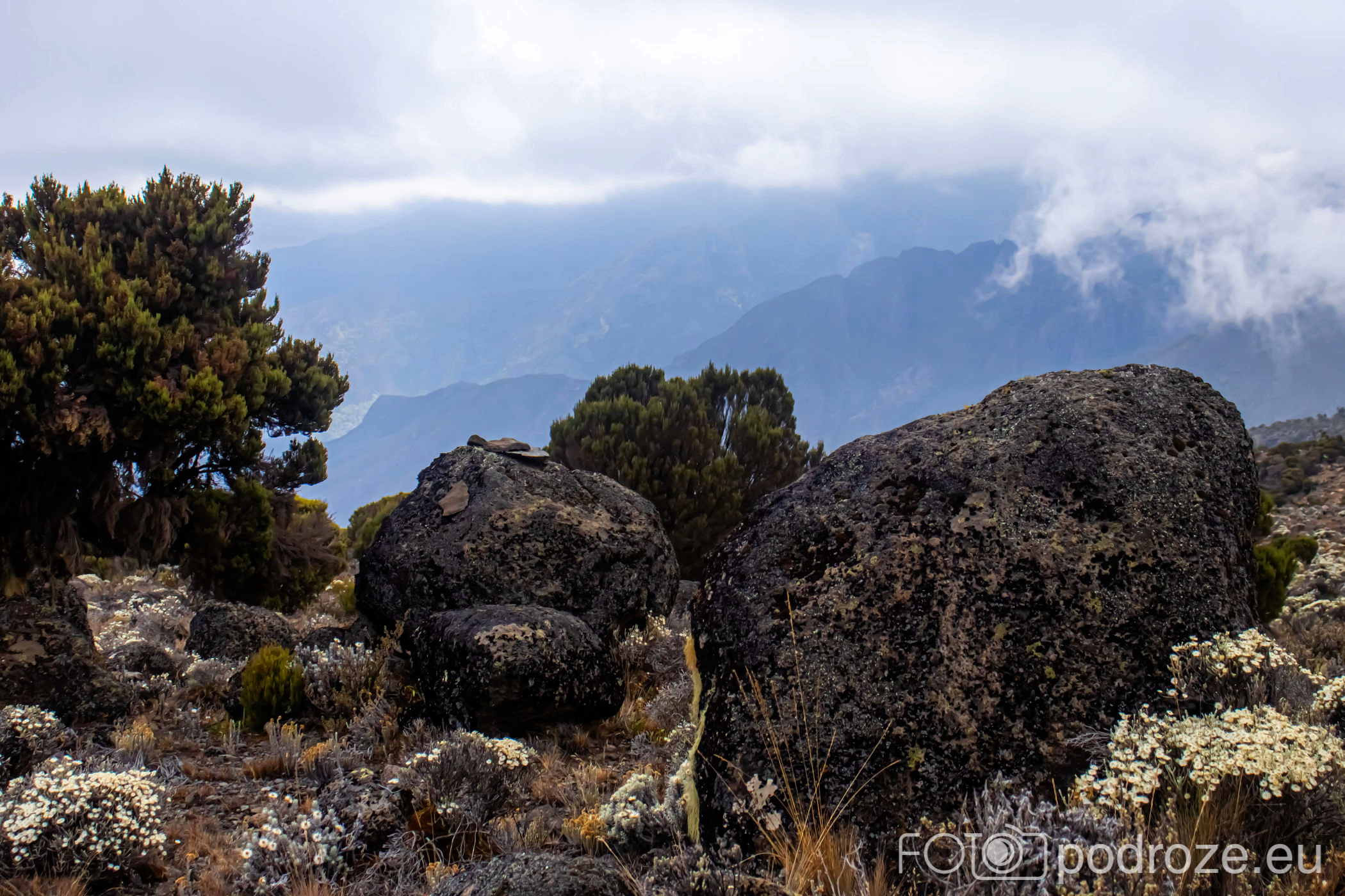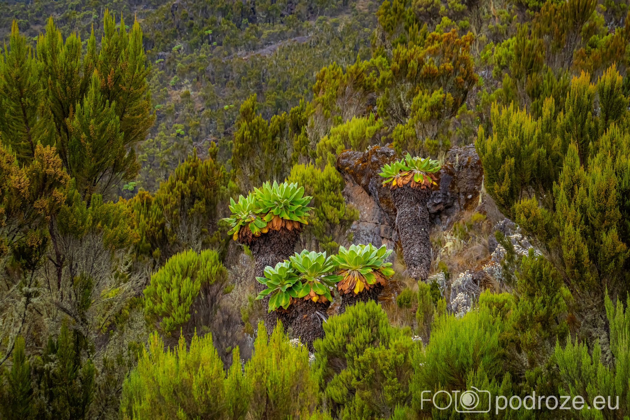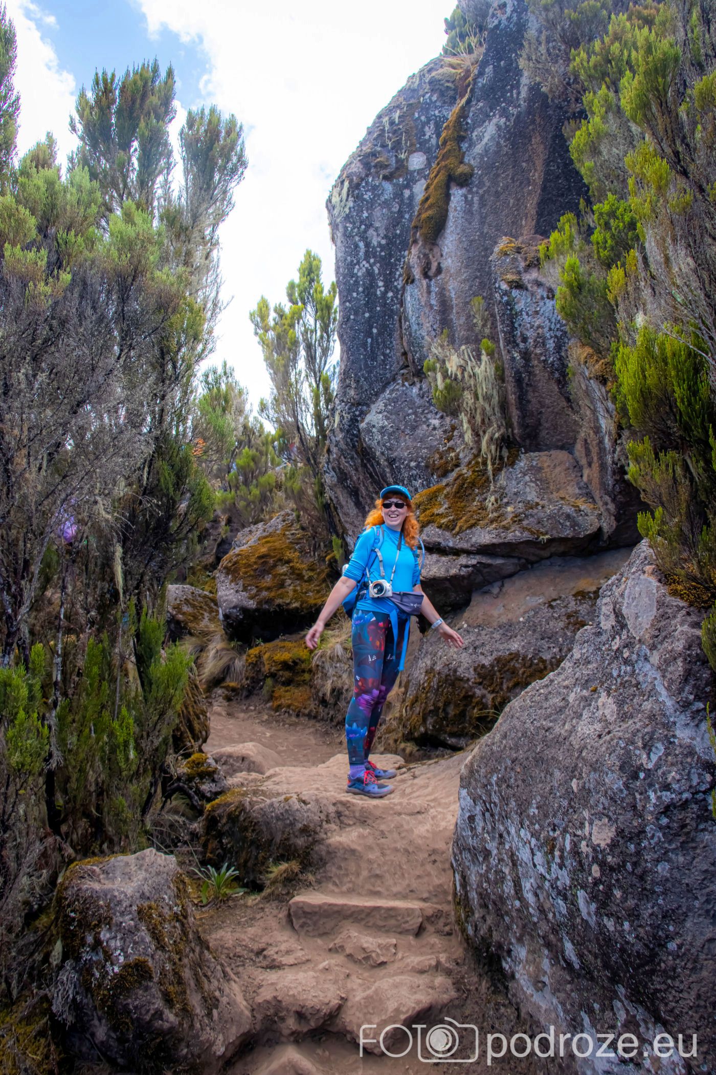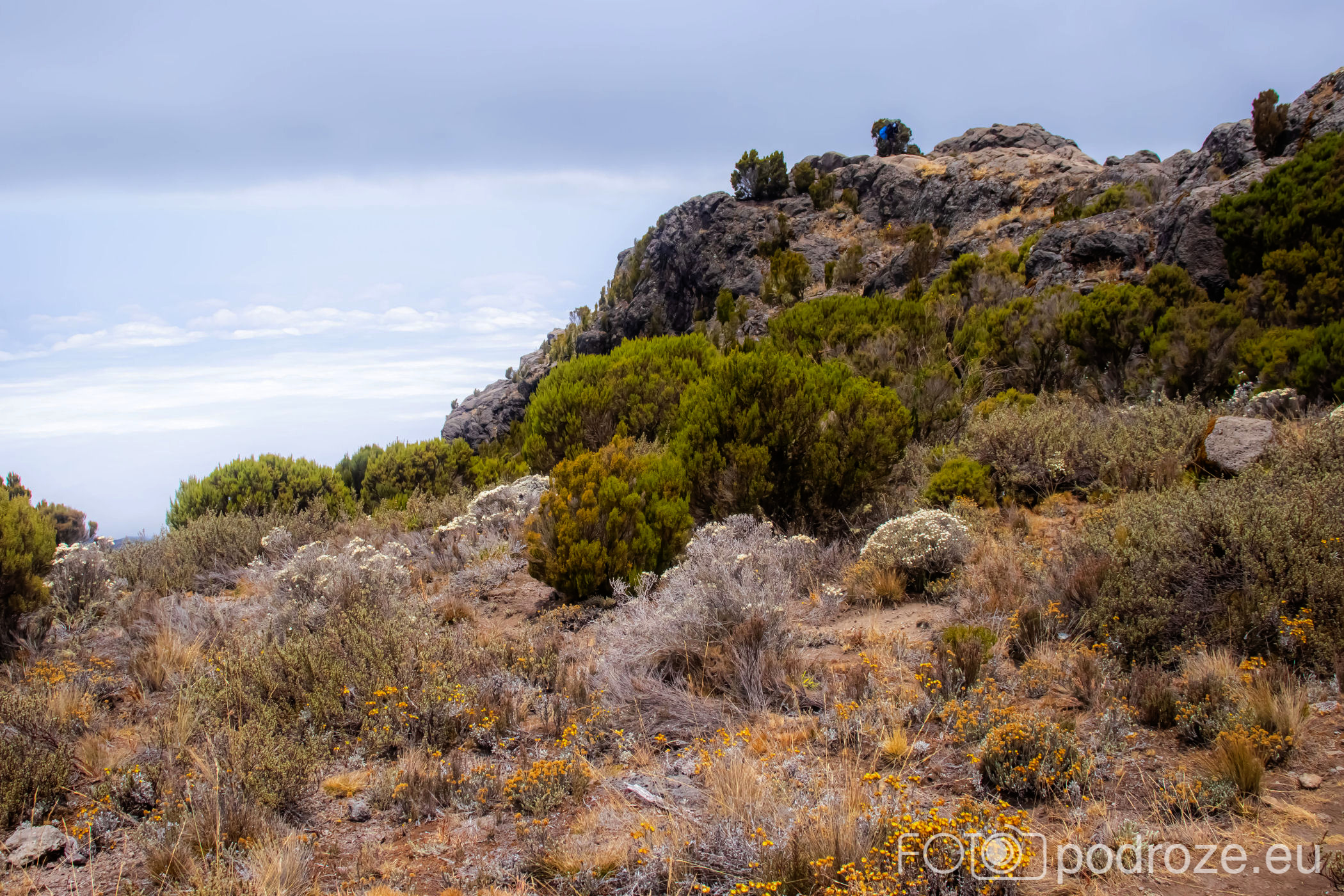 Przed nami kolejne skałki i widoki, dzisiejsza trasa widokowo nas rozpieszcza. Wokół mnóstwo ciekawej roślinności jakiej nie widzieliśmy nigdzie indziej. Pewne gatunki są tu faktycznie endemiczne i występują tylko w obrębie Kilimandżaro.