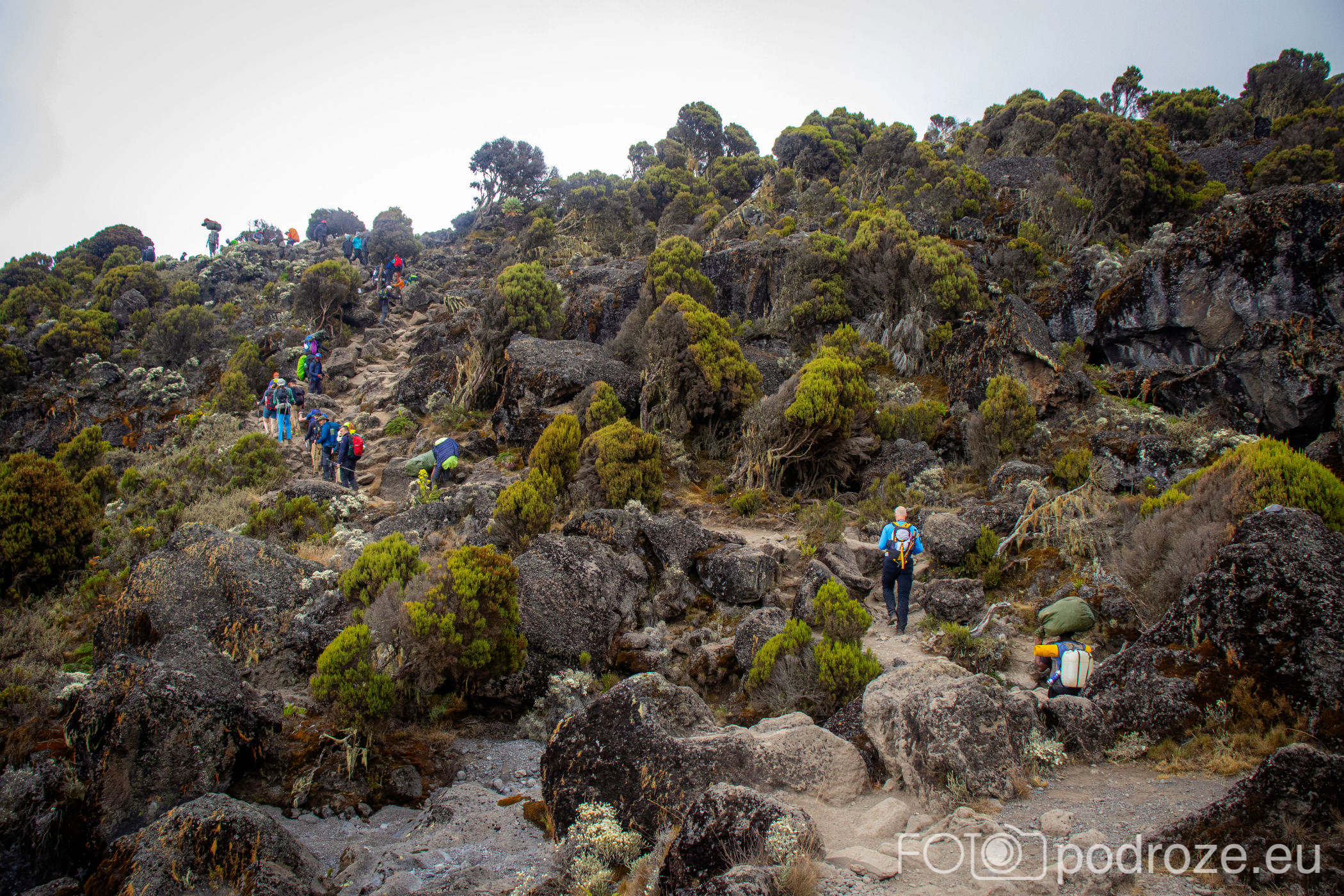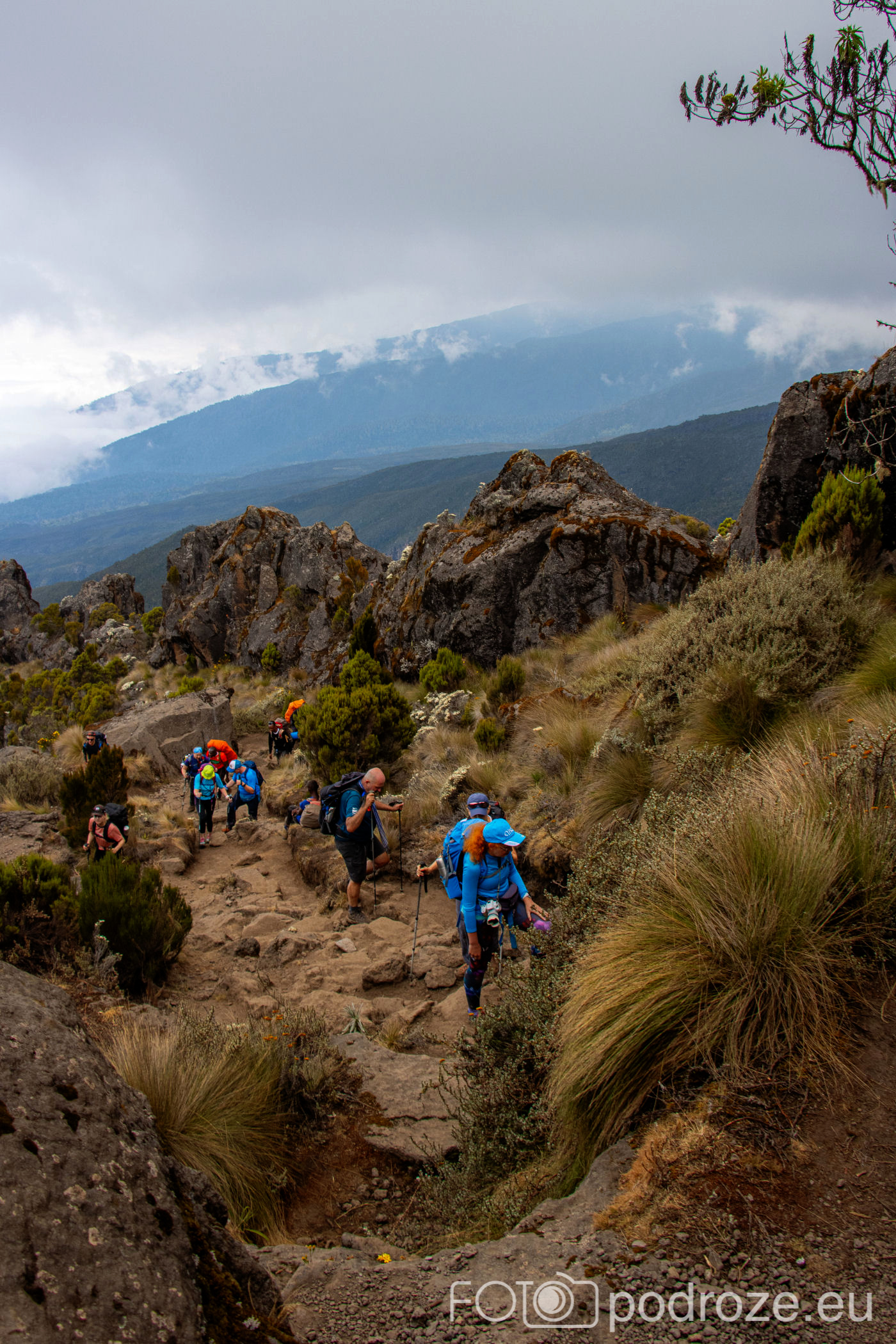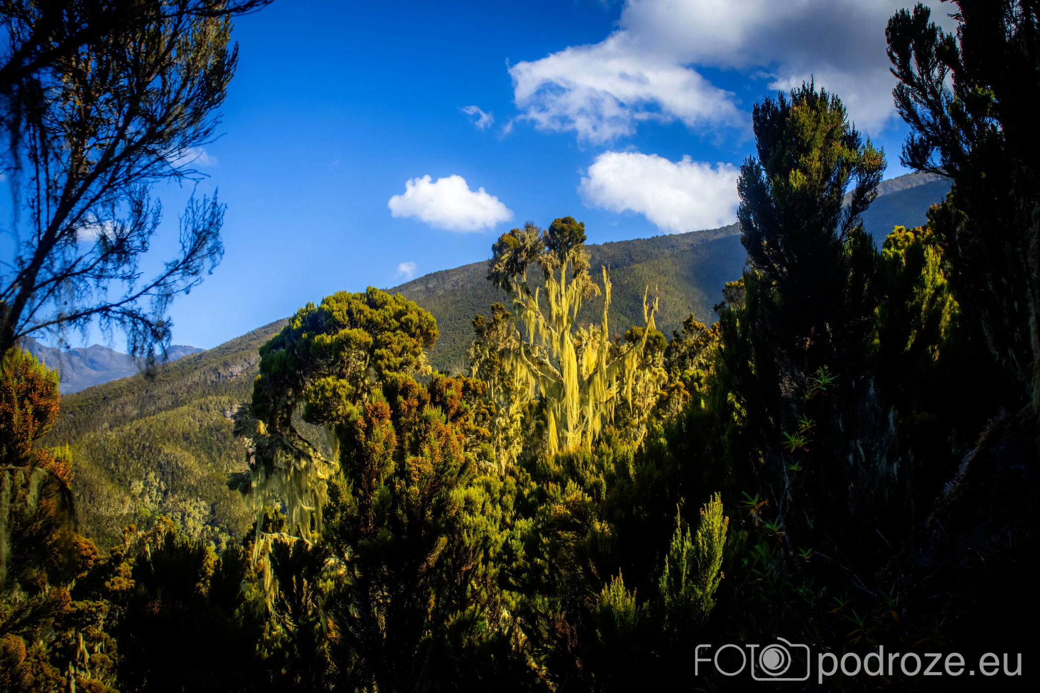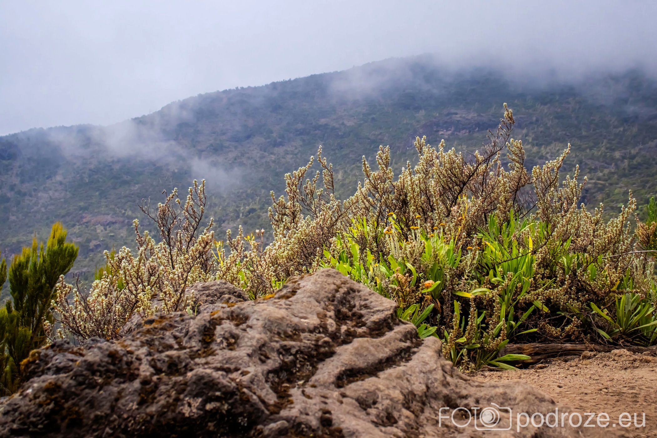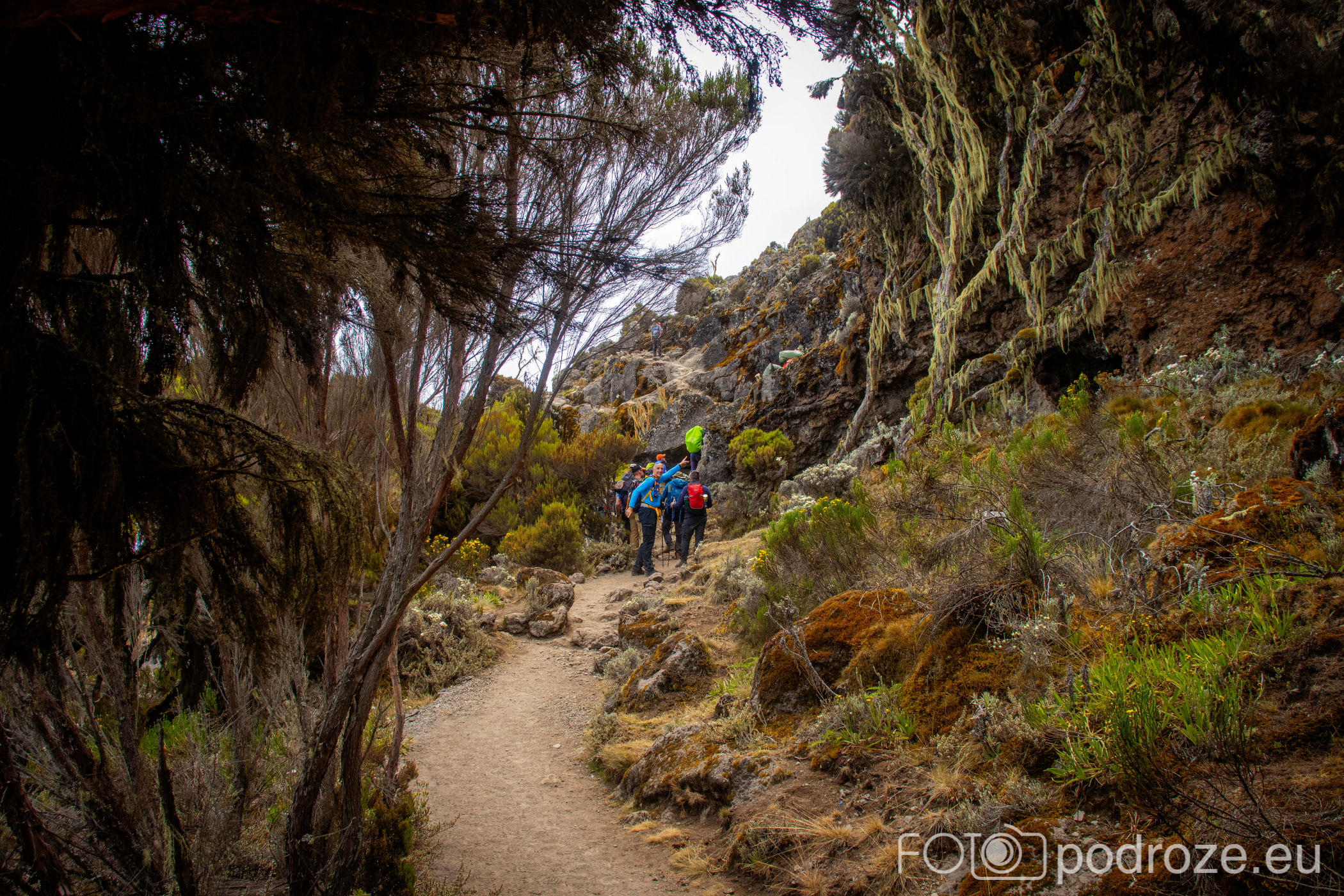 Przed nami kolejne skałki i widoki, dzisiejsza trasa widokowo nas rozpieszcza. Wokół mnóstwo ciekawej roślinności jakiej nie widzieliśmy nigdzie indziej. Pewne gatunki są tu faktycznie endemiczne i występują tylko w obrębie Kilimandżaro.