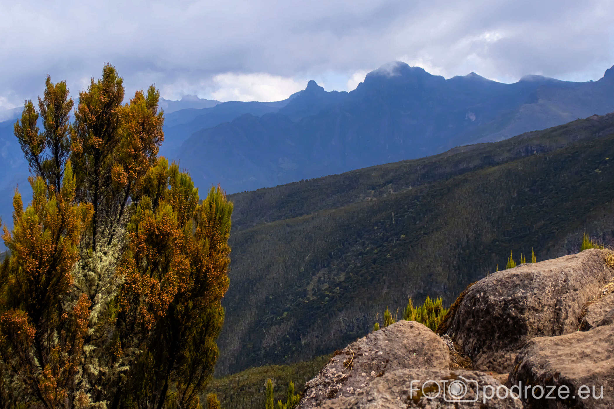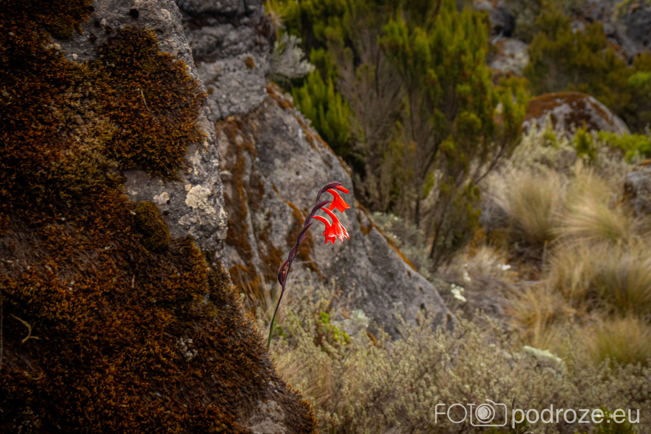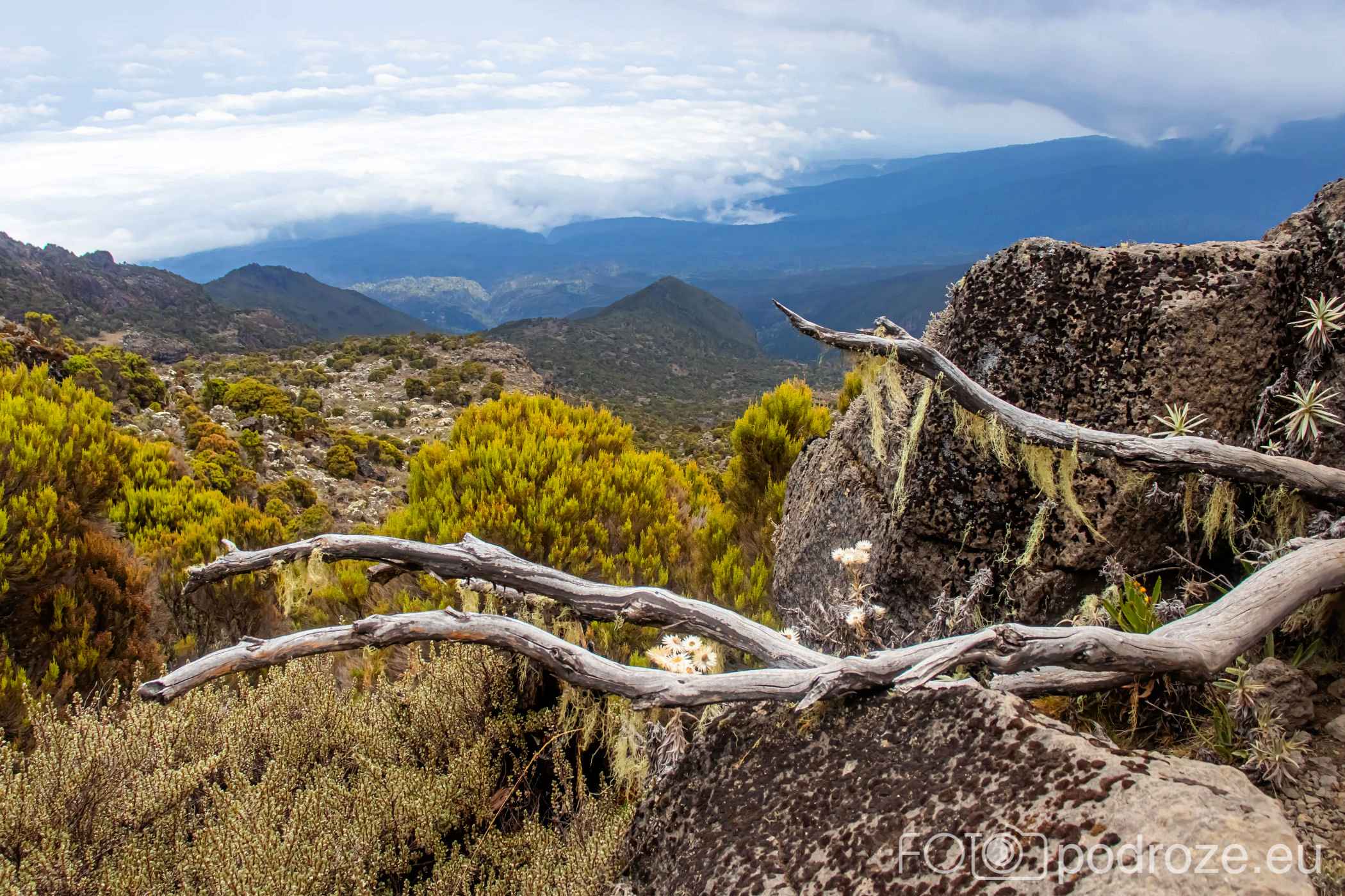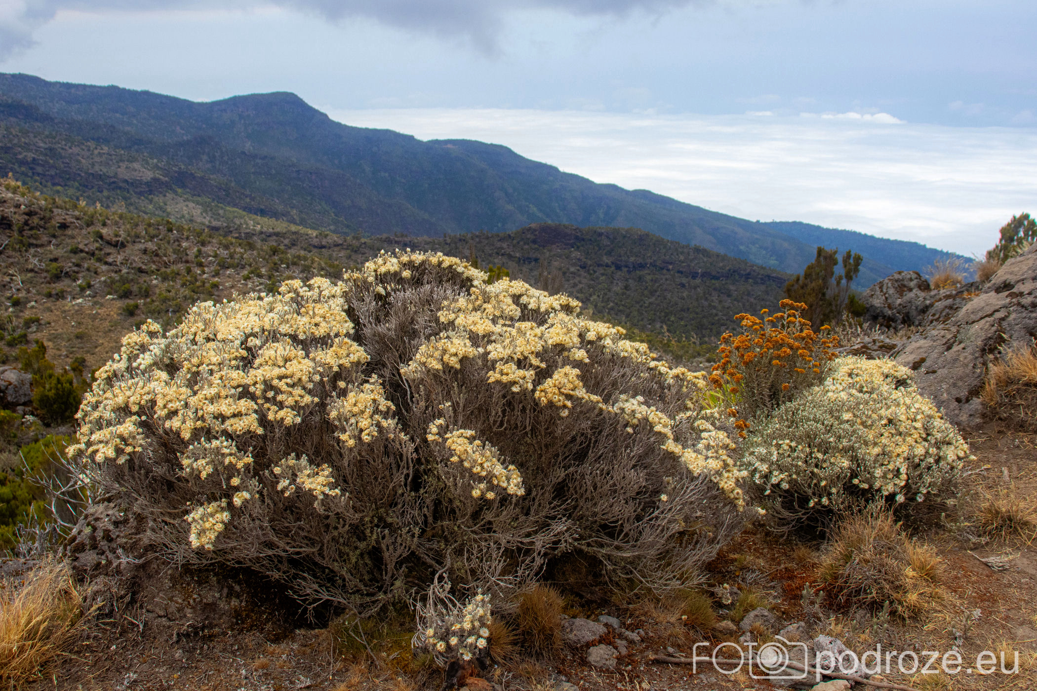 Przed nami kolejne skałki i widoki, dzisiejsza trasa widokowo nas rozpieszcza. Wokół mnóstwo ciekawej roślinności jakiej nie widzieliśmy nigdzie indziej. Pewne gatunki są tu faktycznie endemiczne i występują tylko w obrębie Kilimandżaro.