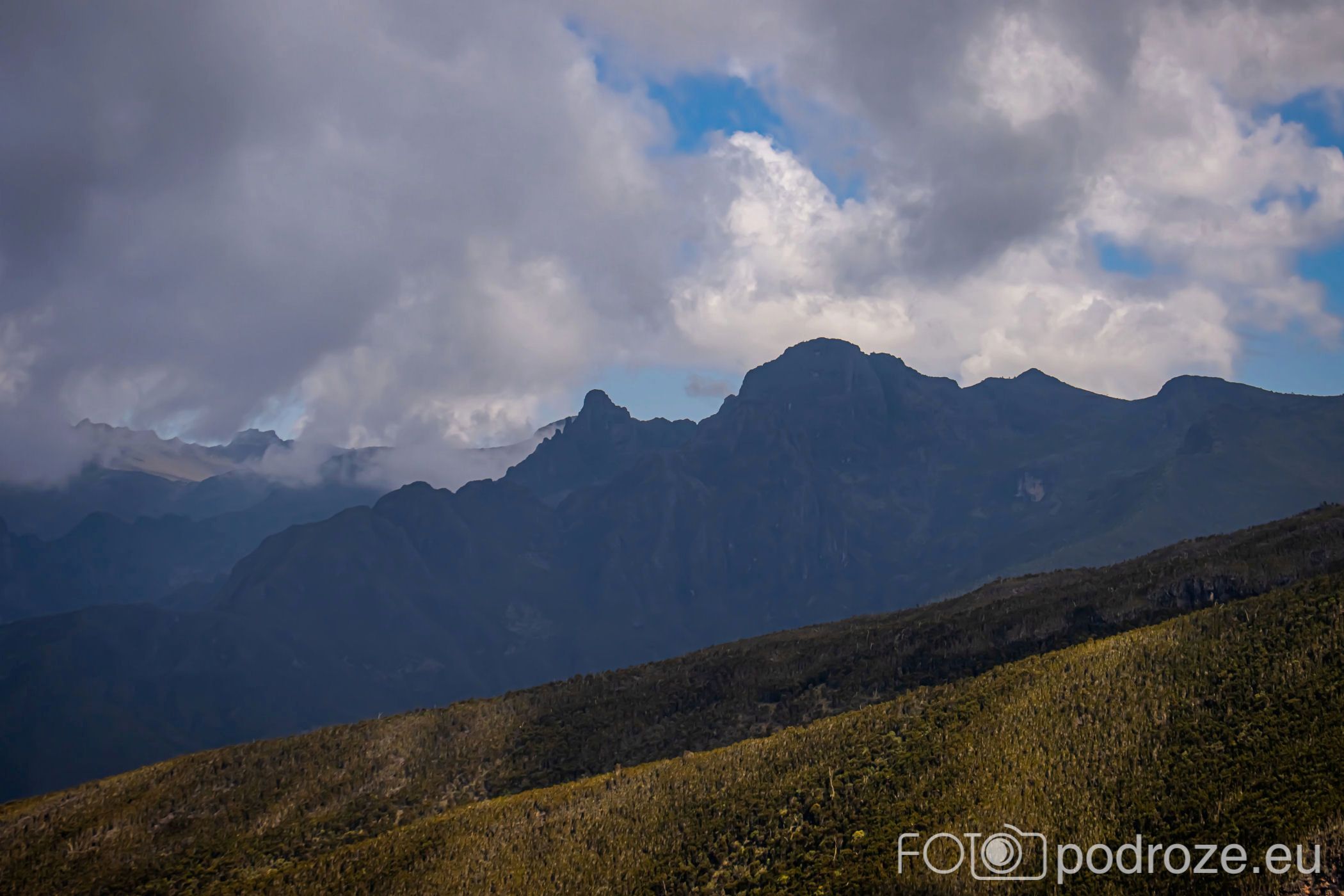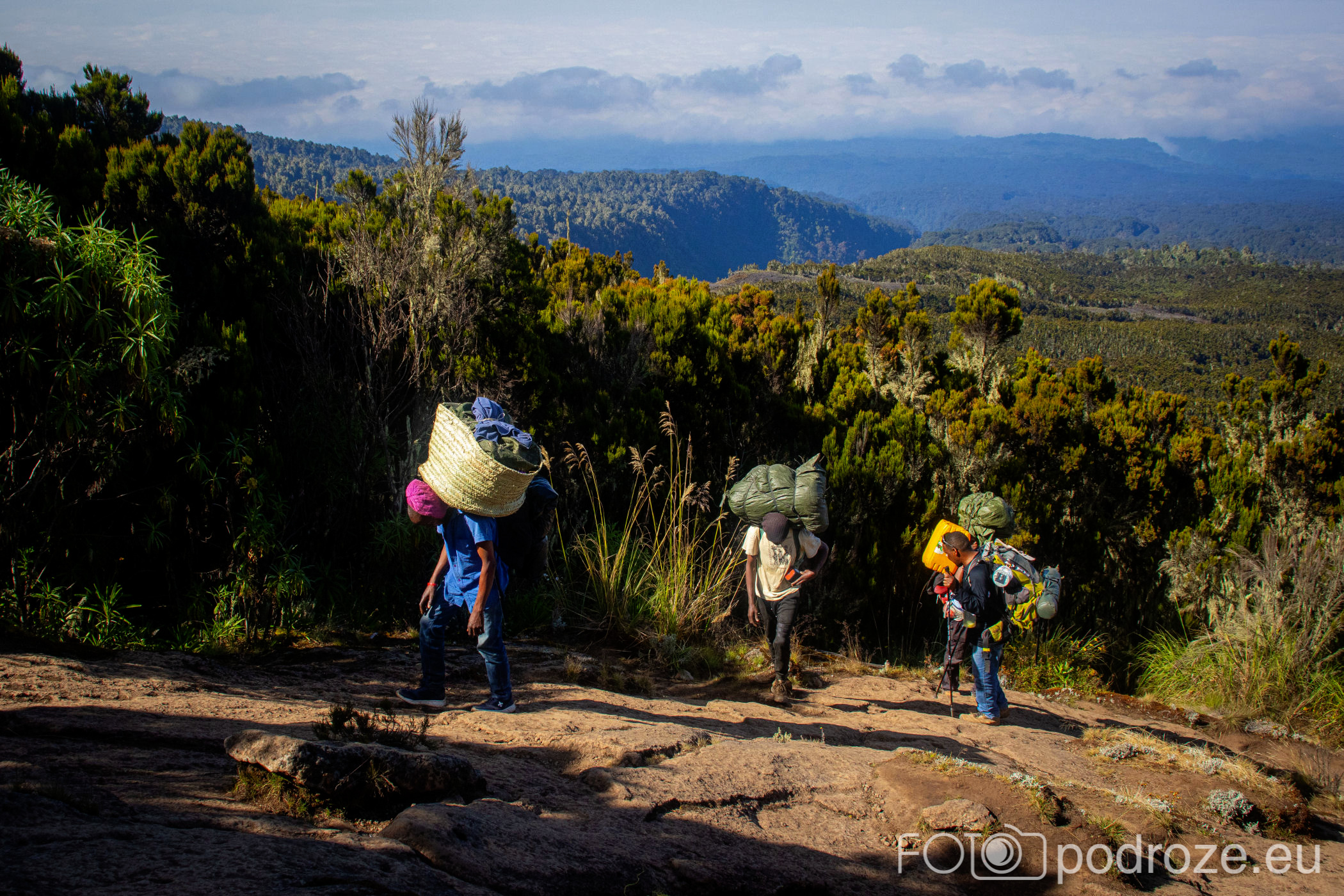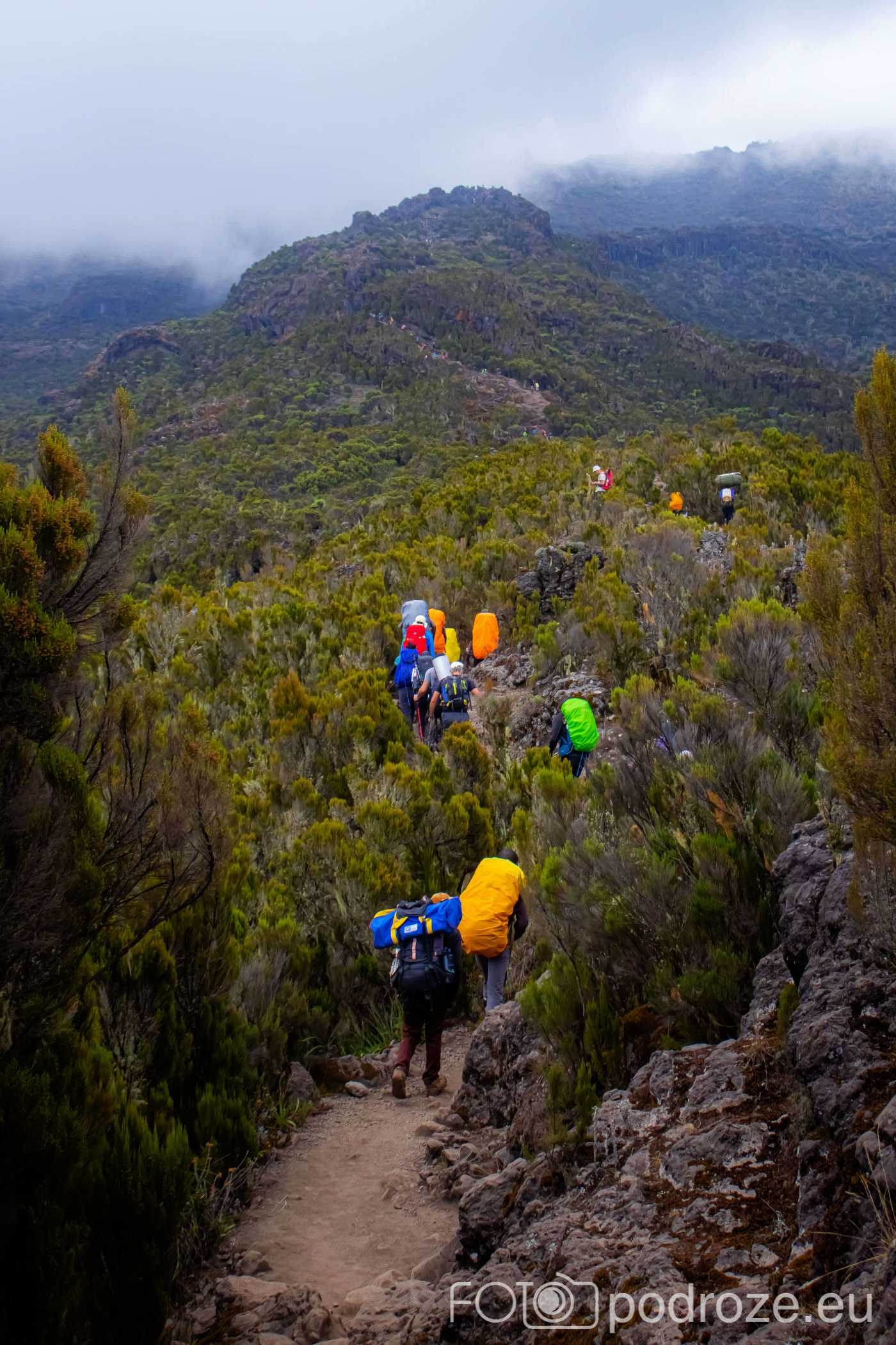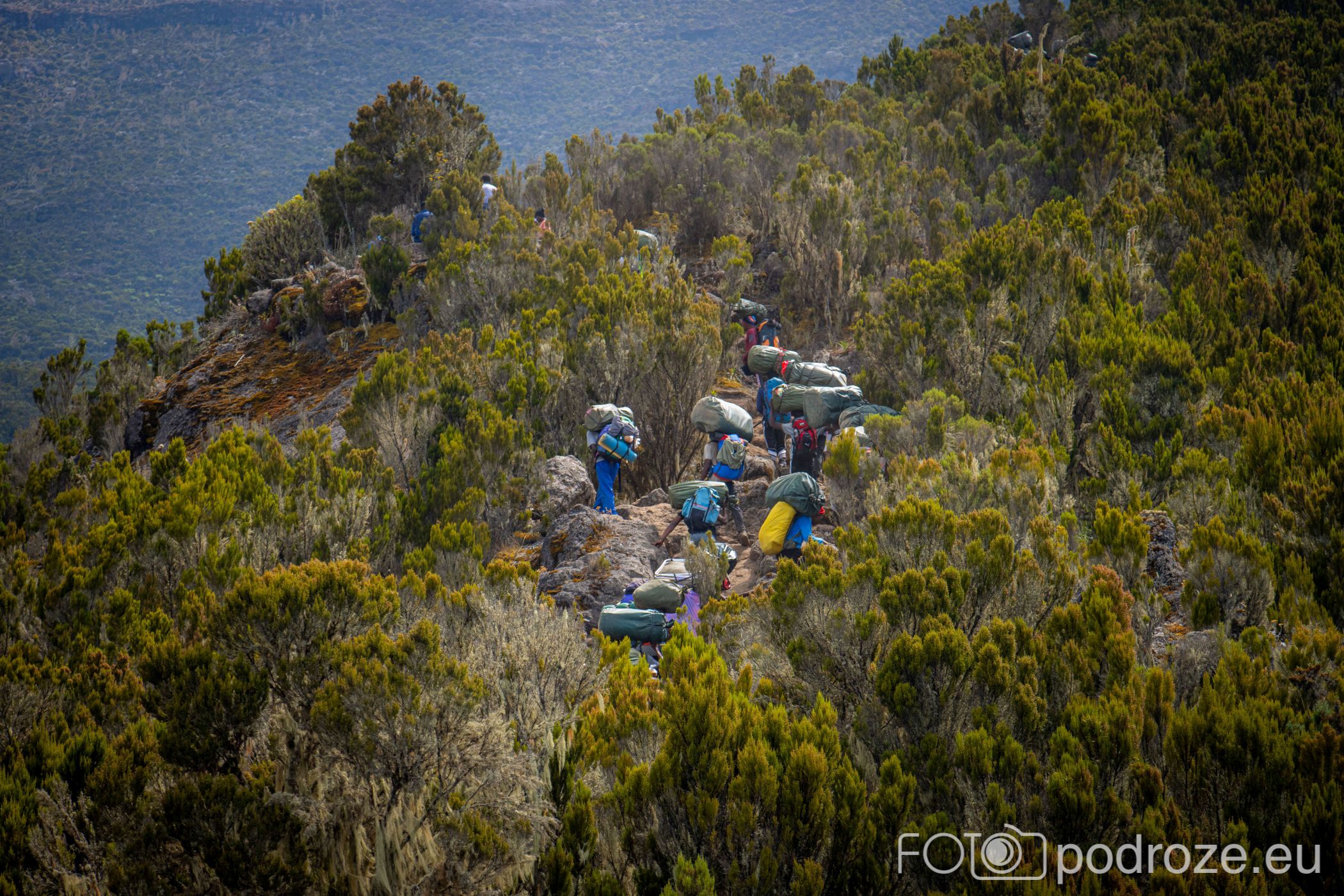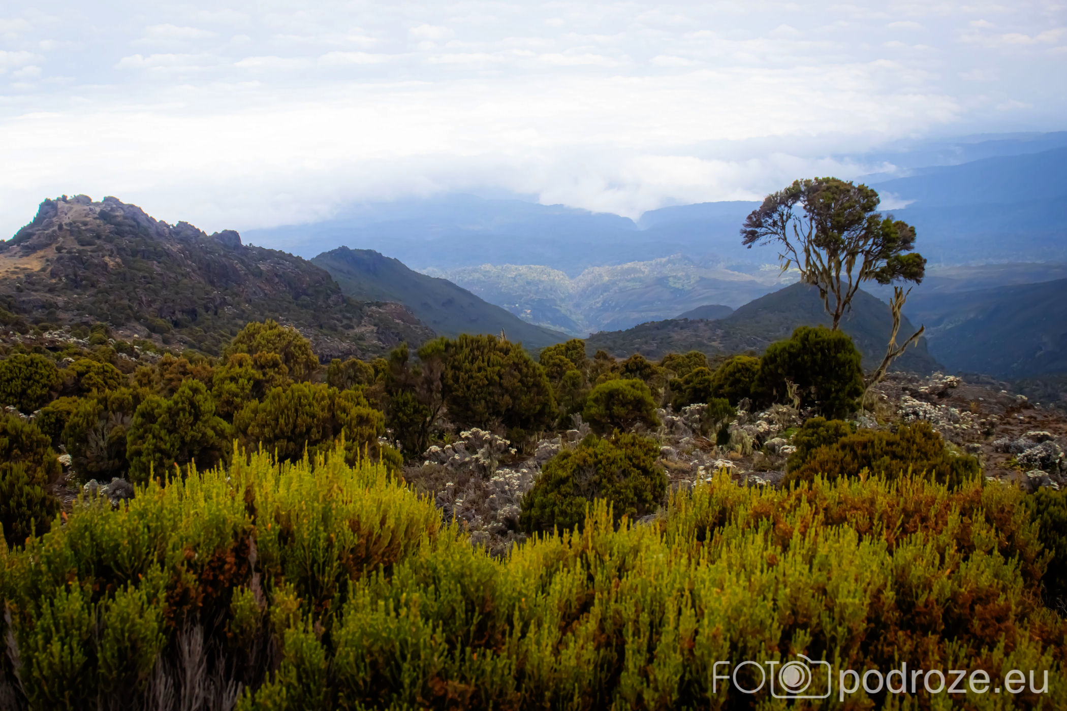 Początek szlaku wiedzie przez odpowiednik naszej kosówki. Roślinność już nie jest taka gęsta i wysoka jak w niższych partiach. Wyprzedzają nas dziesiątki porterów, a że ścieżka nie jest szeroka, trzeba co chwila stawać, aby ich przepuścić. Ma to jednak same zalety, jest czas żeby odetchnąć, za chwile przekraczamy przecież barierę 4000 metrów, można się napić i oczywiście porobić dziesiątki zdjęć. A widoki robią się coraz piękniejsze, bo roślinność odkrywa przed nami cudowne panoramy.