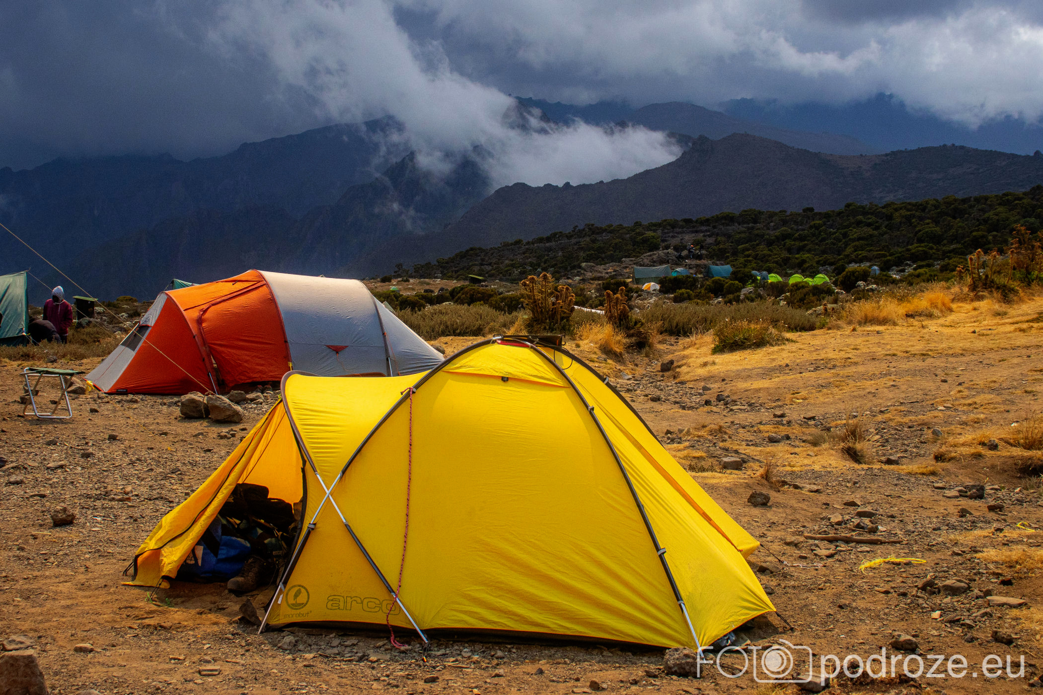 Po ponad 5 godzinach wolnej wspinaczki oczom naszym ukazuje się nasz kolejny „dom”, czyli Shira Camp. Niebo nad nami na dobre się zachmurzyło, ale na szczęście tylko na chwile.