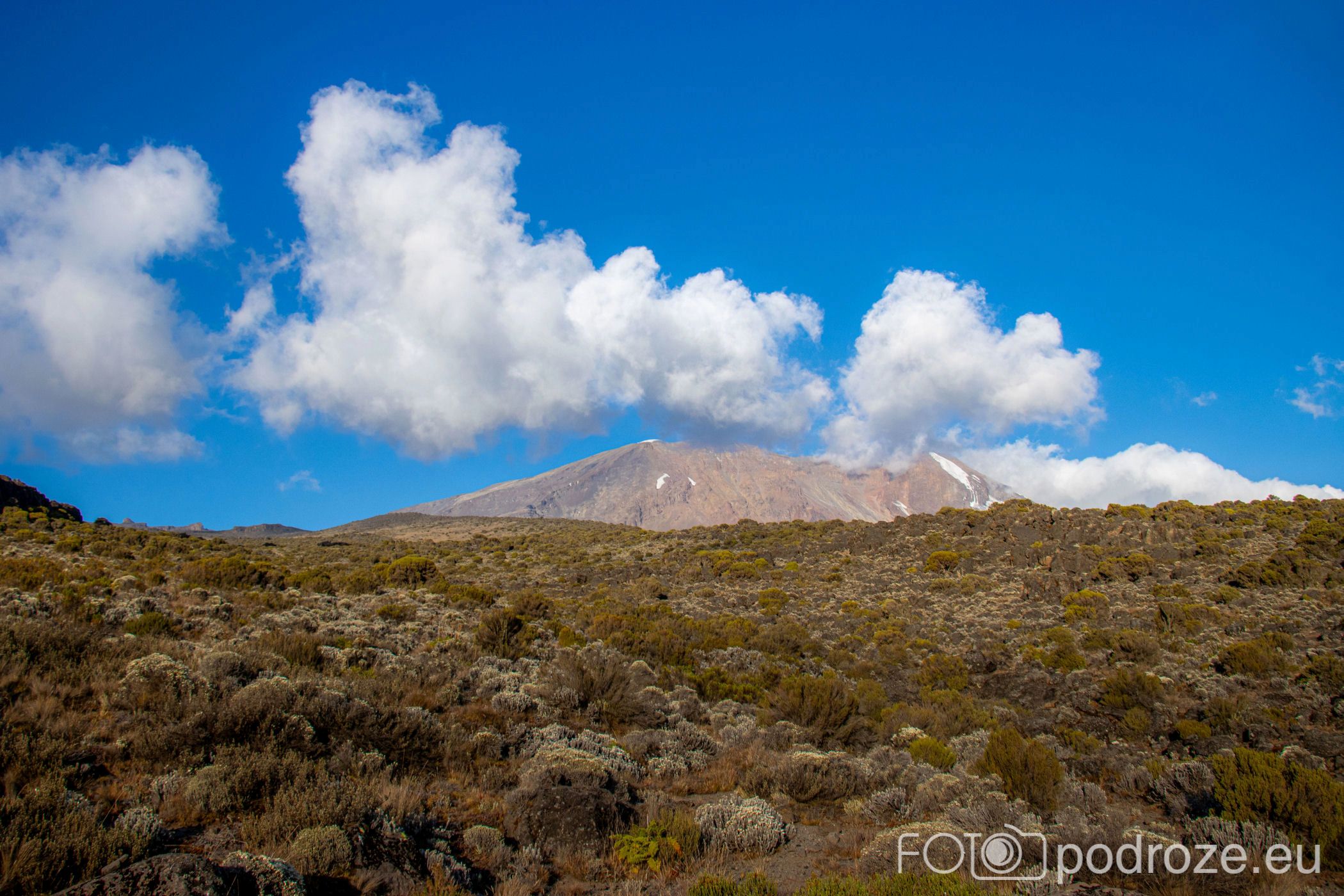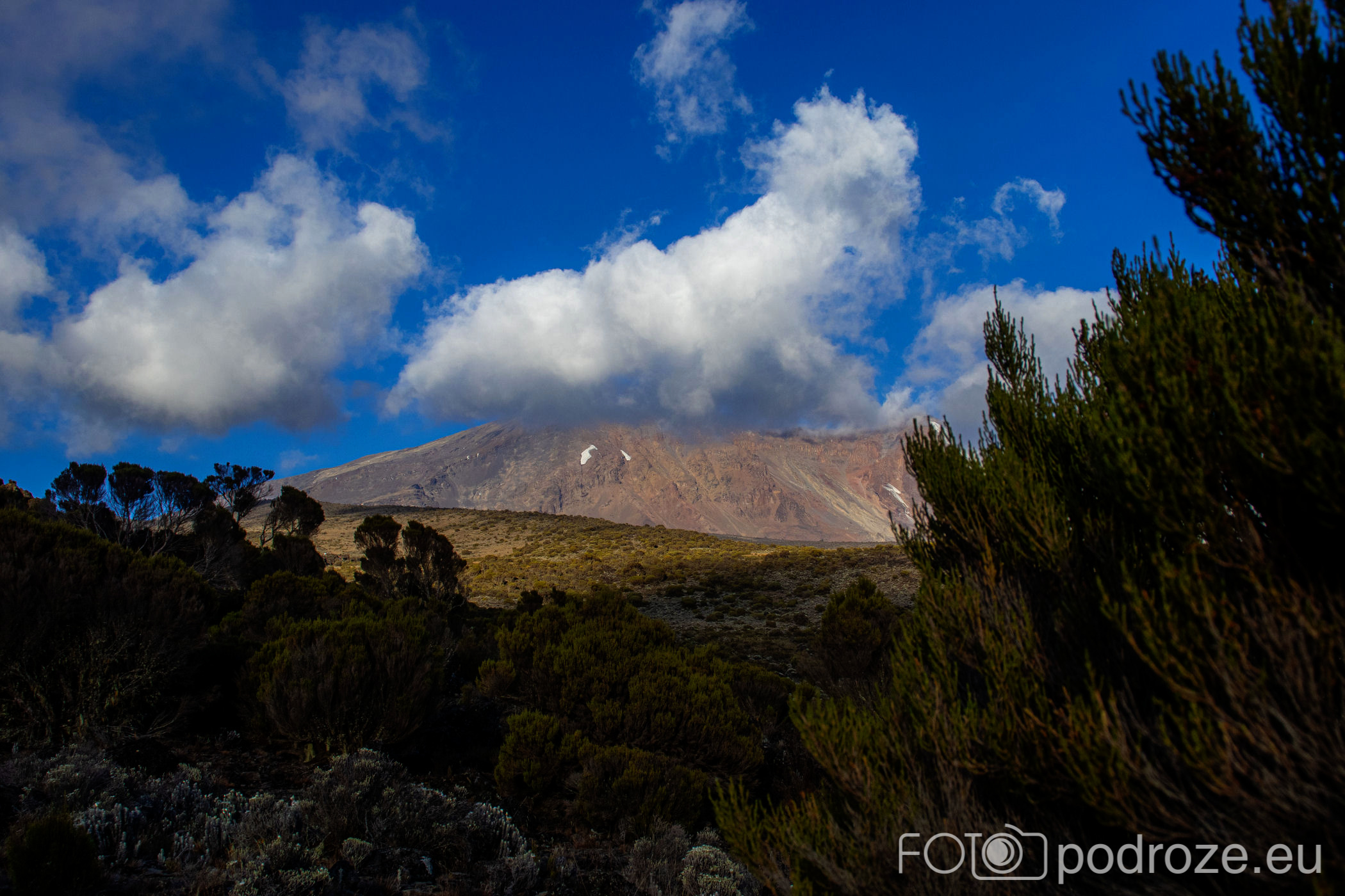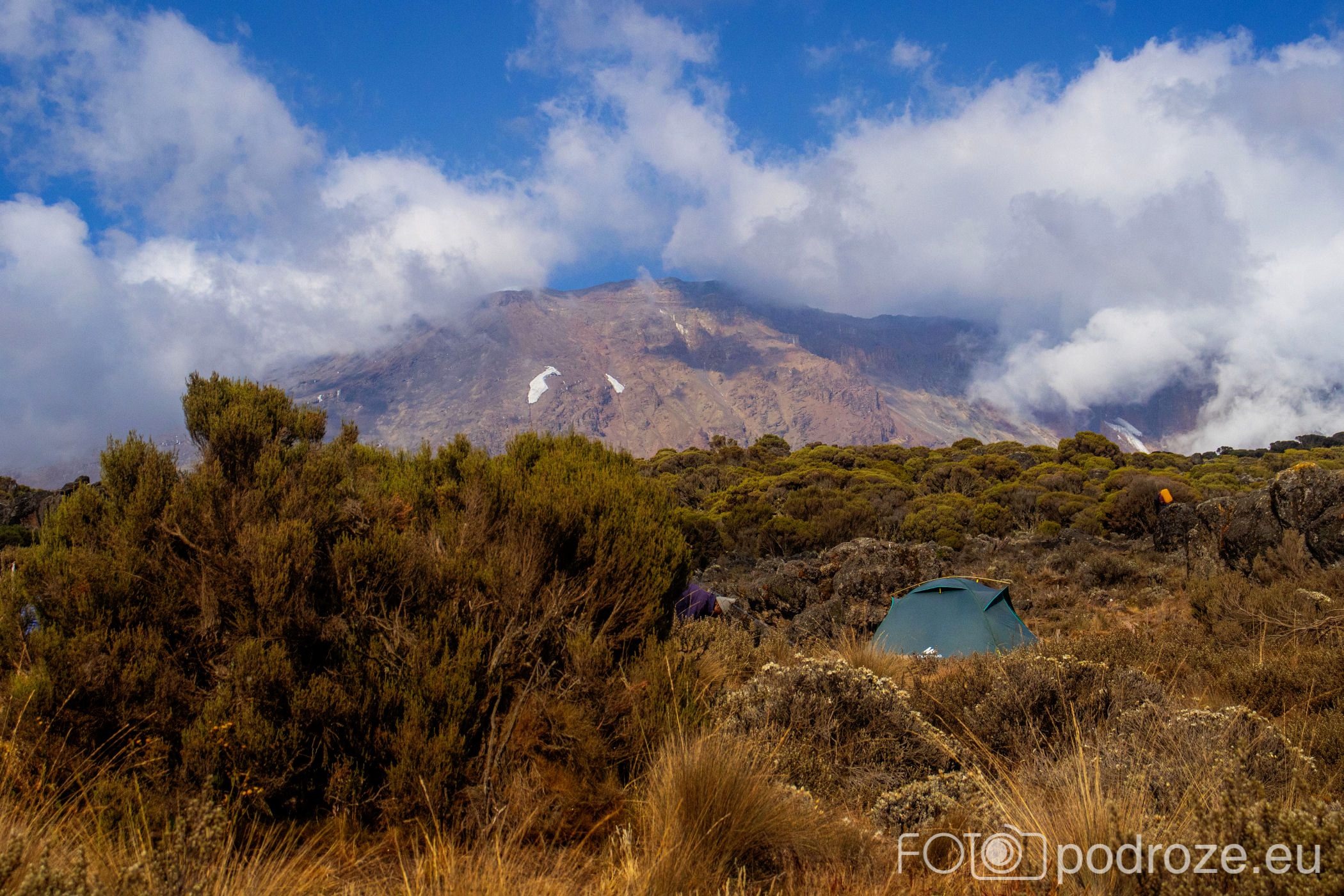 Mamy prawie godzinę do obiadu. W namiocie rozkładamy więc wszystko na spokojnie, dzisiaj kompletnie bez pośpiechu. Jest i czas, aby nacieszyć oczy całą okolicą. Od strony zachodniej mamy widok na fantastyczny masyw Shira (3940 m n.p.m.) , czyli jeden z wulkanów wchodzących w skład całego Parku Narodowego Kilimandżaro. W oddali widać też piękną góry Meru (4566 m n.p.m.), czwartą co wielkości góry Afryki.