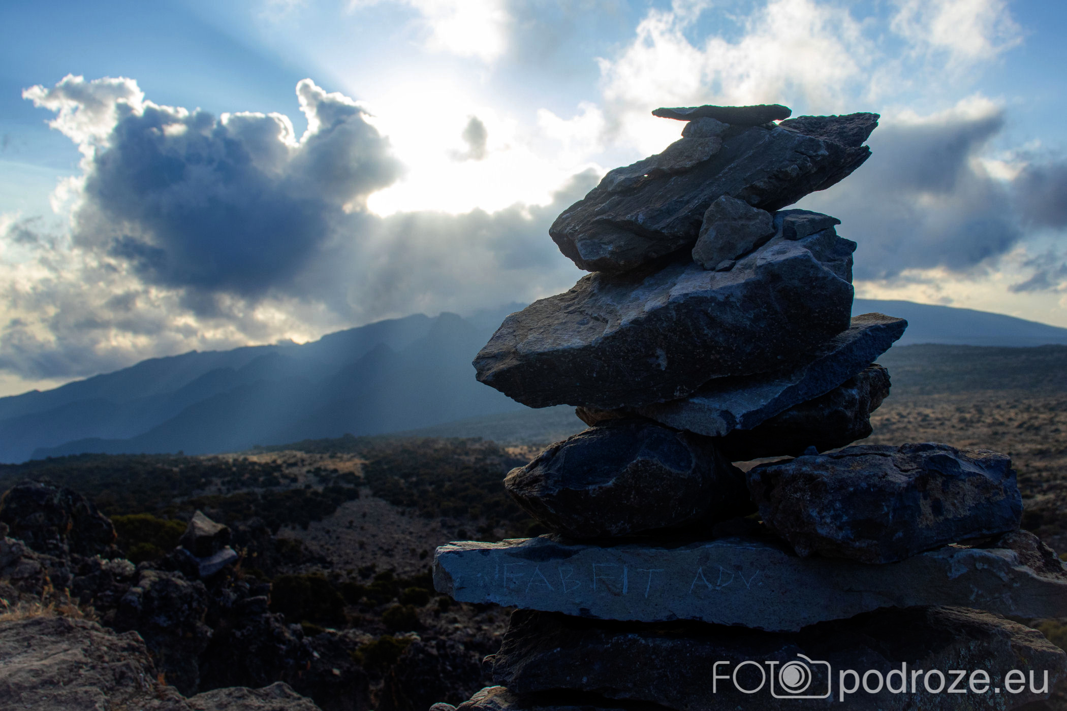 Tu wszyscy budują swoje kamienne kopce. Mają one podobno zapewnić szczęśliwe zdobycie szczytu. Każdy dokłada swoją „cegiełkę”, obowiązkowa sesja zdjęciowa i czas wracać, niedługo słońce powie nam „dobranoc”.