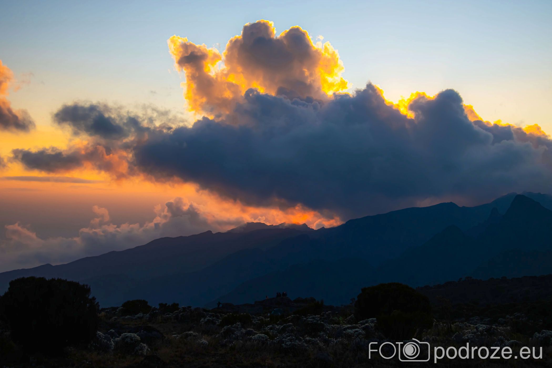 Słońce zachodzi co prawda za chmurami, ale i tak jesteśmy zachwyceni spektaklem. Po kolacji wskakujemy do naszych śpiworków i próbujemy zasnąć. Niebo nad Shira Camp nie da się opisać słowami. Jakby ktoś je pomalował w miliardy kropeczek, a przez środek rozwinął srebrną wstęgę Drogi Mlecznej. Coś obłędnego!!! Musicie mi uwierzyć na słowo, bo zdjęć nie mam.