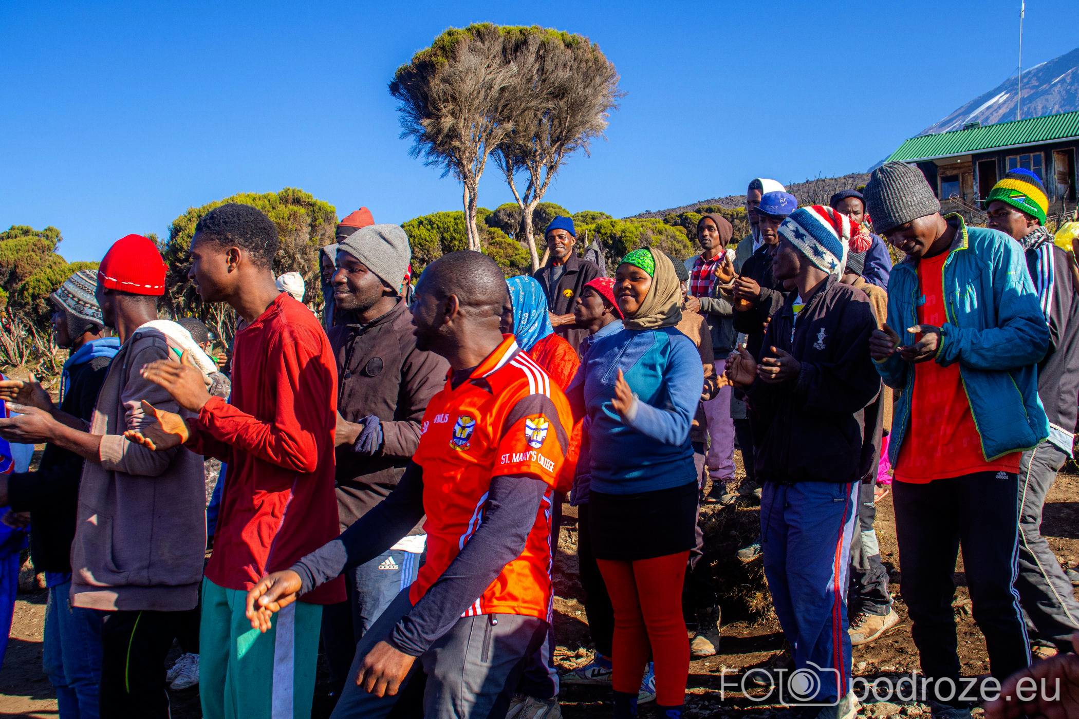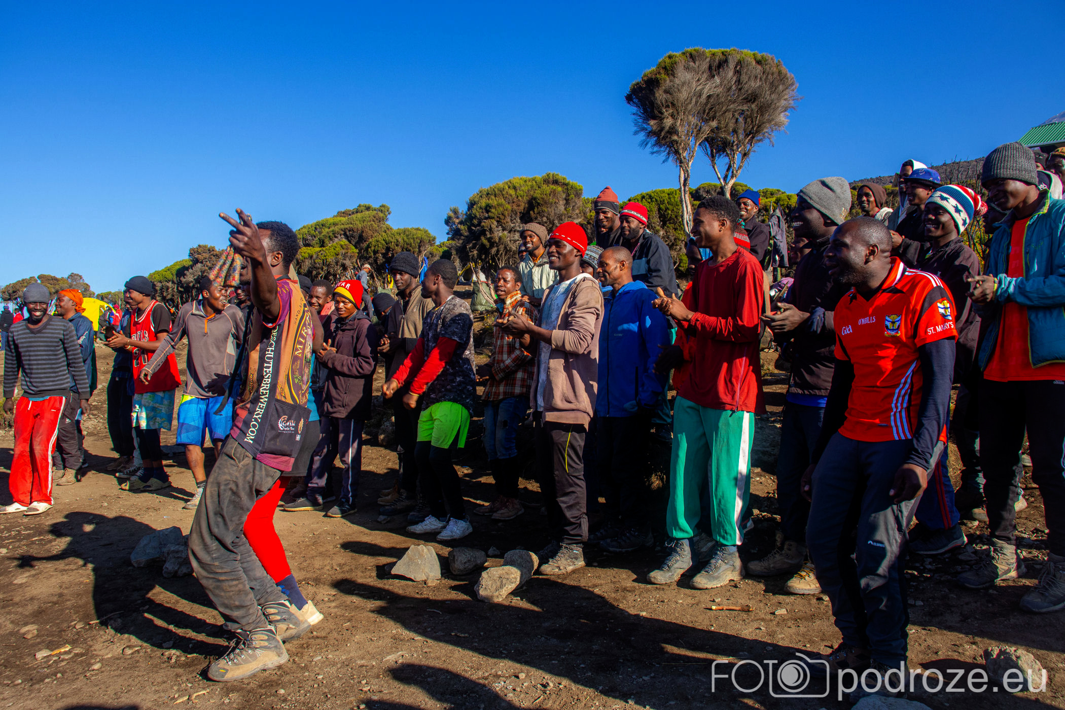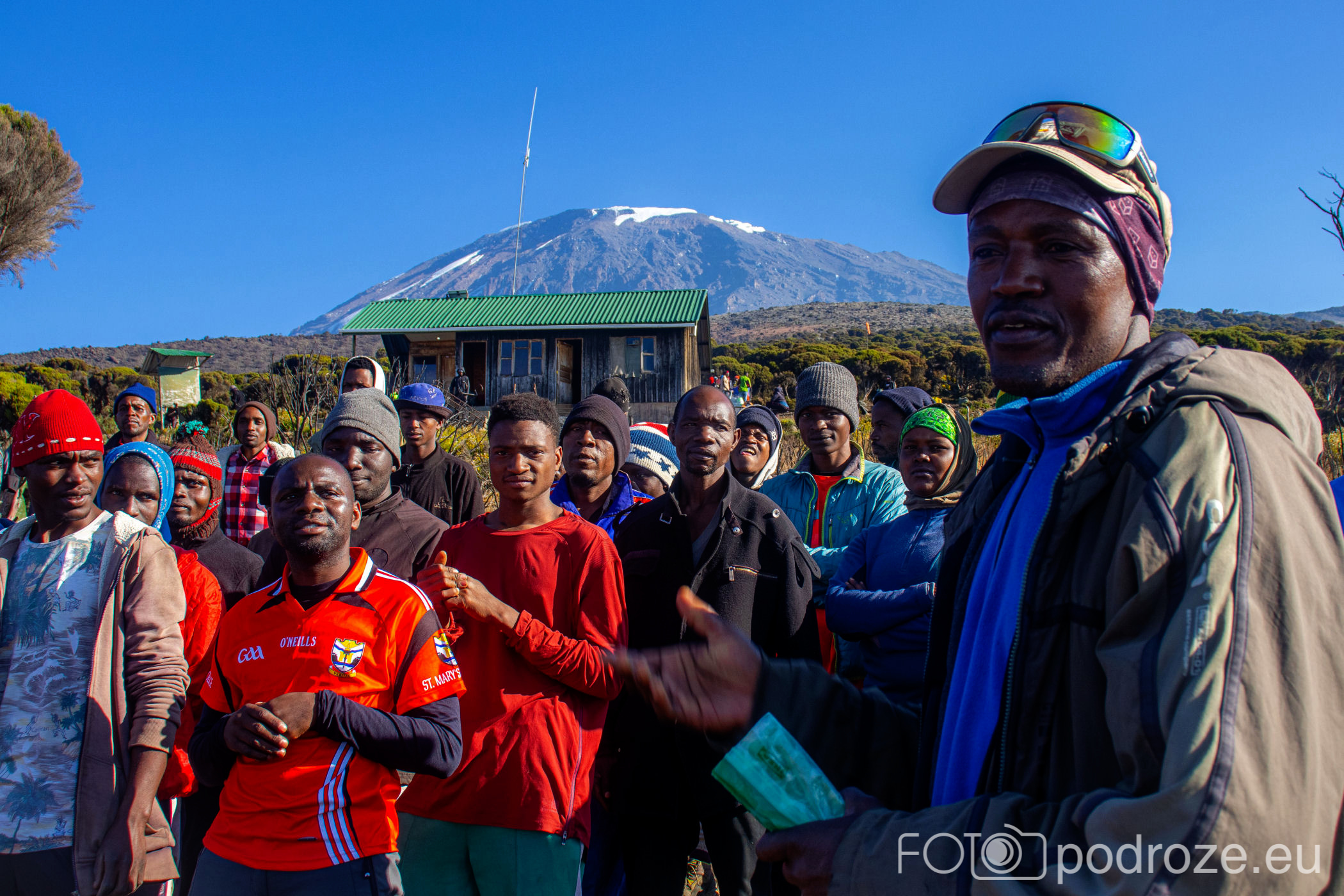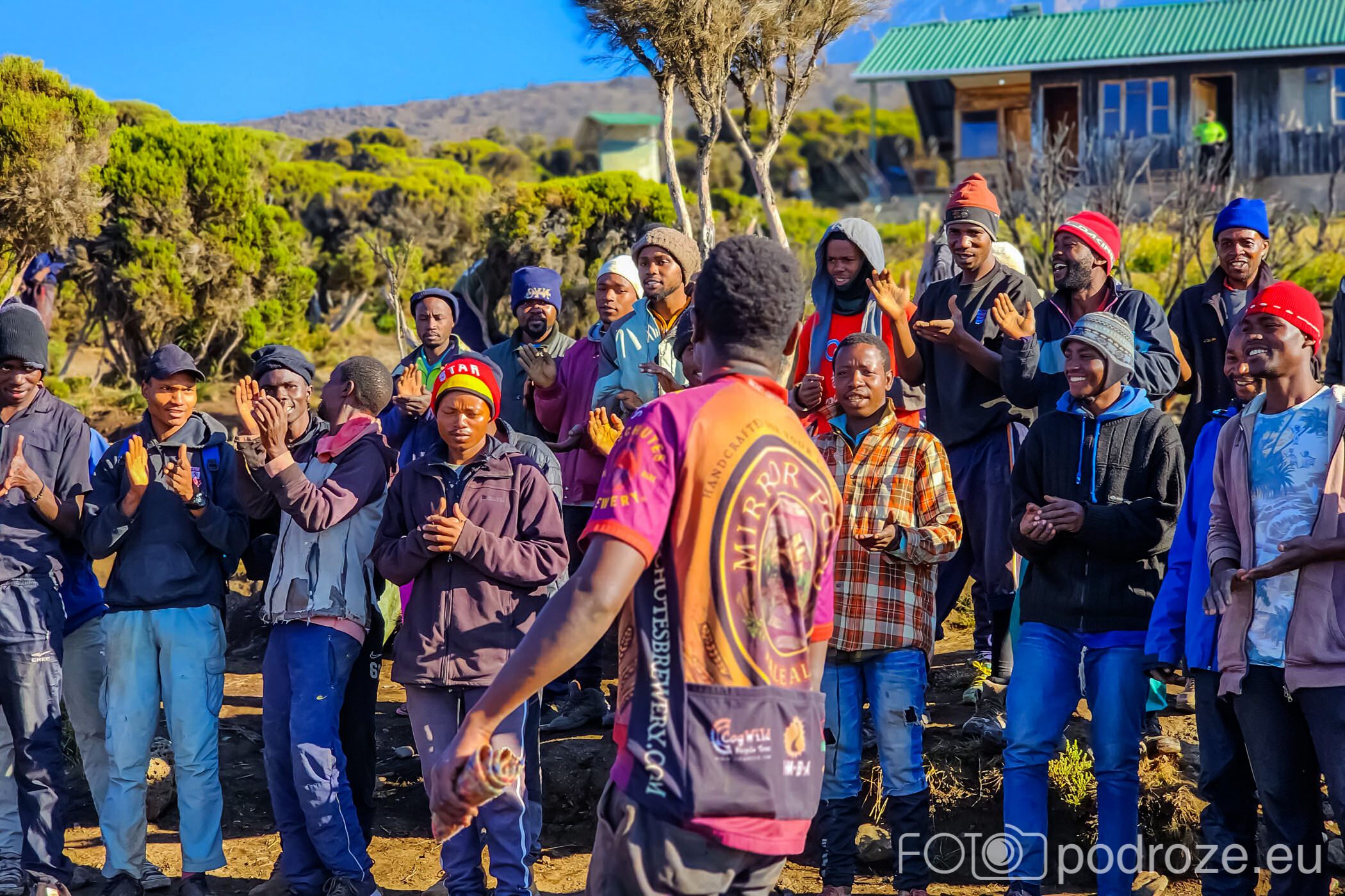 Zgodnie z tradycją w tym ostatnim dniu zbierane są do woreczka napiwki dla naszej tanzańskiej ekipy. Jeśli ktoś pracuje na tej górze pierwszy rok, jego jedyny zarobek to napiwki. Napiwek jest tu więc oczywistością i oprócz oficjalnej stawki, każdy zostawia przynajmniej minimalną kwotę jaką wcześniej mamy ustaloną. Potem w ramach podziękowania kwota jest przekazywana, a nasza zatrudniona ekipa śpiewa i tańczy dla nas. To swoiste święto u stóp Kili ma wyjątkową atmosferę.