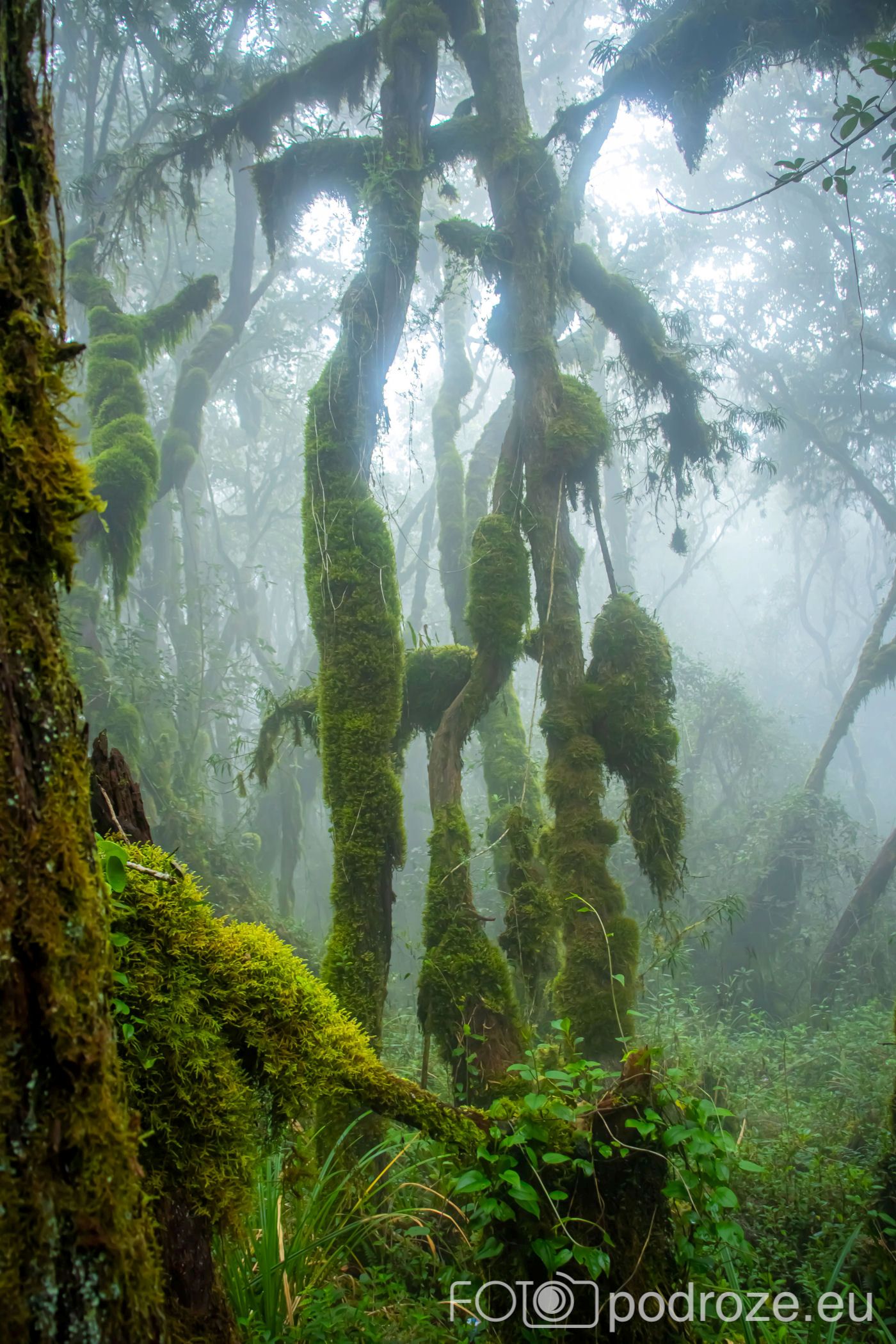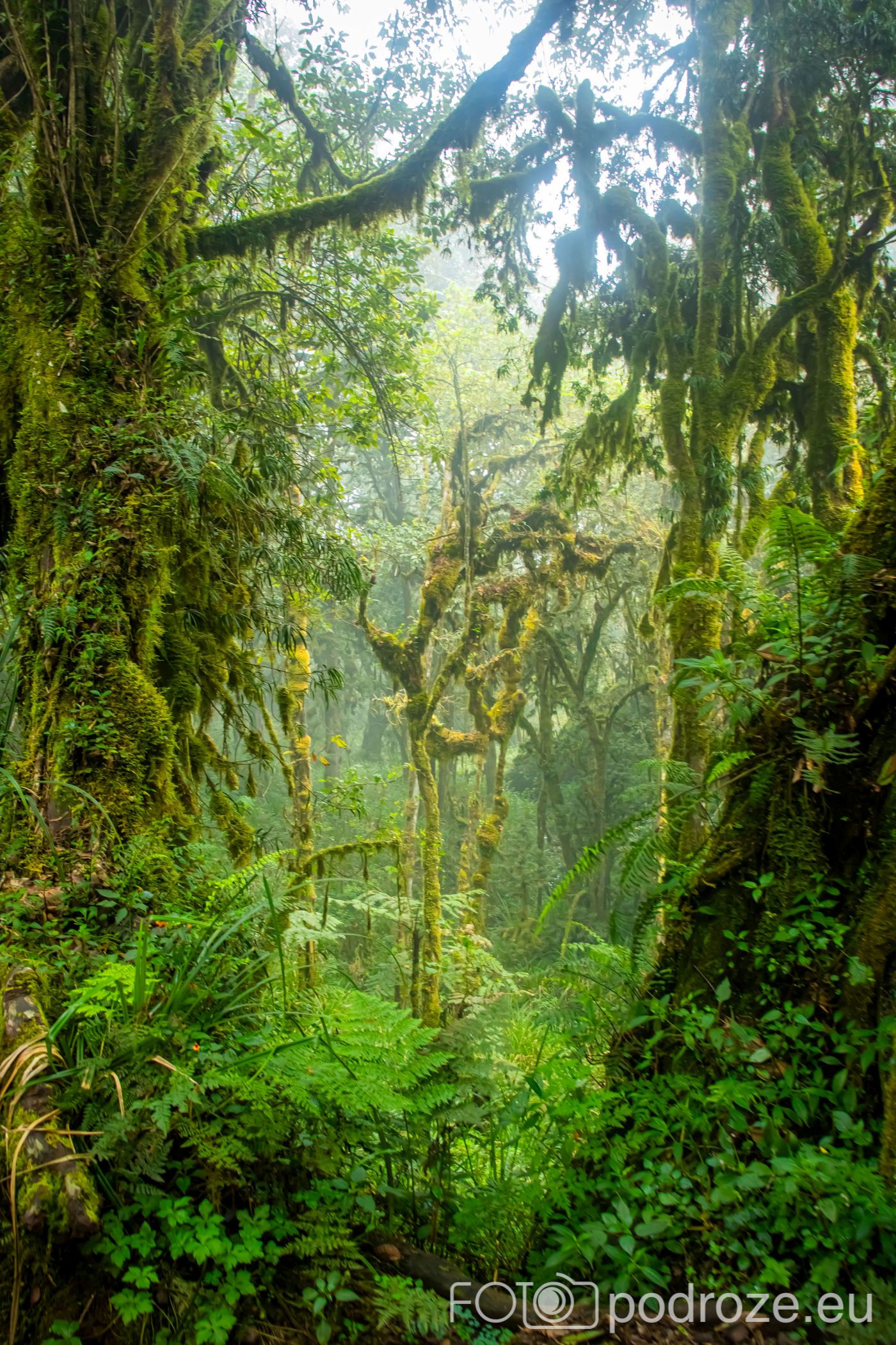 Na początku wita nas gęsta mgła. Splątane rośliny, potężne omszałe niemal w całości drzewa, potężne paprocie i cisza, kompletna cisza. Jak w magicznym lesie. Tu można by nakręcić niejeden film fantazy …