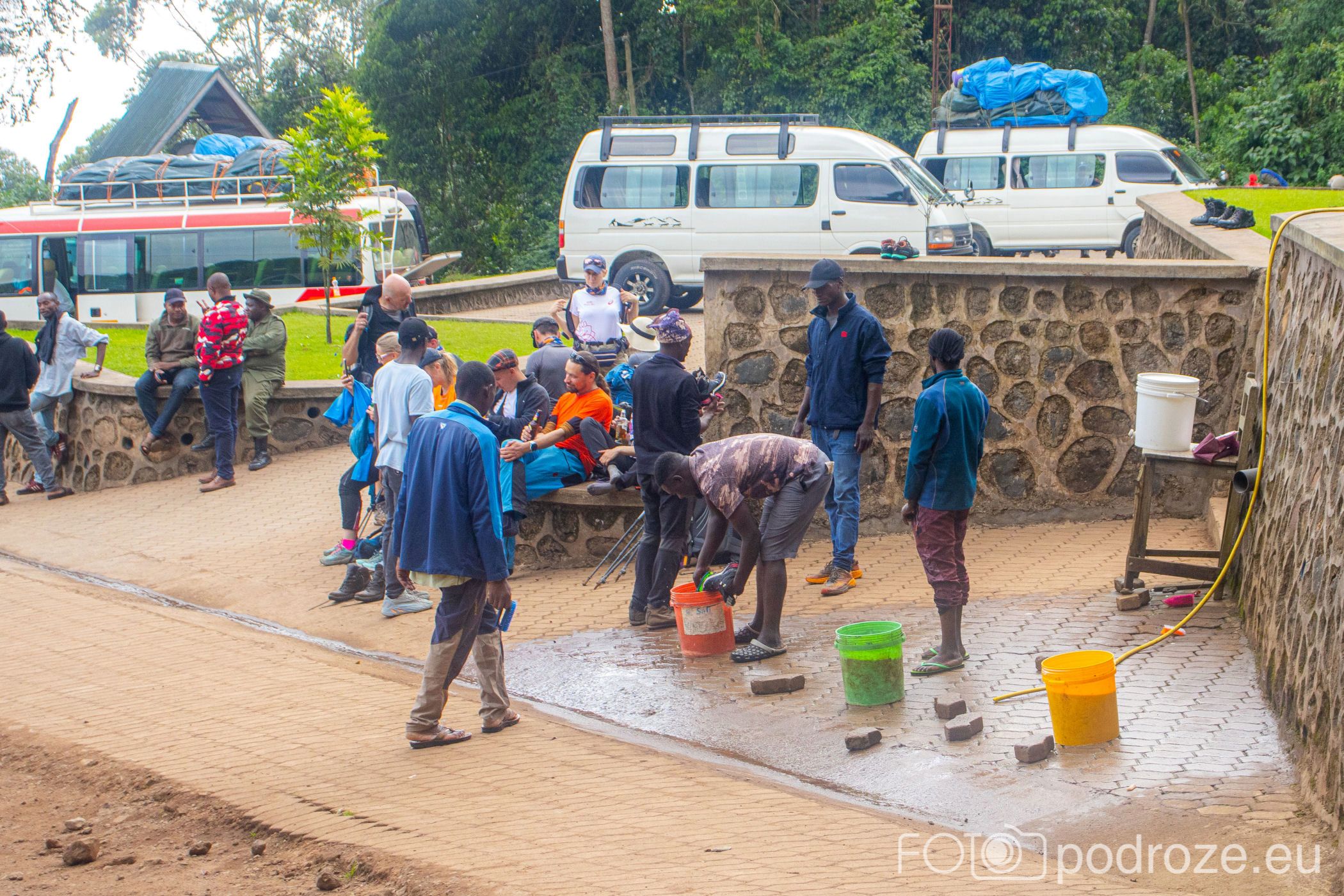 Po 6 godzinach wędrówki meldujemy się przy ostatniej bramie. Pamiątkowe zdjęcie z napisem „Congratulations” i idziemy na murek do reszty ekipy, gdzie zwyczajowo ściąga się buty, aby Tanzańczycy mogli je wyczyścić z tony pyłu i błota.
