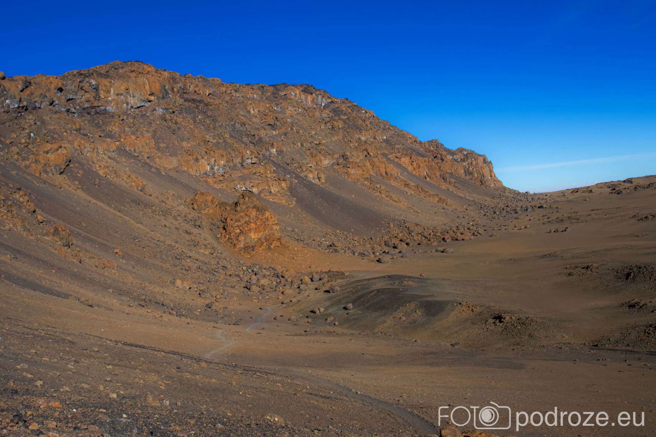 Jeszcze do krateru został spory kawałek. Jest nieprawdopodobnie ciężko, nie ma już kompletnie czym oddychać. Podnoszę aparat, żeby zrobić dosłownie 2 zdjęcia, na więcej nie mam kompletnie siły. Podobno powyżej 5500 nie ma już aklimatyzacji, to tzw. „STREFA ŚMIERCI”. Nie brzmi to dobrze … 10 oddechów, 3 łyki wody i 3 kroki … w takim tempie to jeszcze nigdy się nie ruszałam. Im bliżej krawędzi krateru, tym podejście jest bardziej strome. Gdzieś tam, bardzo daleko w dole został nasz obóz.