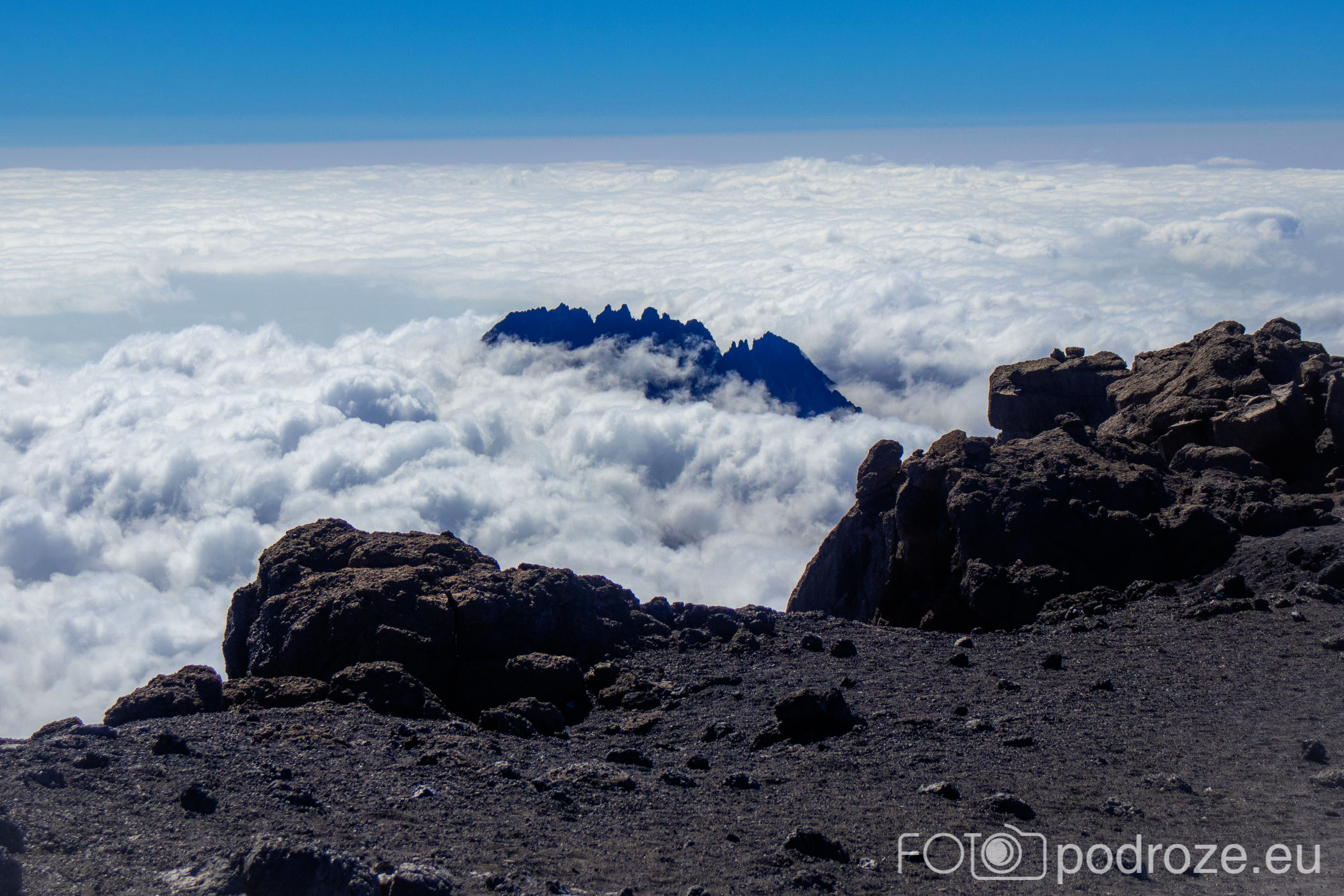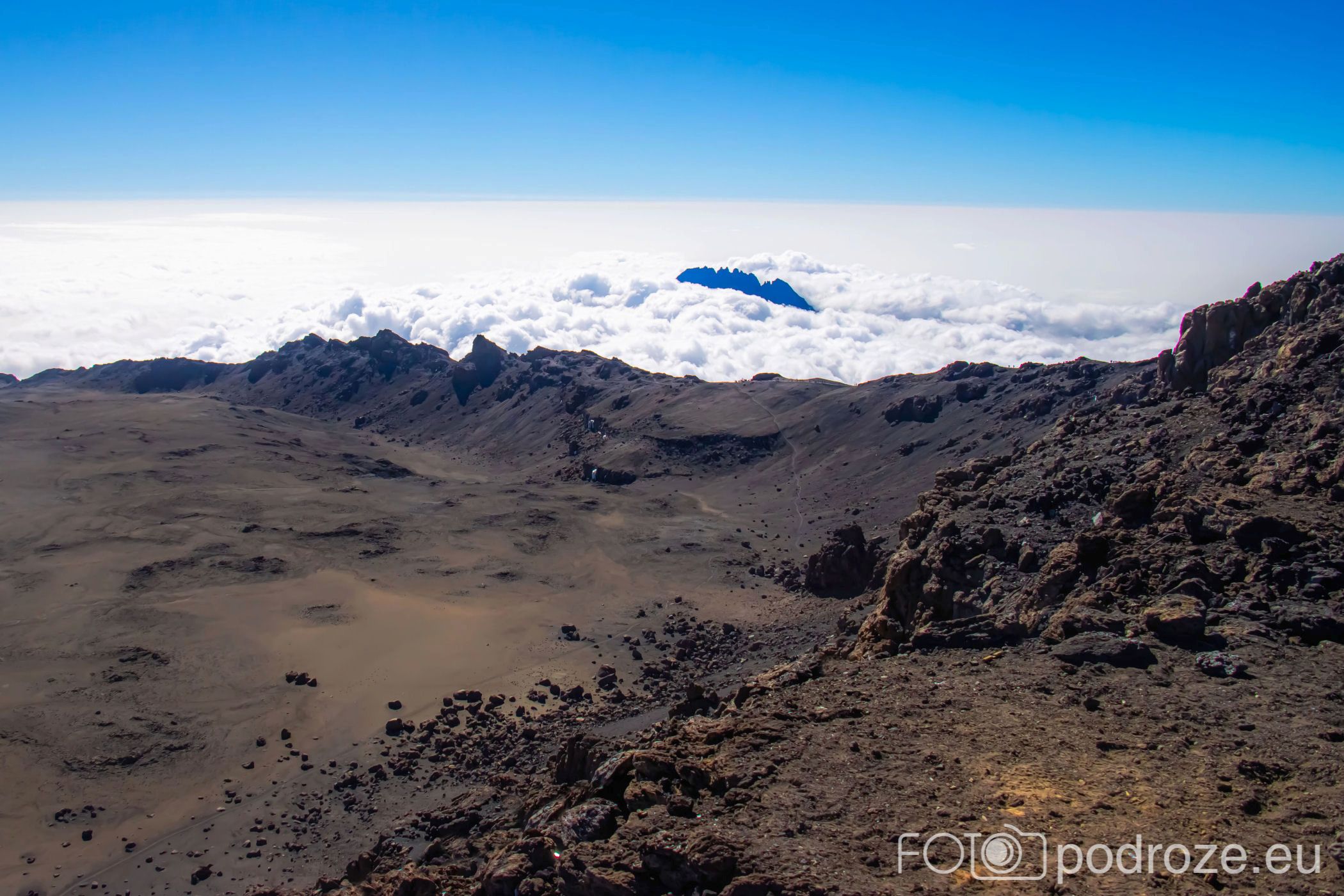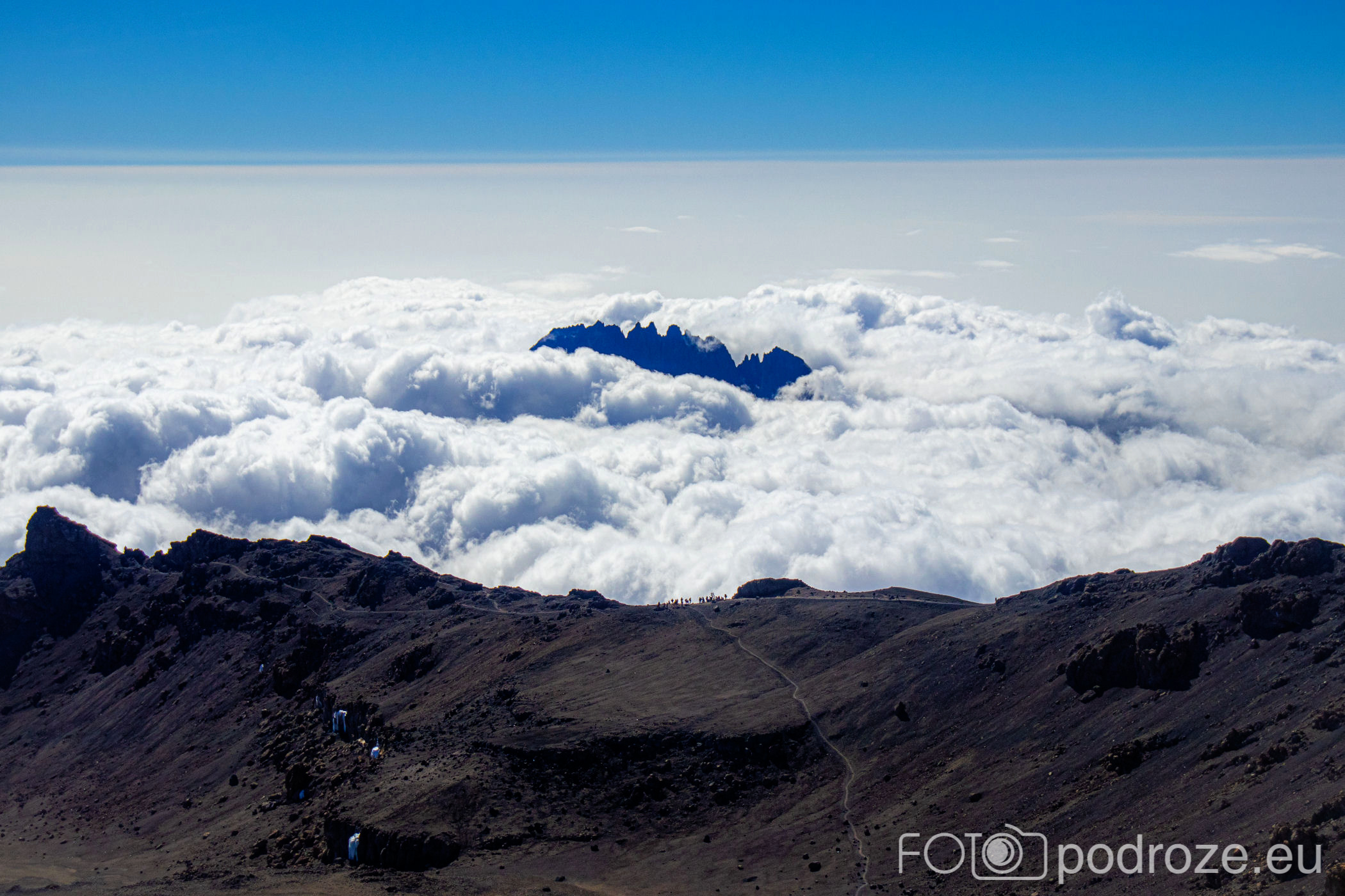 A widok, jaki nam towarzyszy prawie cały czas w drodze powrotnej, to obłędne postrzępione granie szczytu Mavenzi. Drugi najwyższy szczyt Kilimandżaro po szczycie Kibo. Wznoszący się na imponującą wysokość 5149 metrów jest też trzecim co do wysokości szczytem w Afryce po Kibo Peak i Mount Kenya. Wyłaniający się z morza chmur wygląda jak statek na wzburzonym oceanie.