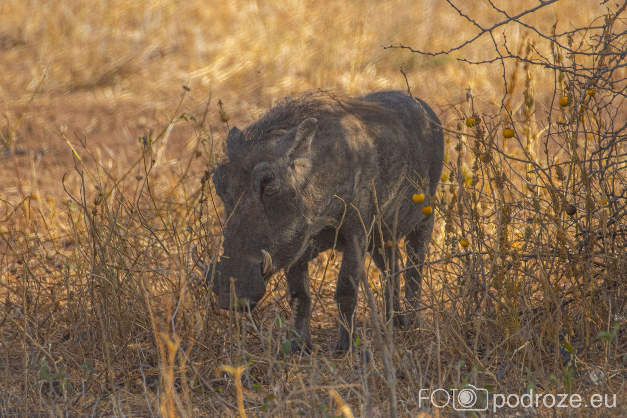 Ten charakterystyczny zwierz, przypominający naszego dzika nie jest tu zbyt często widziany. My wypatrujemy tylko jednego w gęstej trawie.