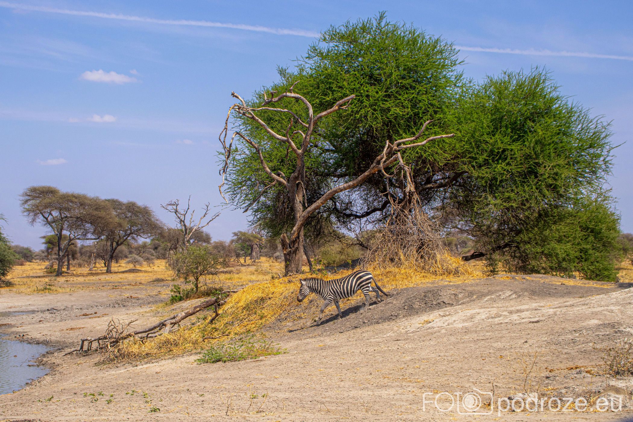Nad tym samem jeziorkiem zobaczyliśmy pierwsze zebry. To właśnie nad wodą gromadzą się największe ilości zwierząt różnych gatunków. Sielski obrazek pozbawiony jakiegokolwiek zagrożenia . Dopóki oczywiście nie pojawi się jakiś drapieżnik.