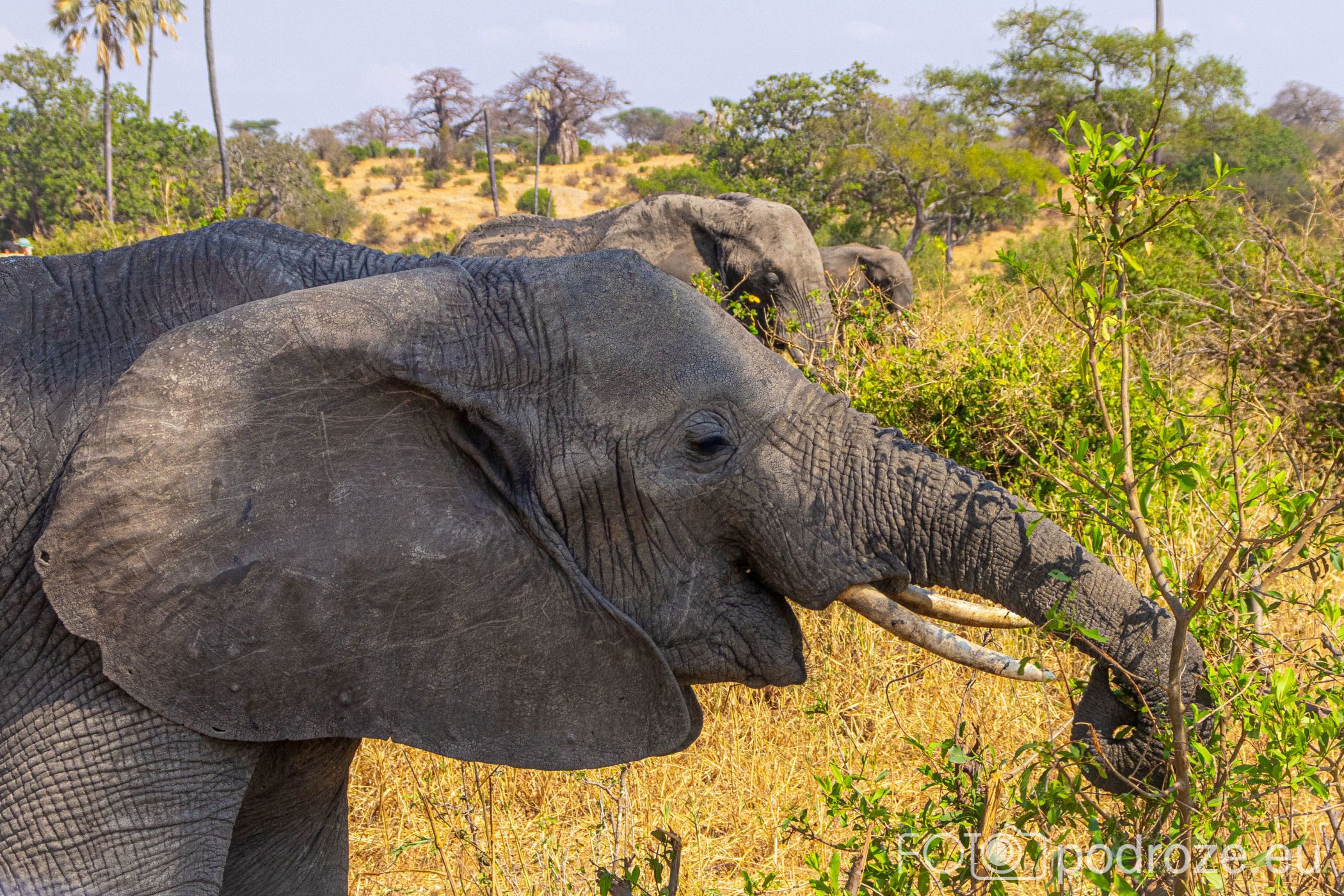 Jedną z kluczowych atrakcji, które sprawiły, że Park Narodowy Tarangire stał się popularny na arenie międzynarodowej, jest największa populacja słoni w całym kraju. W porze suchej od czerwca do października, można zobaczyć liczne duże stada słoni liczące nawet 300 osobników. Aż takiej ilości na raz nie widzieliśmy, ale słonie faktycznie były widoczne w dużych grupach na całym terenie. Mnóstwo też było mam z małymi słoniątkami.