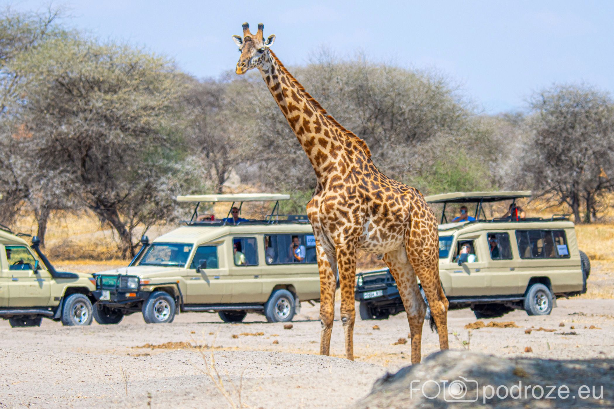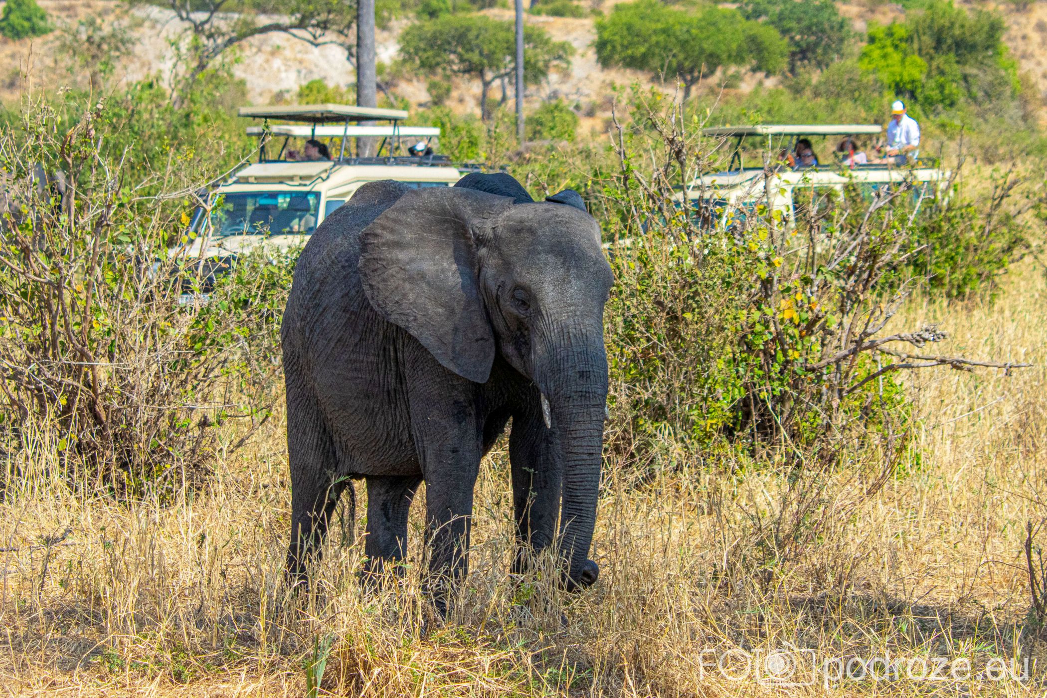 Jedziemy 6-osobową grupą w pojazdach terenowych 7-osobowych przystosowanych specjalnie do safari. Wszystkie pojazdy mają otwierane szyby boczne oraz otwierane dachy. Dzięki temu każdy może obserwować zwierzęta, a przy okazji mieć ochronę od palącego tu słońca.
