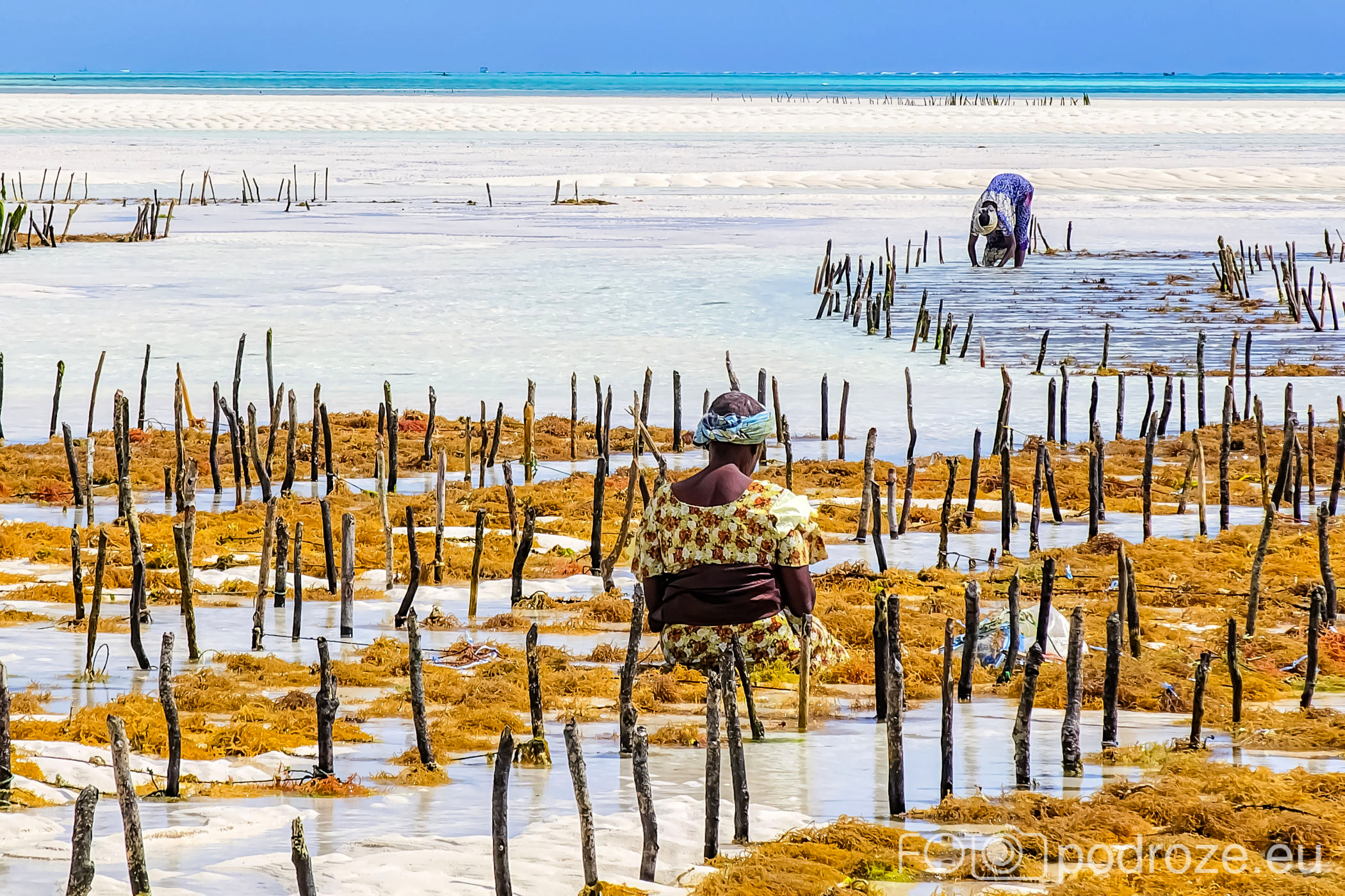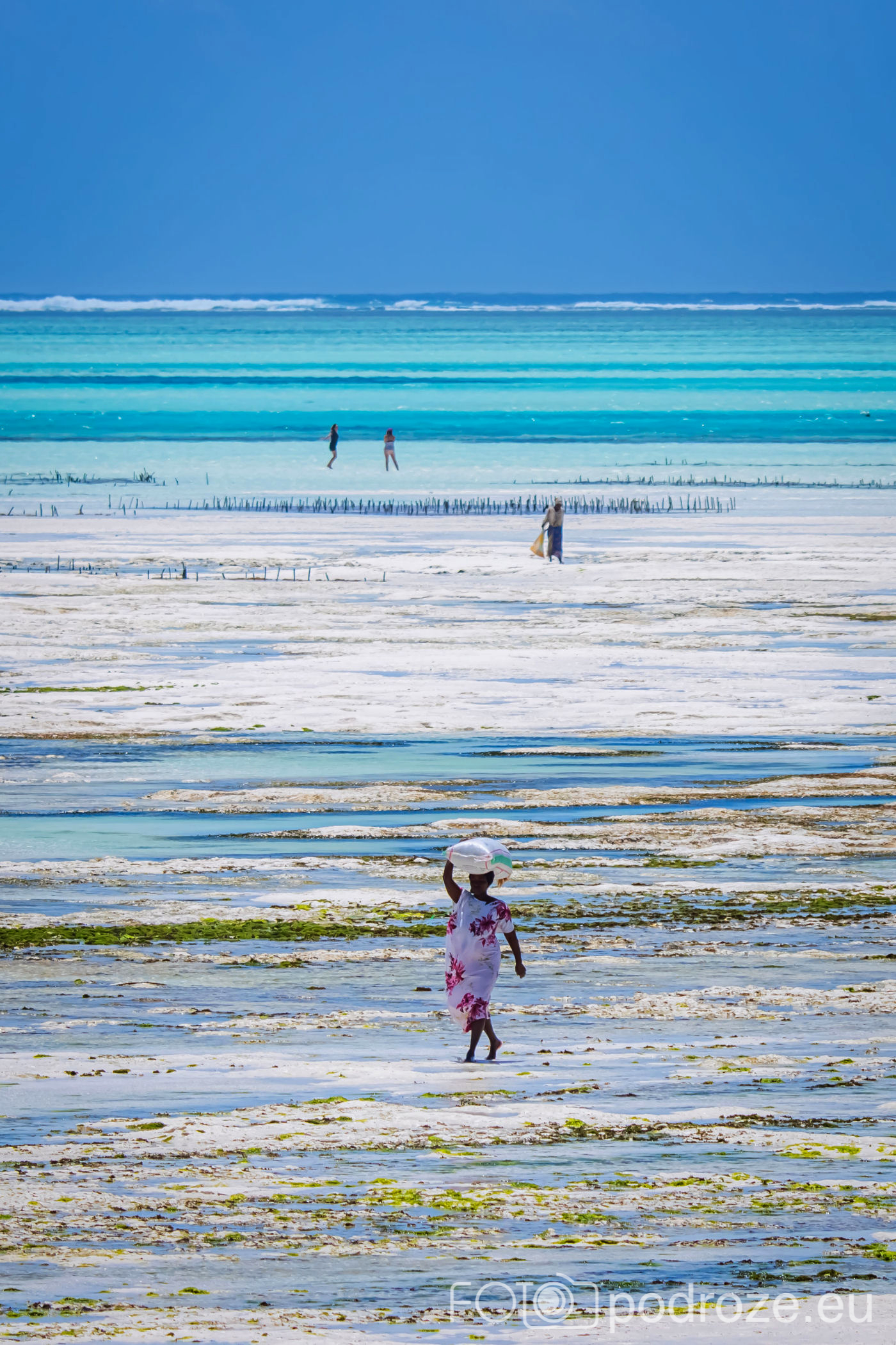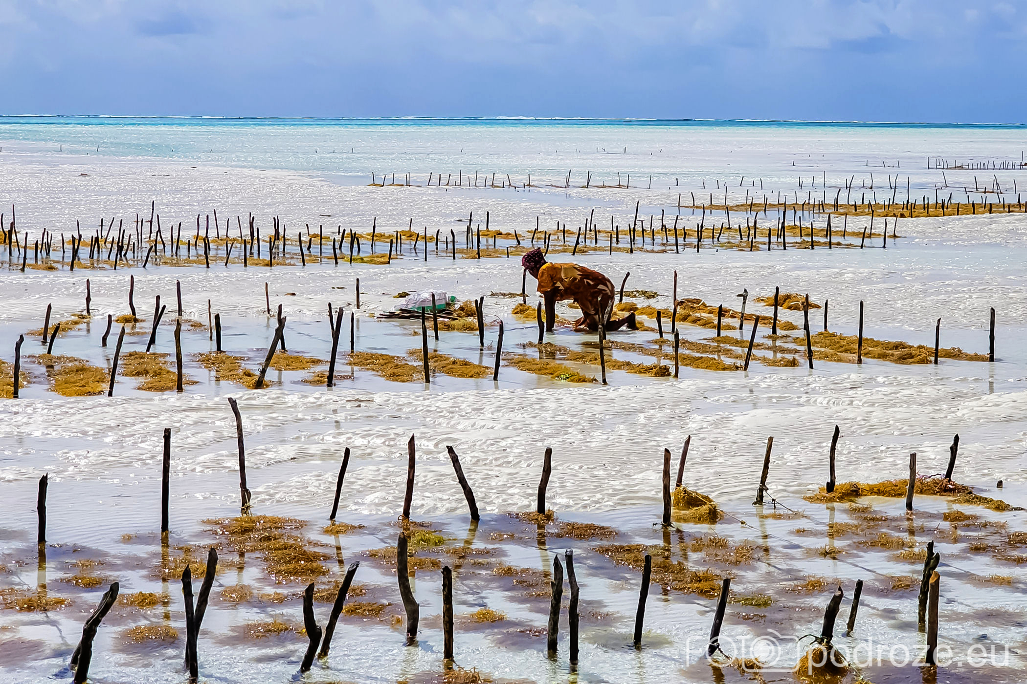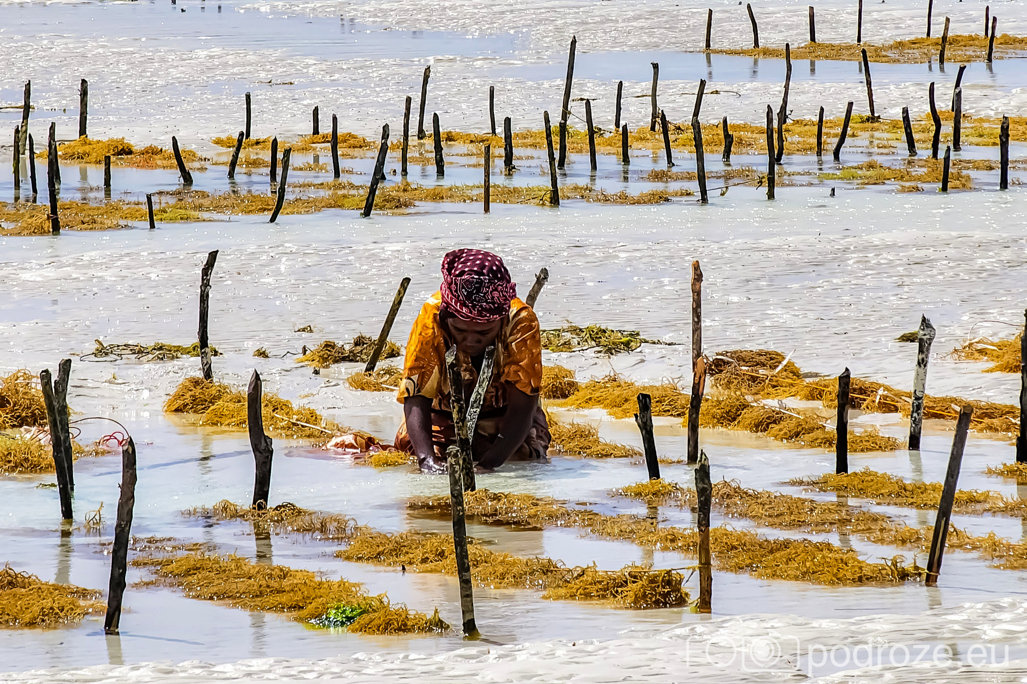 Już od wczesnych godzin porannych zanzibarskie kobiety ubrane w kolorowe stroje z koszami na głowie idą w głąb oceanu. Jakiś kilometr dalej zaczynają się oceaniczne plantacje alg. oczywiście praca jest możliwa tylko do momentu kolejnego przypływu. Tuż przed nim obserwujemy jak kobiety niosą zebrane plony.