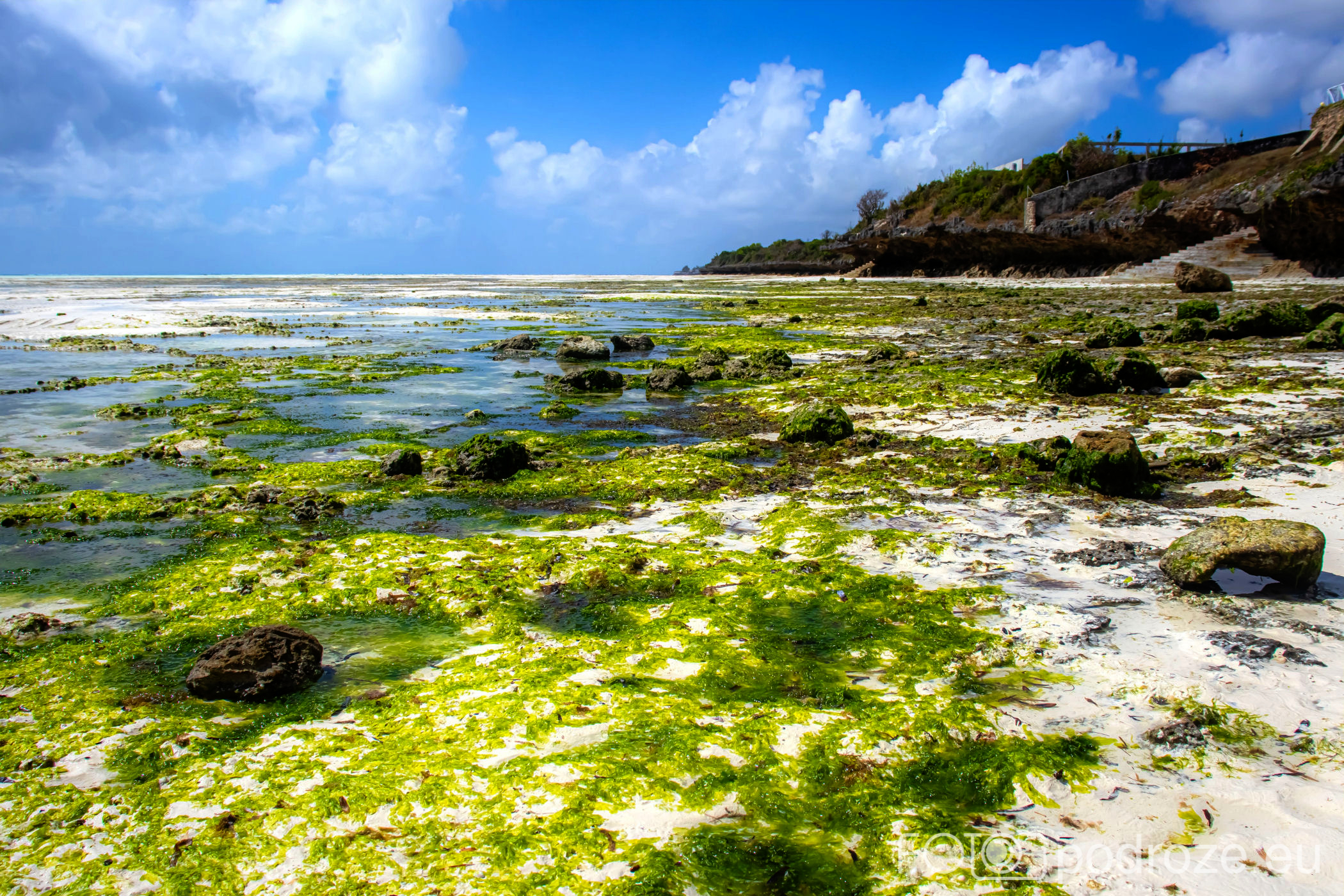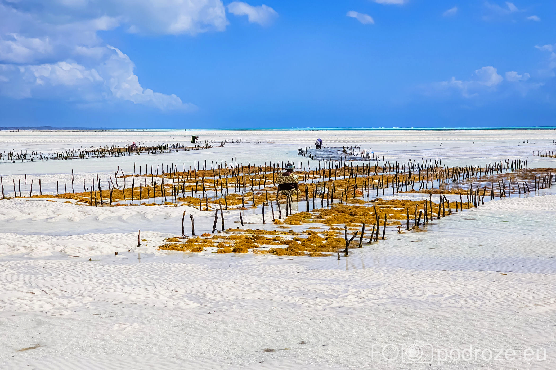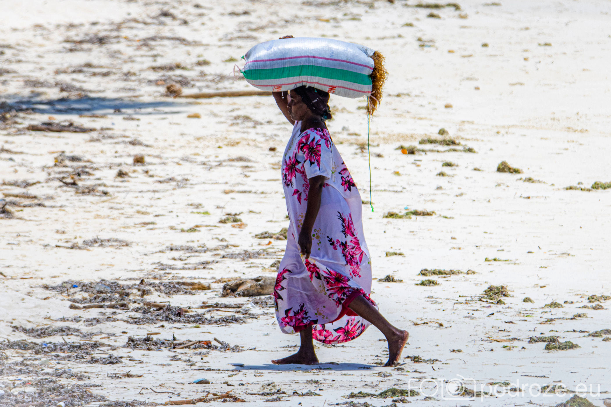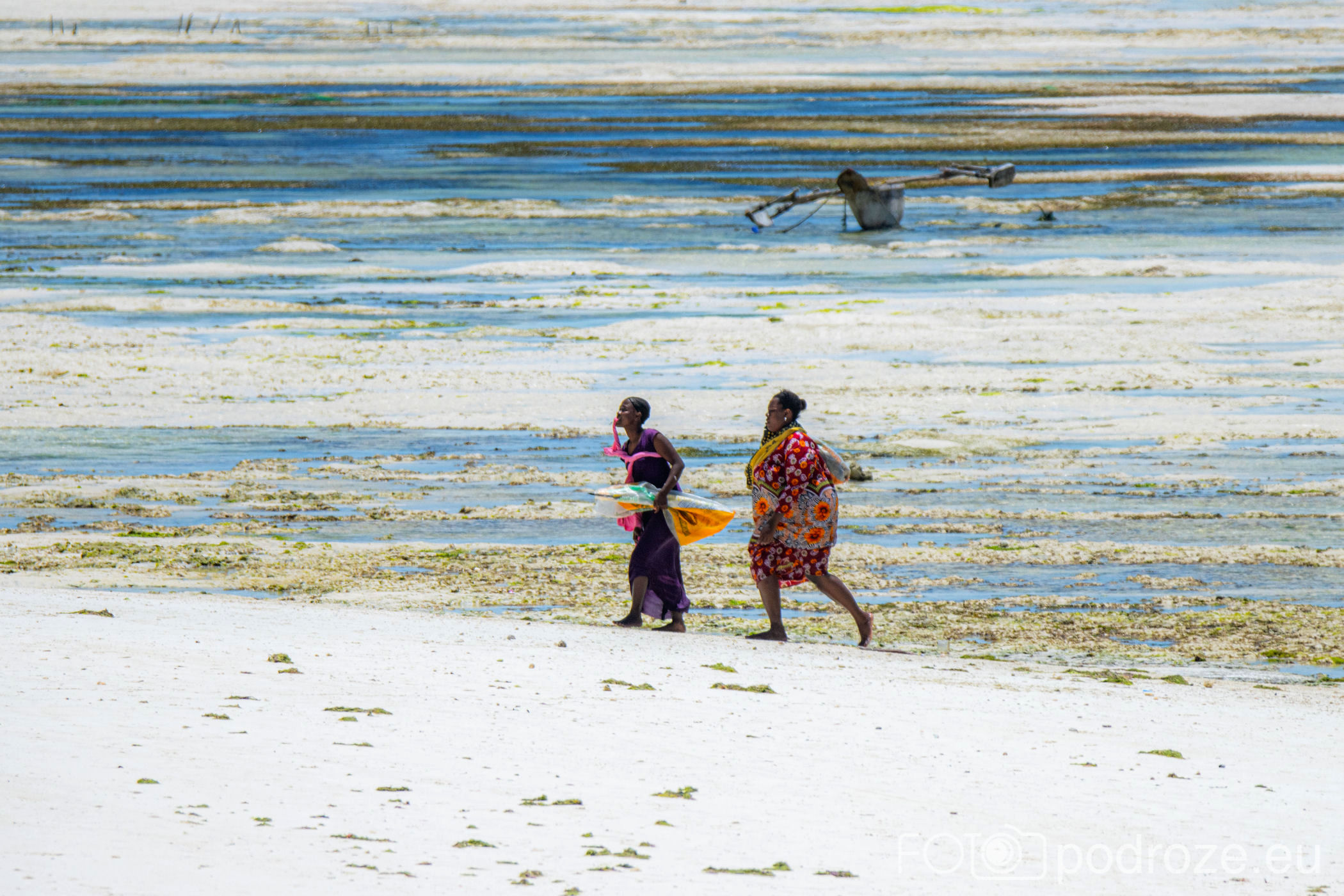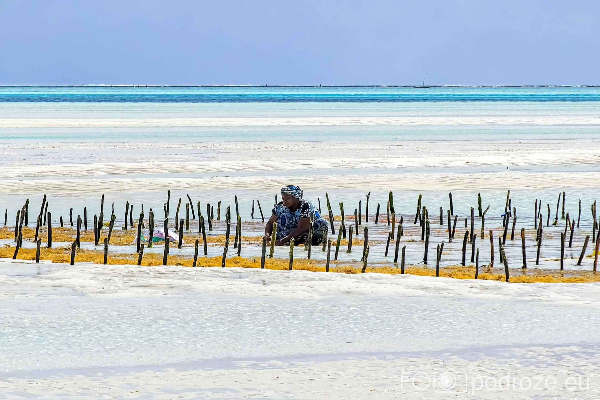 Już od wczesnych godzin porannych zanzibarskie kobiety ubrane w kolorowe stroje z koszami na głowie idą w głąb oceanu. Jakiś kilometr dalej zaczynają się oceaniczne plantacje alg. oczywiście praca jest możliwa tylko do momentu kolejnego przypływu. Tuż przed nim obserwujemy jak kobiety niosą zebrane plony.