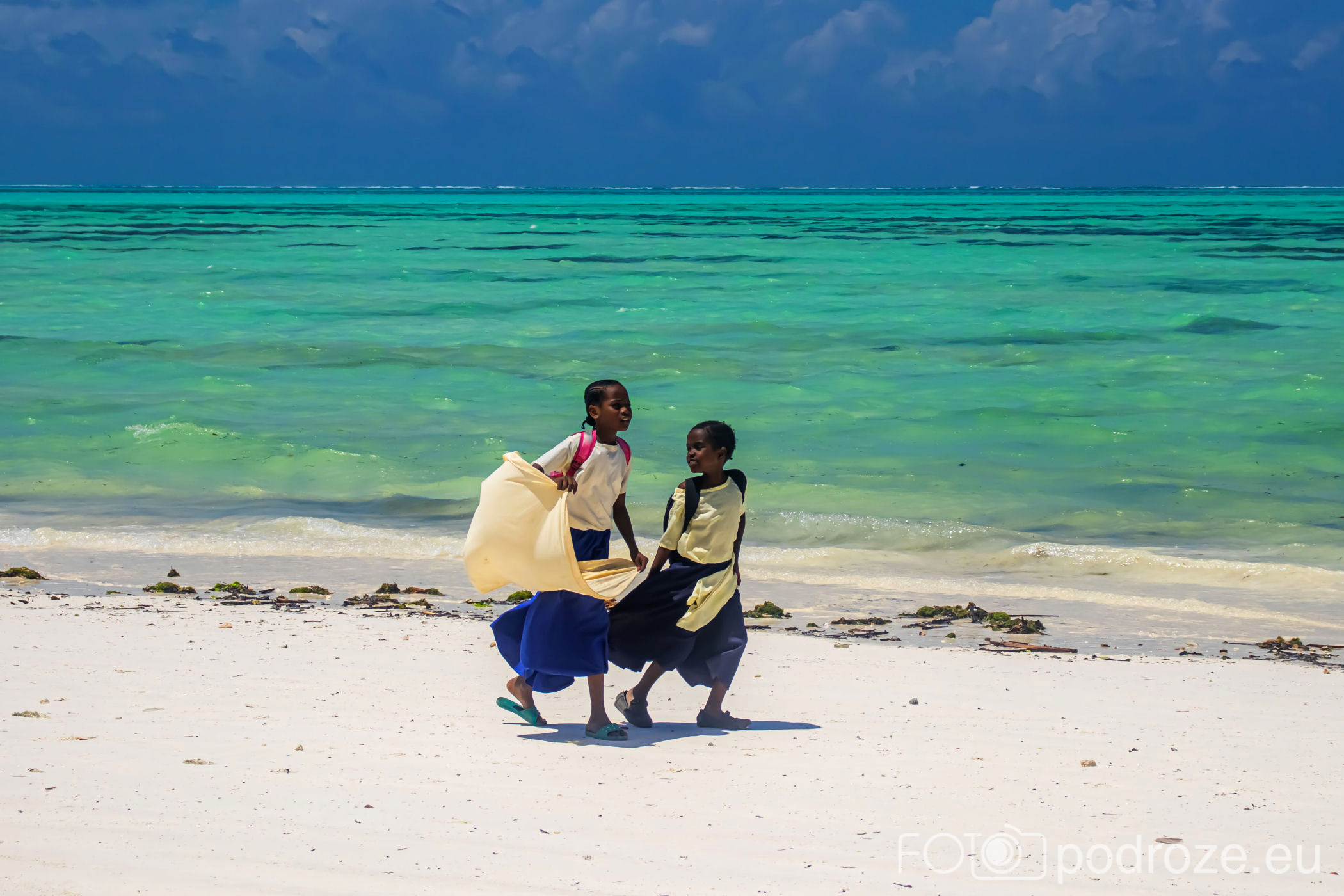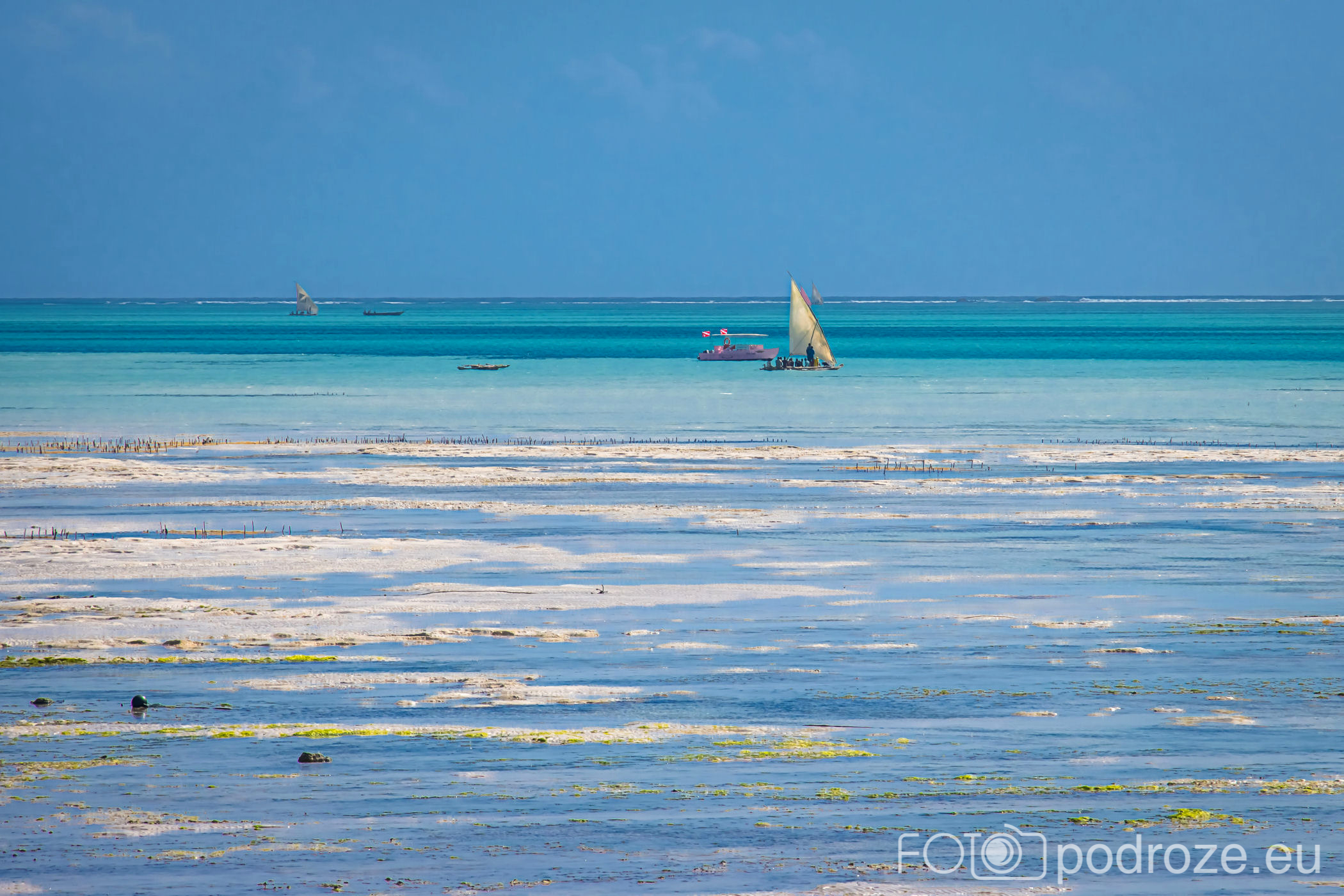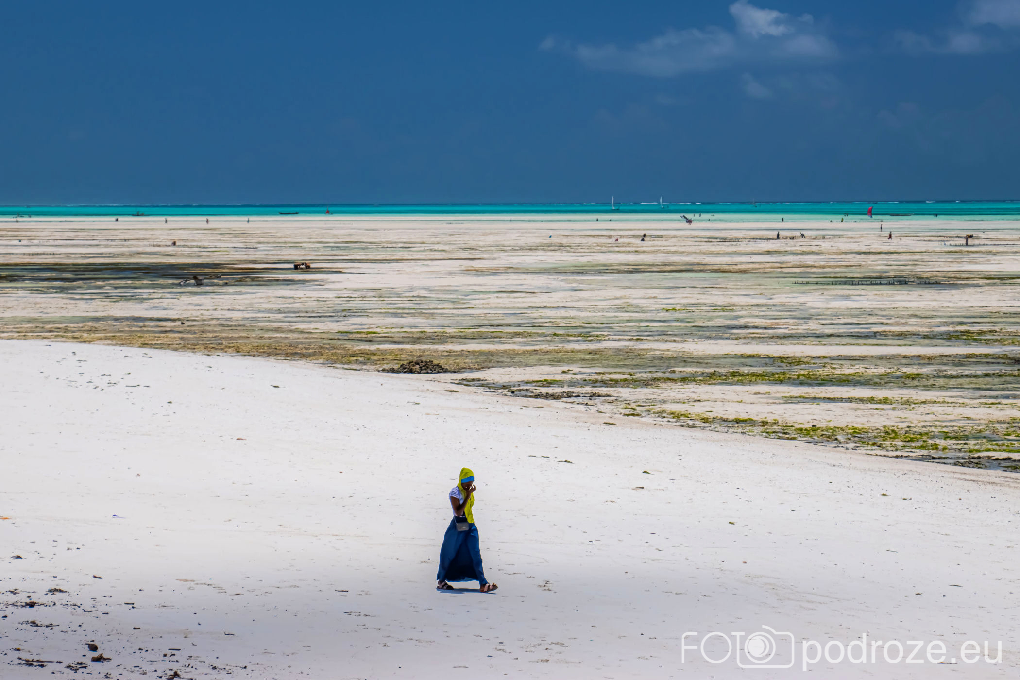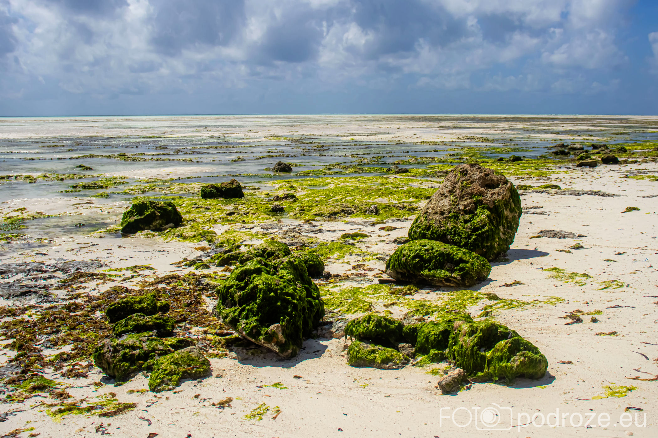 Już od wczesnych godzin porannych zanzibarskie kobiety ubrane w kolorowe stroje z koszami na głowie idą w głąb oceanu. Jakiś kilometr dalej zaczynają się oceaniczne plantacje alg. oczywiście praca jest możliwa tylko do momentu kolejnego przypływu. Tuż przed nim obserwujemy jak kobiety niosą zebrane plony.