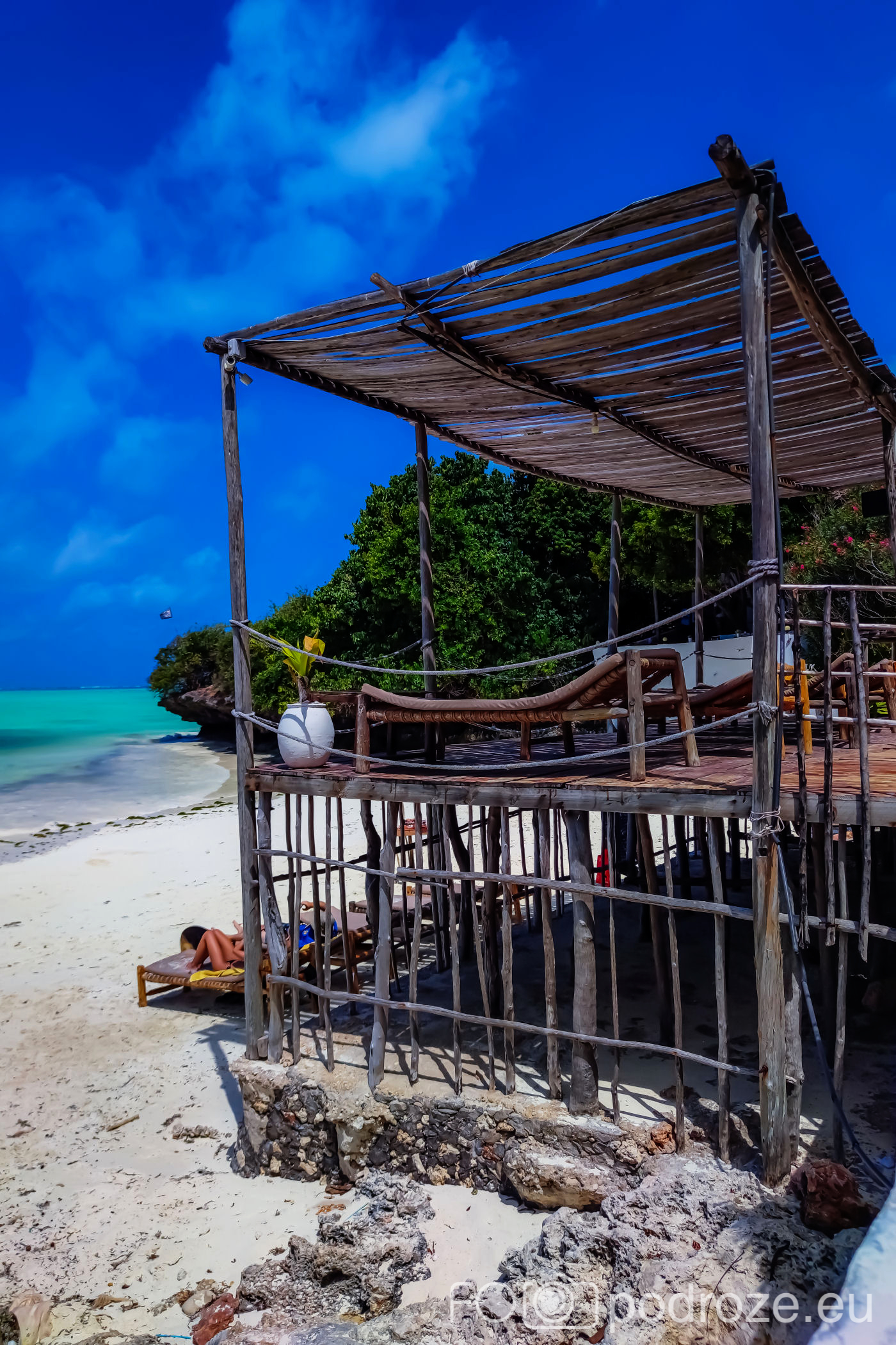 Jambiani było naszym celem krótkiego wypoczynku na Zanzibarze po trudach zdobywania Kilimandżaro oraz wrażeniach z safari w Parkach Narodowych Tanzanii. Niewiele o tym miejscu wiedzieliśmy, sami też nie wyszukiwaliśmy go, bo zwyczajnie zrobiono to za nas. Miejsce było więc 100% niespodzianką. Kiedy zobaczyliśmy hotelik i plażę, dosłownie oniemieliśmy z wrażenia. „Istagramowe”, czy „folderowe” miejsce istnieje i nie jest ani troszkę przerysowane !!!