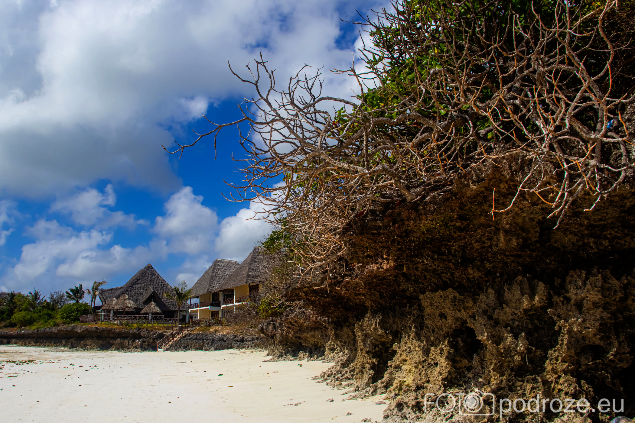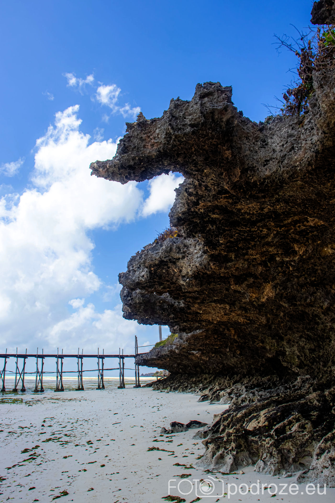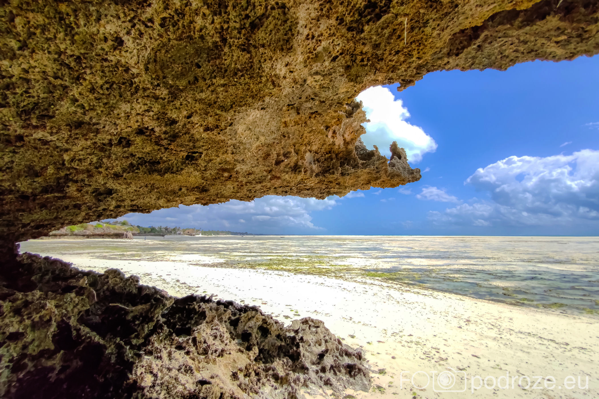 Północna część Jambiani ma łagodne zejście do plaży, co pokazałam Wam już wyżej, ale południowa wygląda kompletnie inaczej. Tu królują kilkumetrowe skały, które fale przypływów dosłownie wyrzeźbiły tworząc z nich podcienia i inne ciekawe kształty. Matka Natura potrafi malować najpiękniejsze pejzaże.