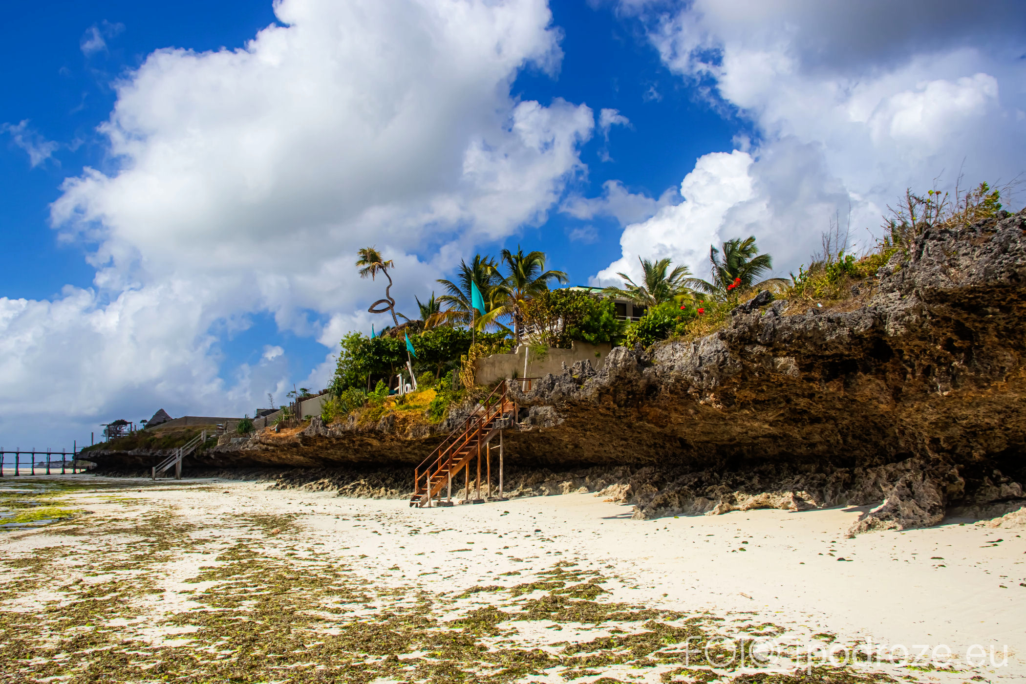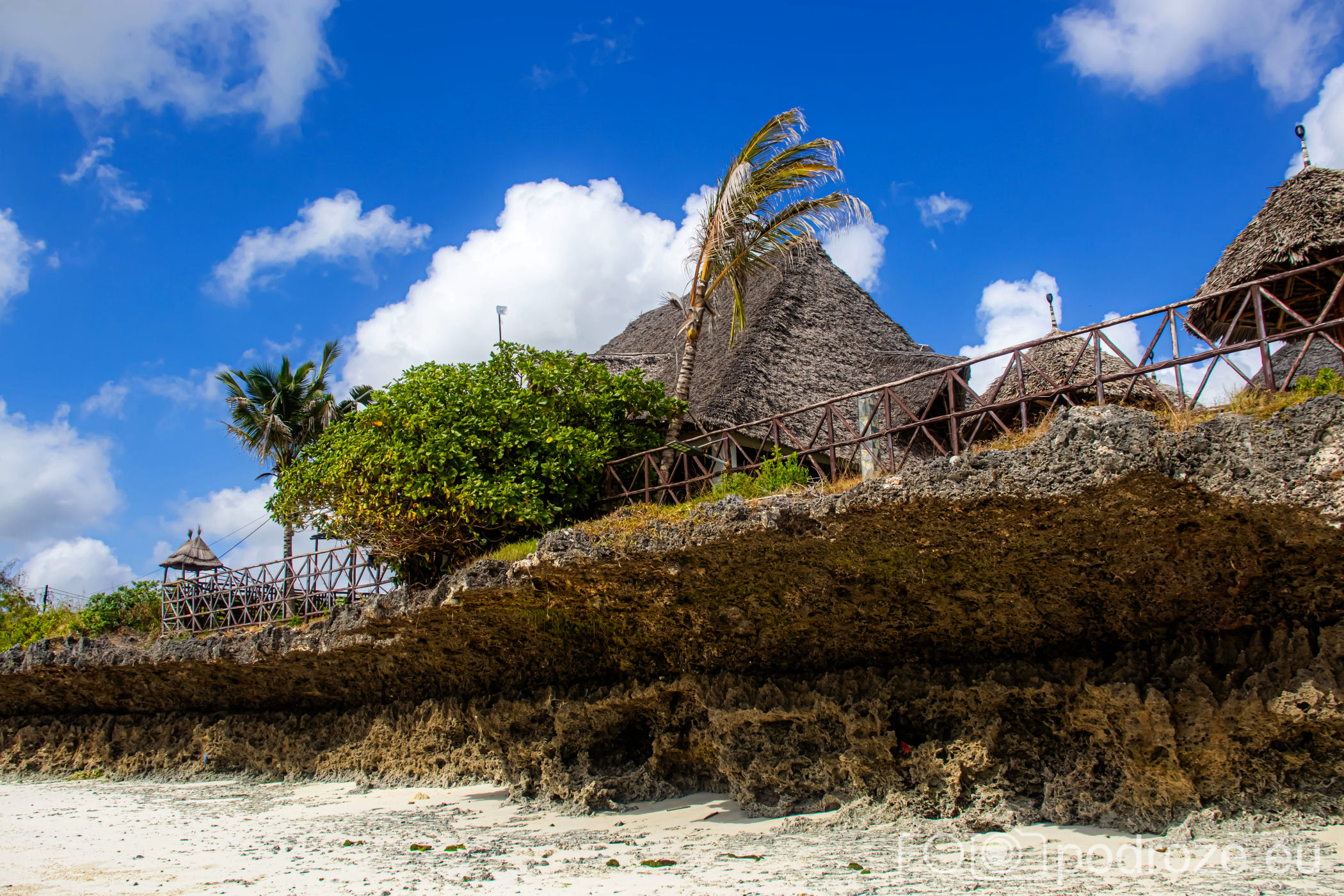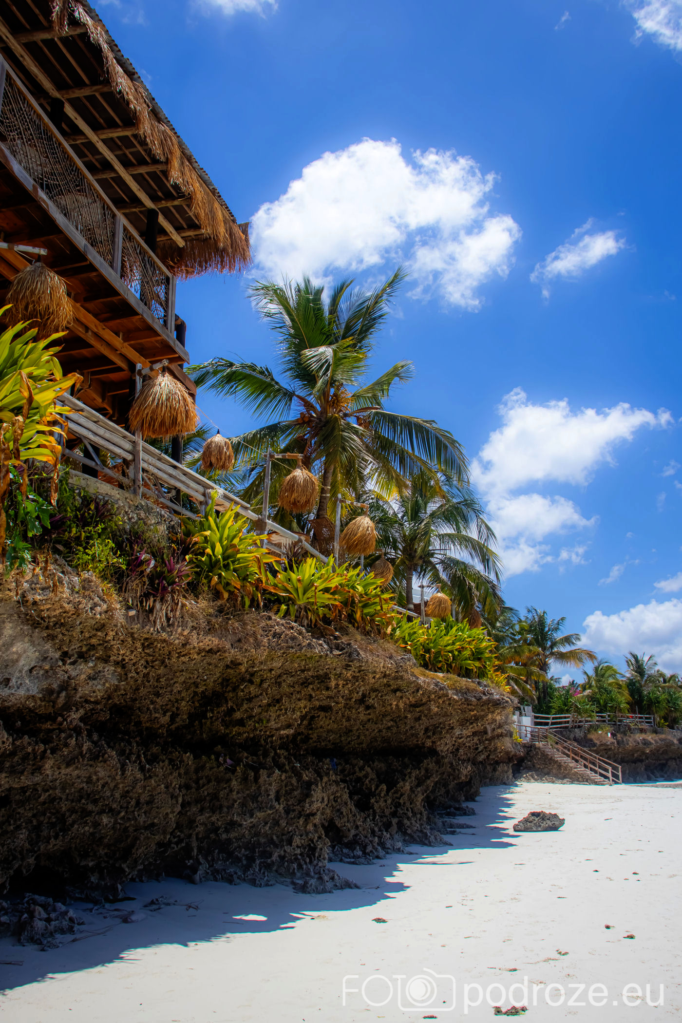 Północna część Jambiani ma łagodne zejście do plaży, co pokazałam Wam już wyżej, ale południowa wygląda kompletnie inaczej. Tu królują kilkumetrowe skały, które fale przypływów dosłownie wyrzeźbiły tworząc z nich podcienia i inne ciekawe kształty. Matka Natura potrafi malować najpiękniejsze pejzaże.