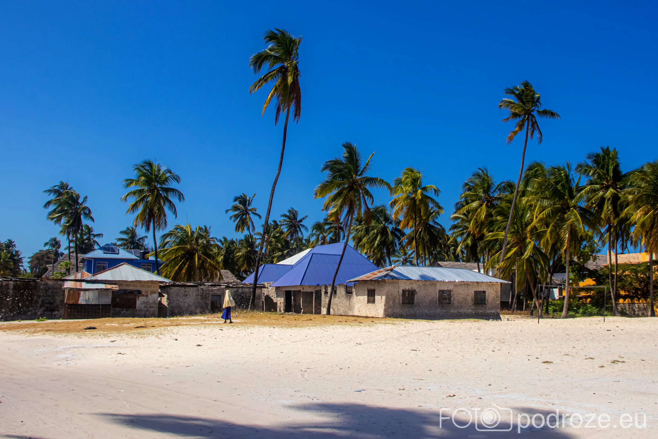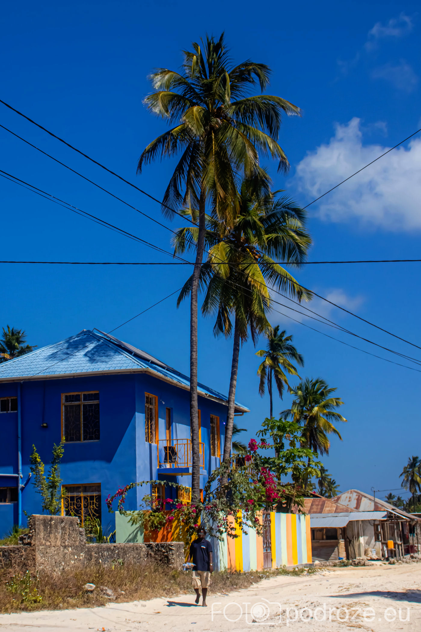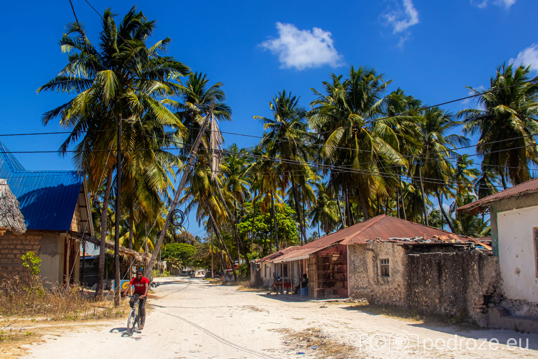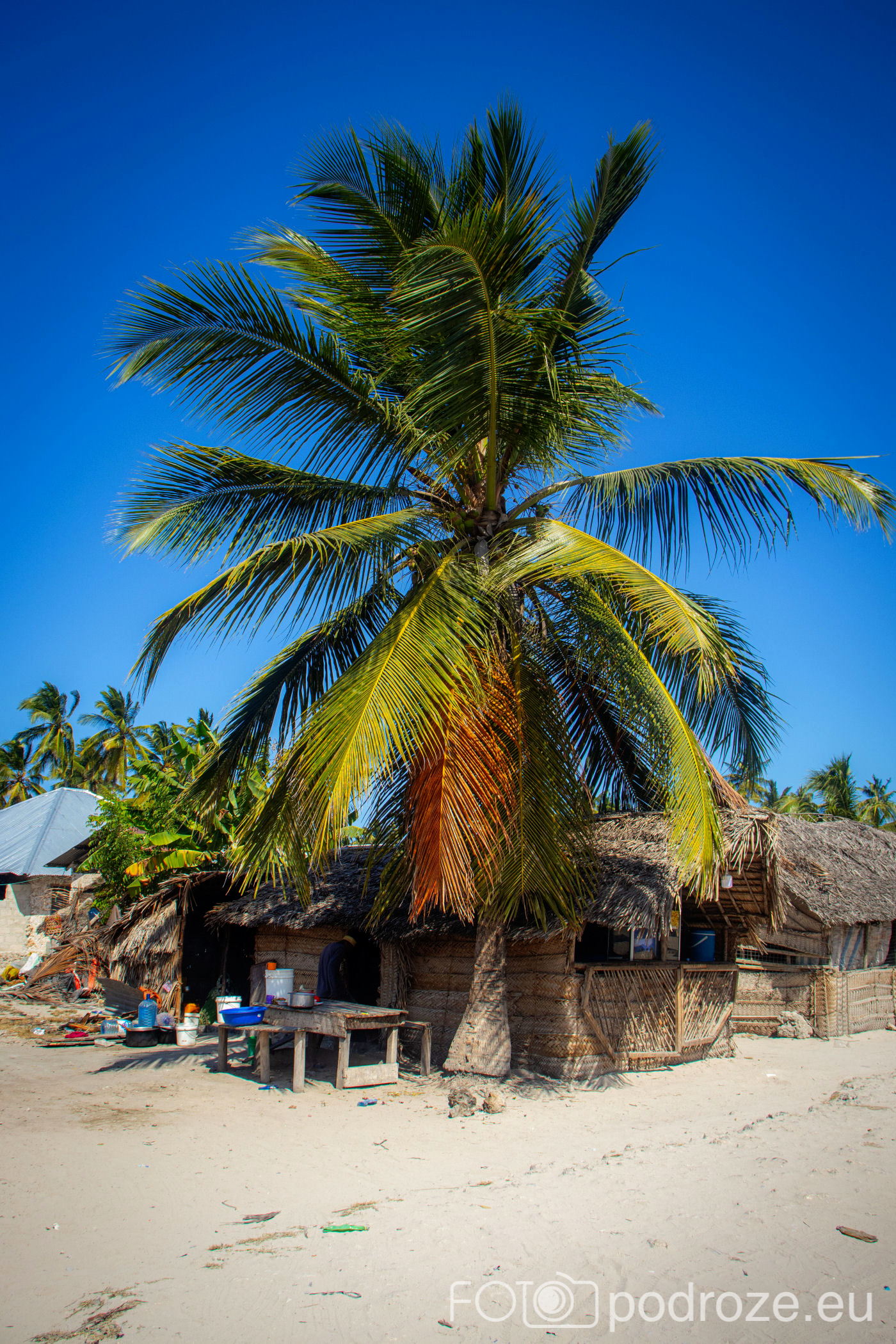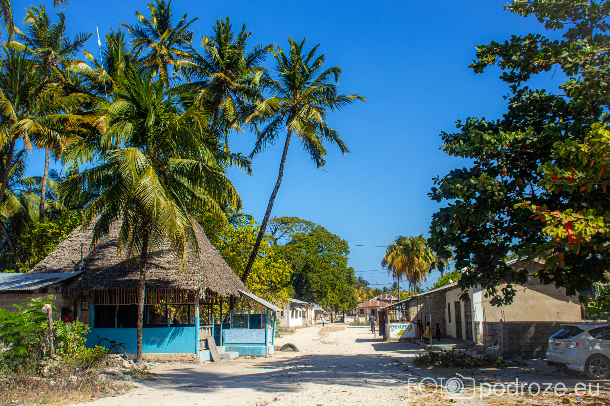 Jak już na początku wpisu wspomniałam, Jambiani to takie prawdziwe, autentyczne miejsce na mapie Zanzibaru. W pierwszym momencie miejsce szokuje. Pierwsza linia brzegowa jest urokliwa i zadbana, ale wystarczy przejść już na drugą stronę hotelików, czy knajpek, żeby znaleźć się w innym, realnym afrykańskim świecie. Bita droga pokryta piachem prowadzi nas przez miasteczko. Domy częściowo w ruinie, częściowo niby skończone wyglądają na tymczasowe, ale takie nie są. Co kilkadziesiąt kroków jakiś sklepik, albo raczej stragan z pamiątkami lub owocami. Gdzieniegdzie galeria sztuki, która w całej Tanzanii jest dosłownie wszechobecna. Mijamy szkołę, akurat uczniowie obu płci kończą naukę i rozbiegają się po miasteczku. „Pole pole” (wolno-wolno) i „Hakuna matata” (nie martw się) oddają w pełni atmosferę tego miejsca. Bieda, ale równocześnie uśmiech na twarzach. Tak się tu żyje.