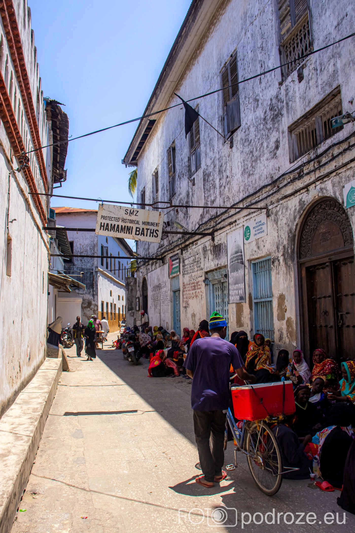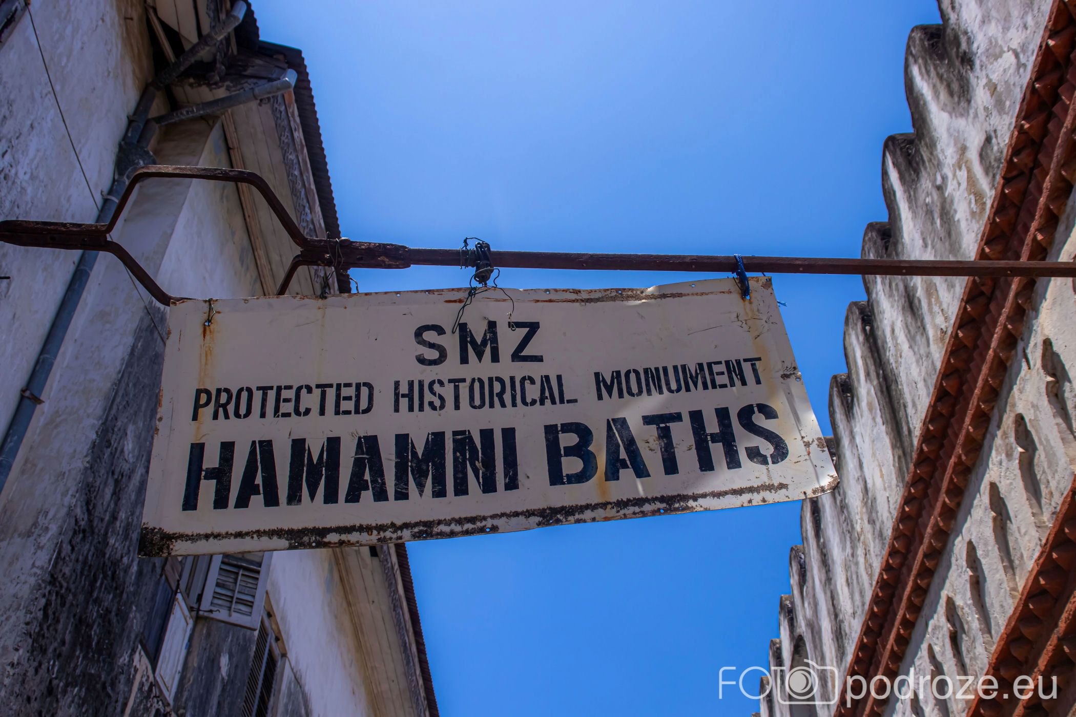 Docieramy do jednaj z kamienic na starym mieście, który kryje w sobie zabytkową łaźnię. Łaźnia publiczna zbudowana została w latach 1870-1888 za panowania trzeciego sułtana Zanzibaru. Do zwiedzenia jest tylko jej główne pomieszczenie, małe pomieszczenia sanitarne i możliwość wyjścia na dach. Całość zwiedzania ma zająć około 10-15 minut, uznajemy więc, że 5$ to stanowczo za dużo, za bilet od osoby, a z tego co wyczytuję, jeszcze trzeba zostawić napiwek . Nie wchodzimy więc do środka.