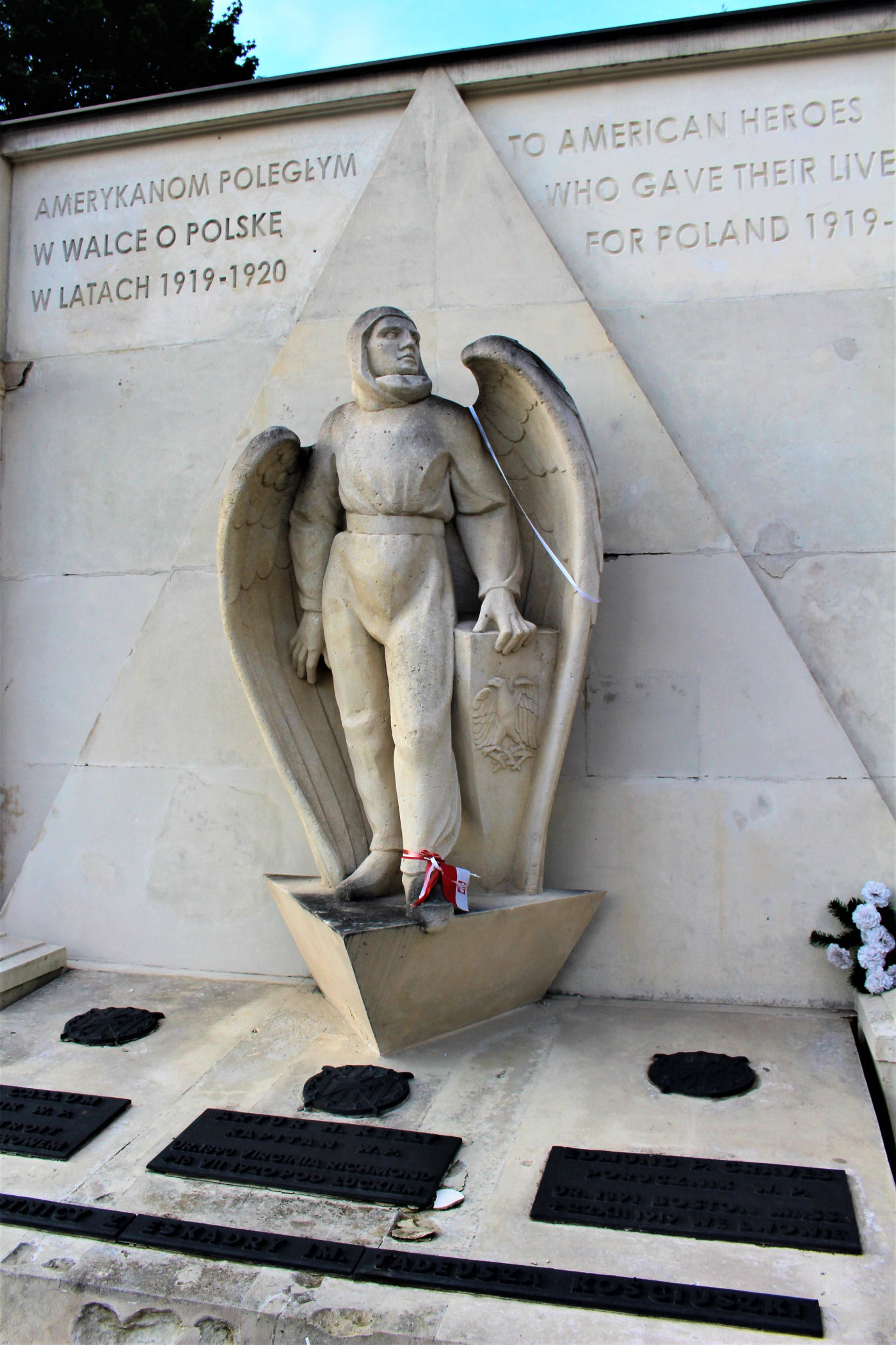 Na cmentarzu znajdziemy także ( w jego górnej części ) – pomnik lotników amerykańskich. W lipcu 1919 do Polski przybyło 17 lotników amerykańskich, którzy zasłynęli między innymi bardzo niskimi przelotami. W walkach poległo 3 lotników, dla nich wystawiono tu pomnik w 1925 roku, z napisem „Amerykanom Poległym w Obronie Polski w latach 1919–1920”. Pomnik, jak większość cmentarza, został zniszczony w 1971 roku, a następnie odnowiono.