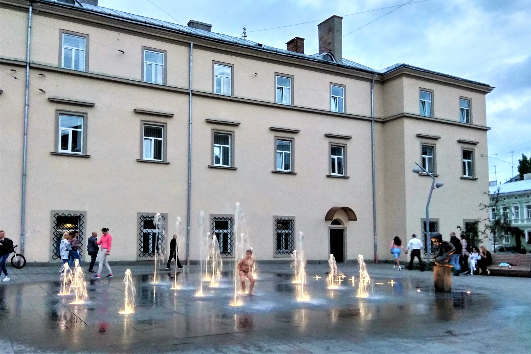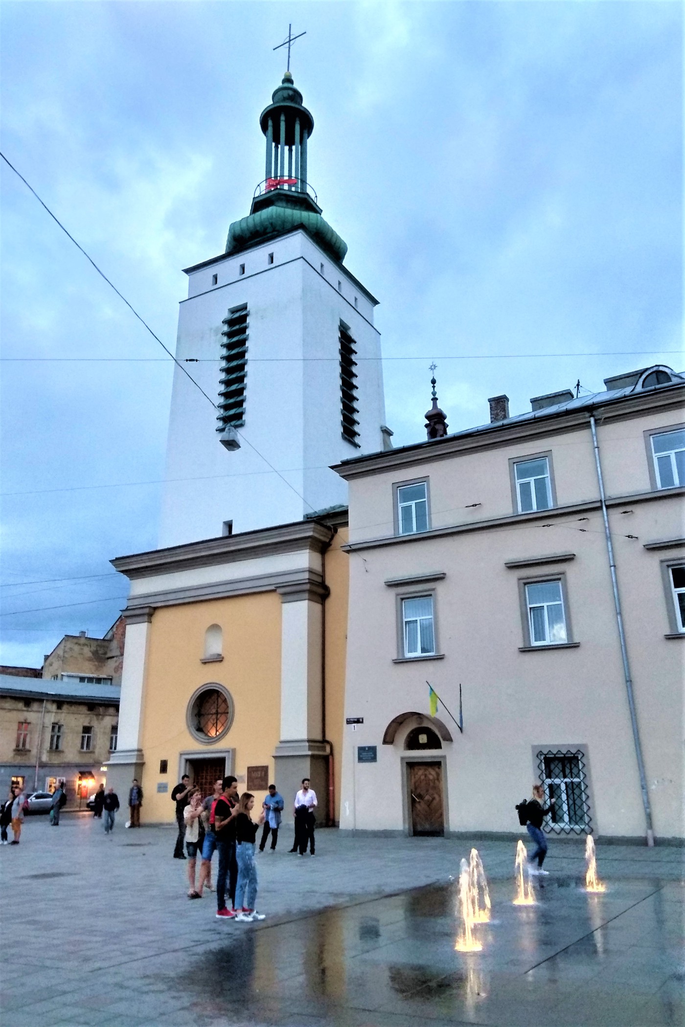 Ostatnie miejsce jakie chciałam pokazać w tej części Lwowa to Plac Fonkan mieszczący się przed Muzeum Rzeźby Jana Jerzego Pinzela w starym kościele), będącej częścią obiektu Politechniki Lwowska, UDC nazwana na cześć Ricarda Milosa. My trafiamy tu wieczorem kiedy na placu odbywa się jakieś spotkanie taneczne.